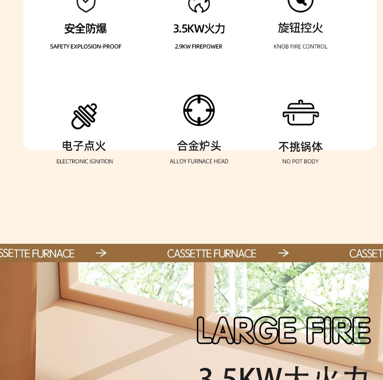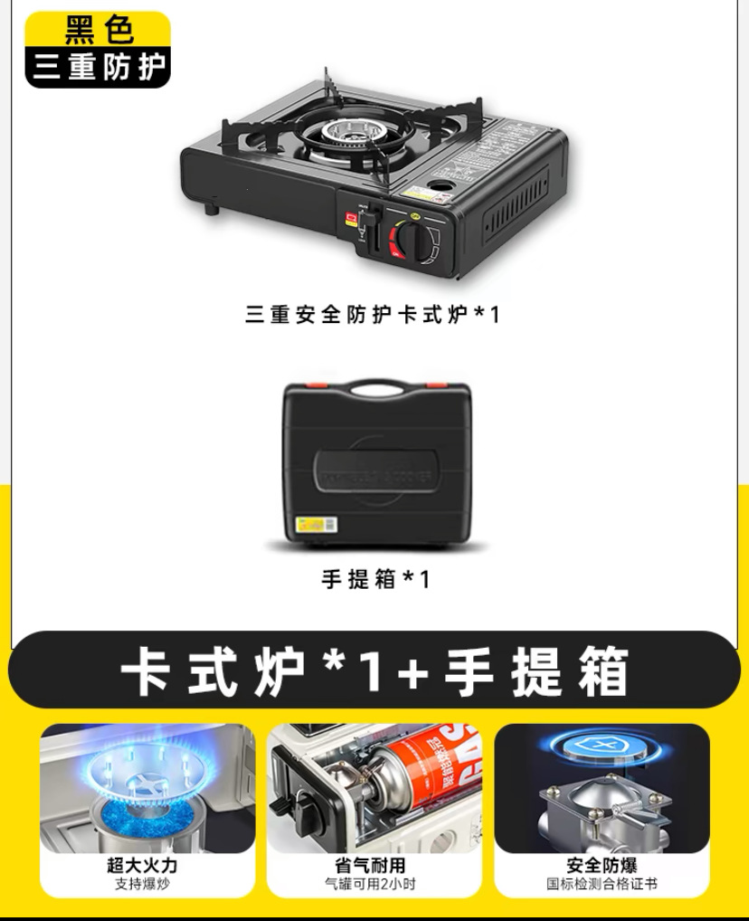 • 이중 목적 카세트 스토브 + 방풍 링 + 여행 가방