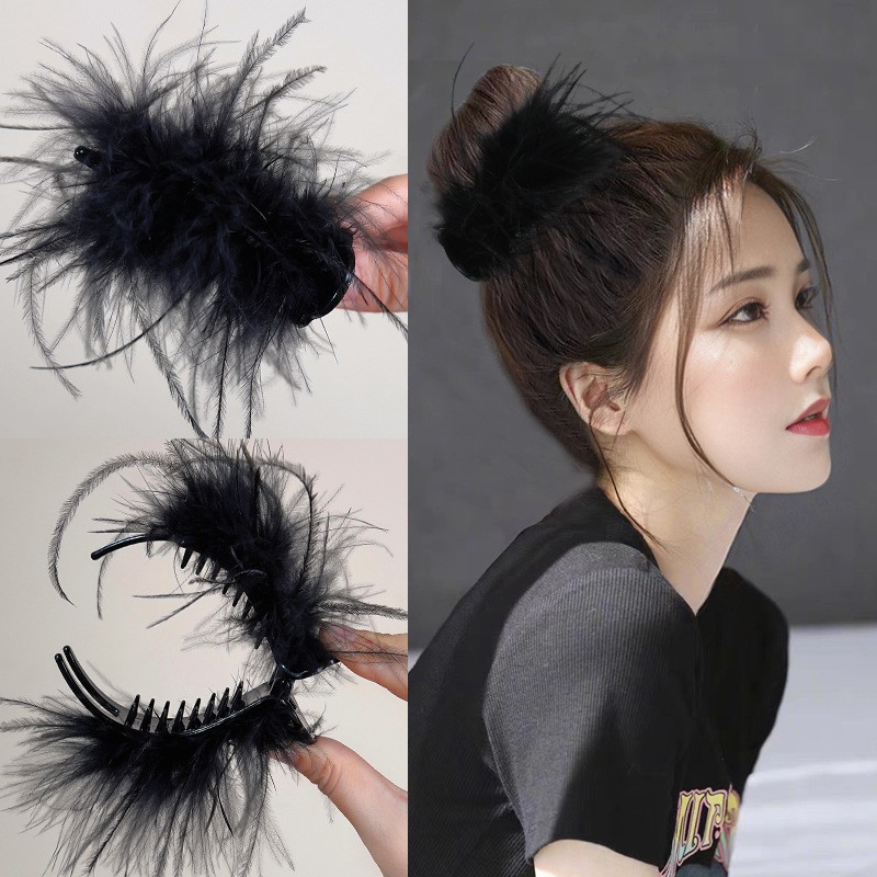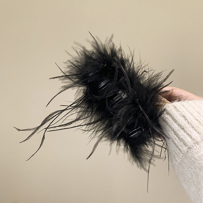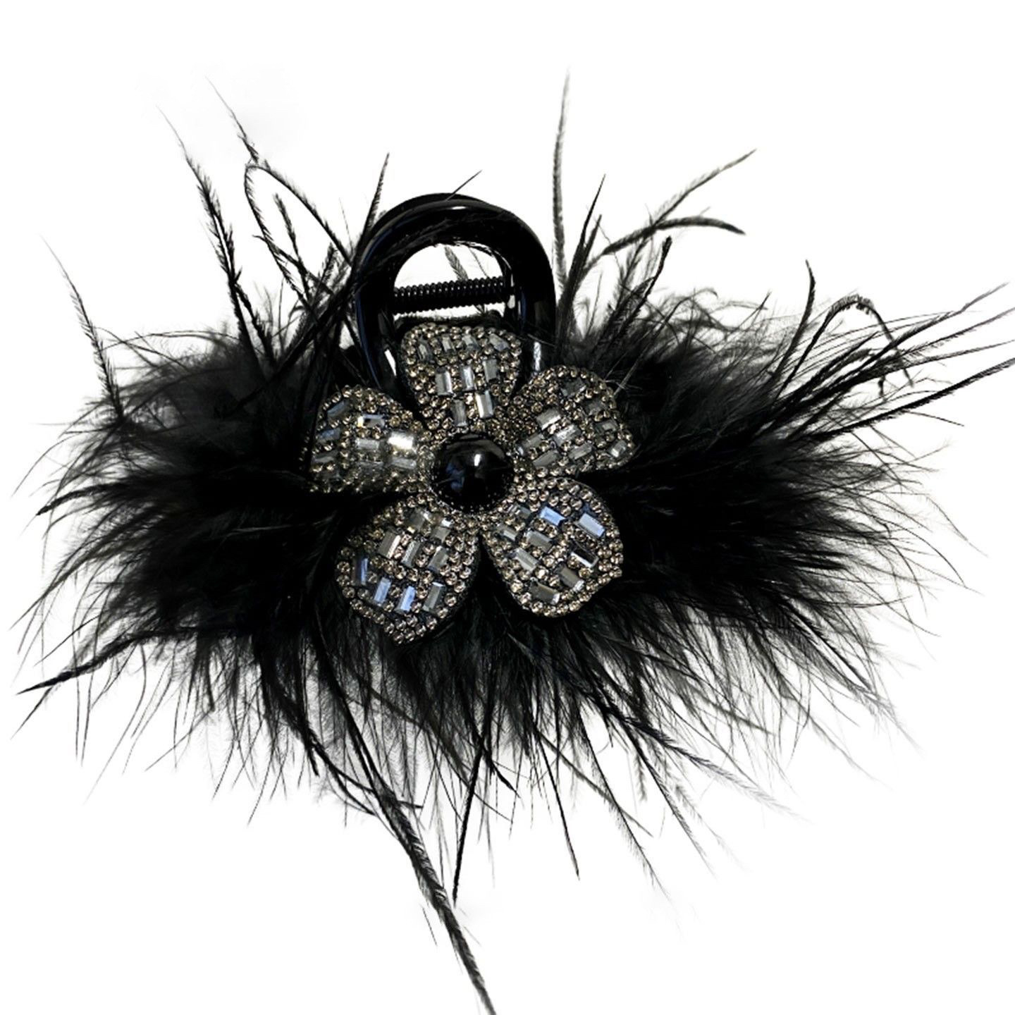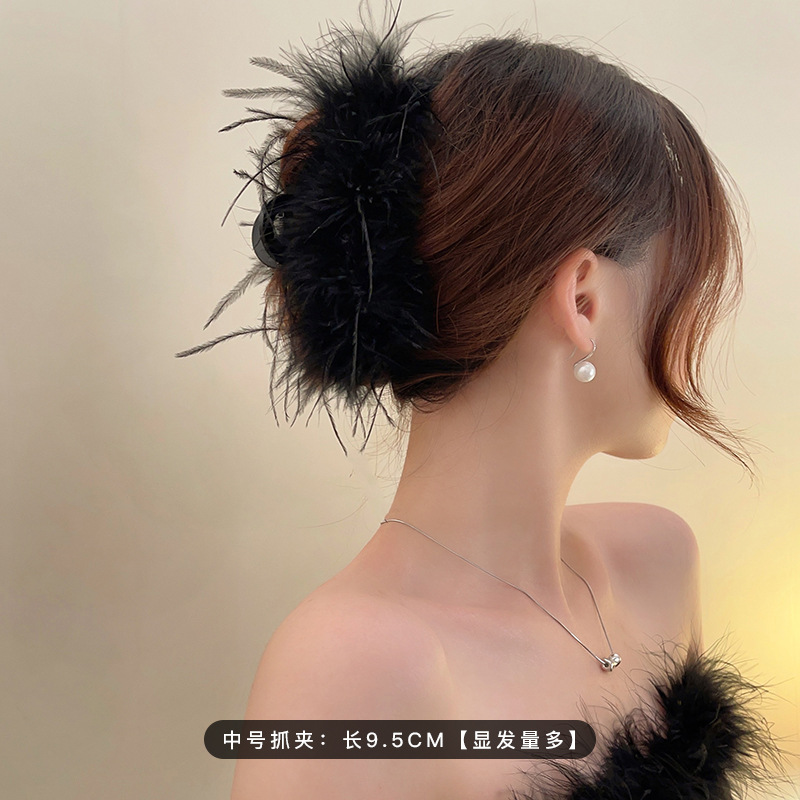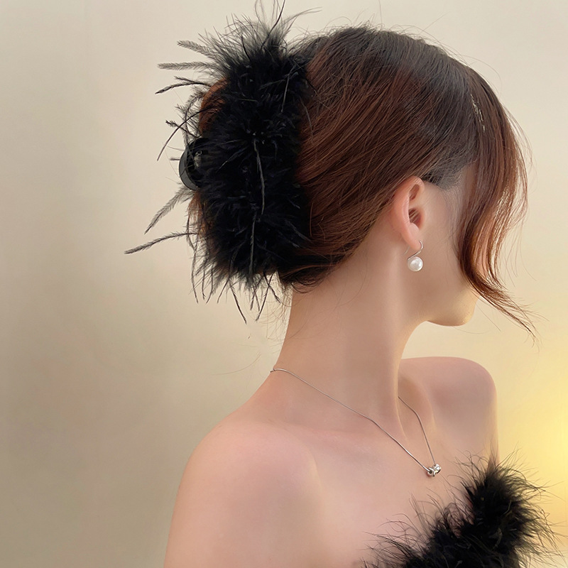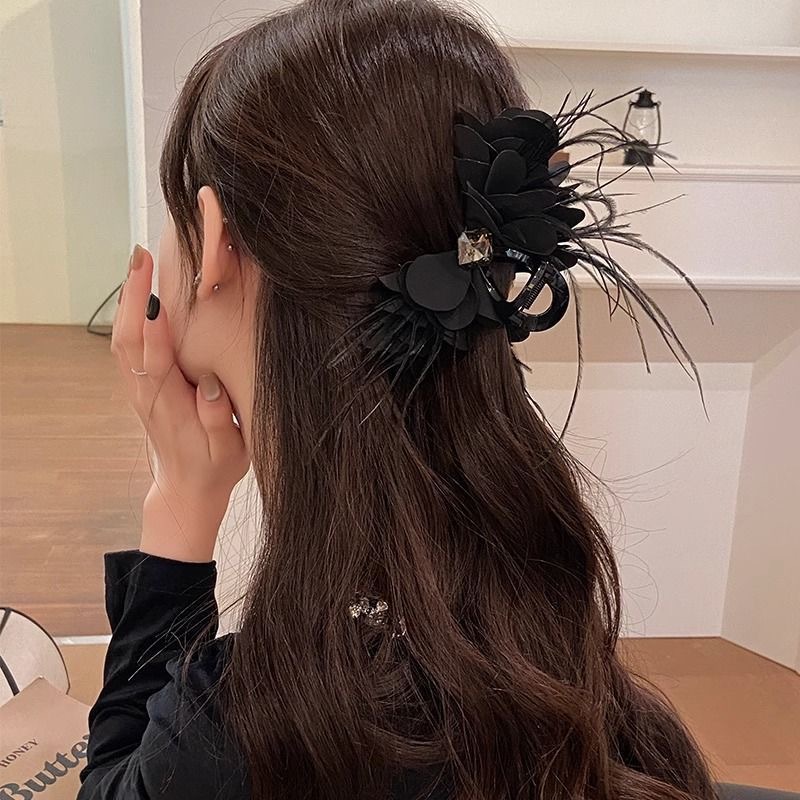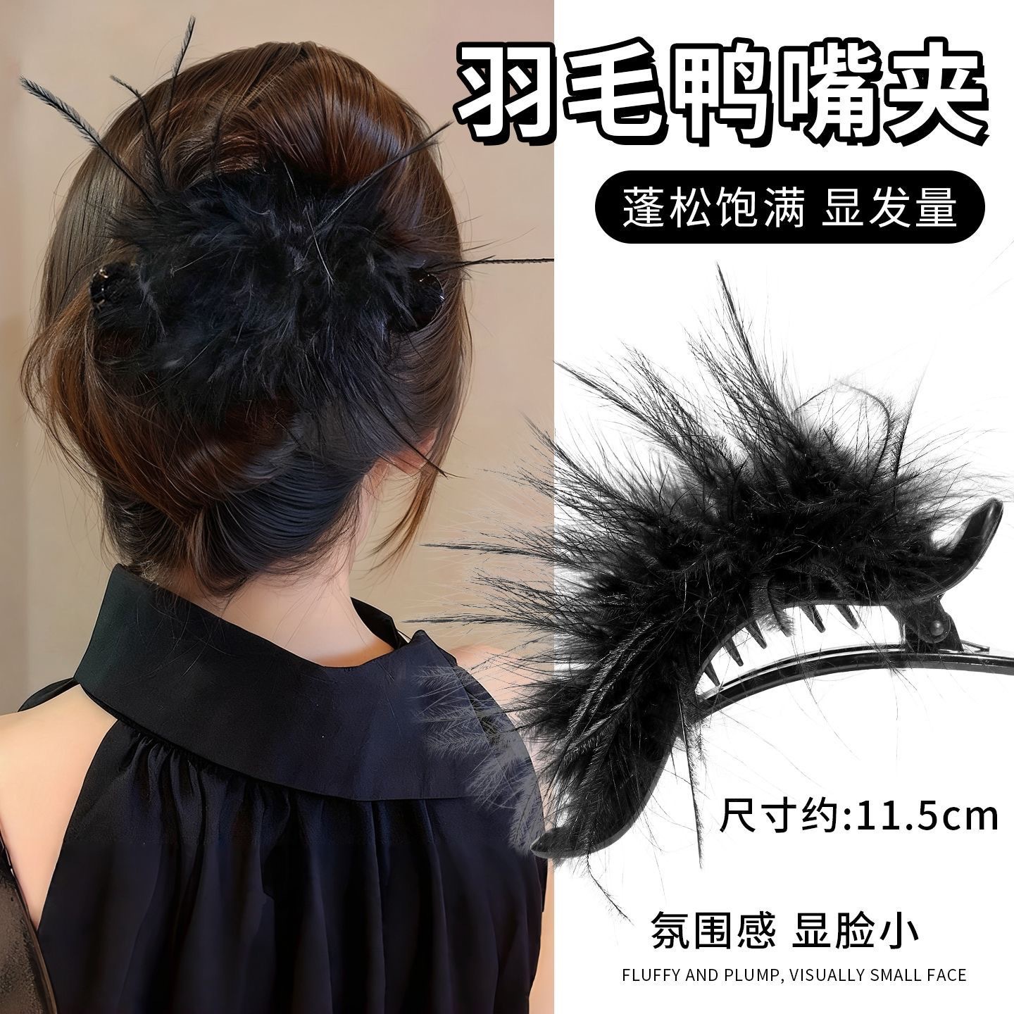 검은색 깃털 큰 헤어 클립, 볼륨 있는 여성용 헤어핀, 뒷머리용 헤어 클립, 헤어 스타일링용 샤크 클립스토어 가기