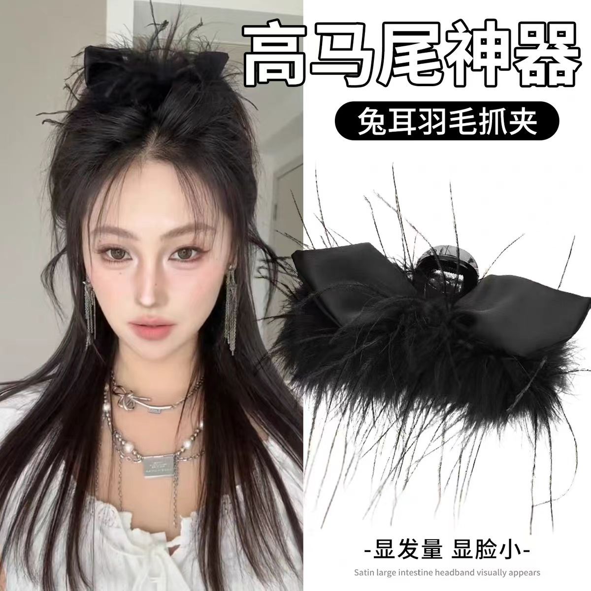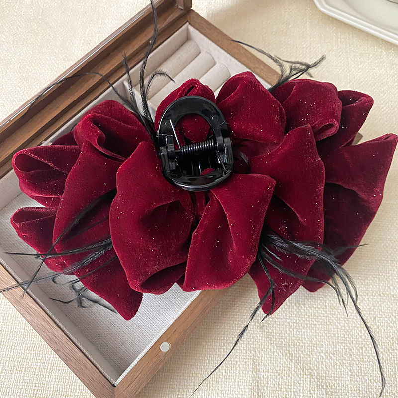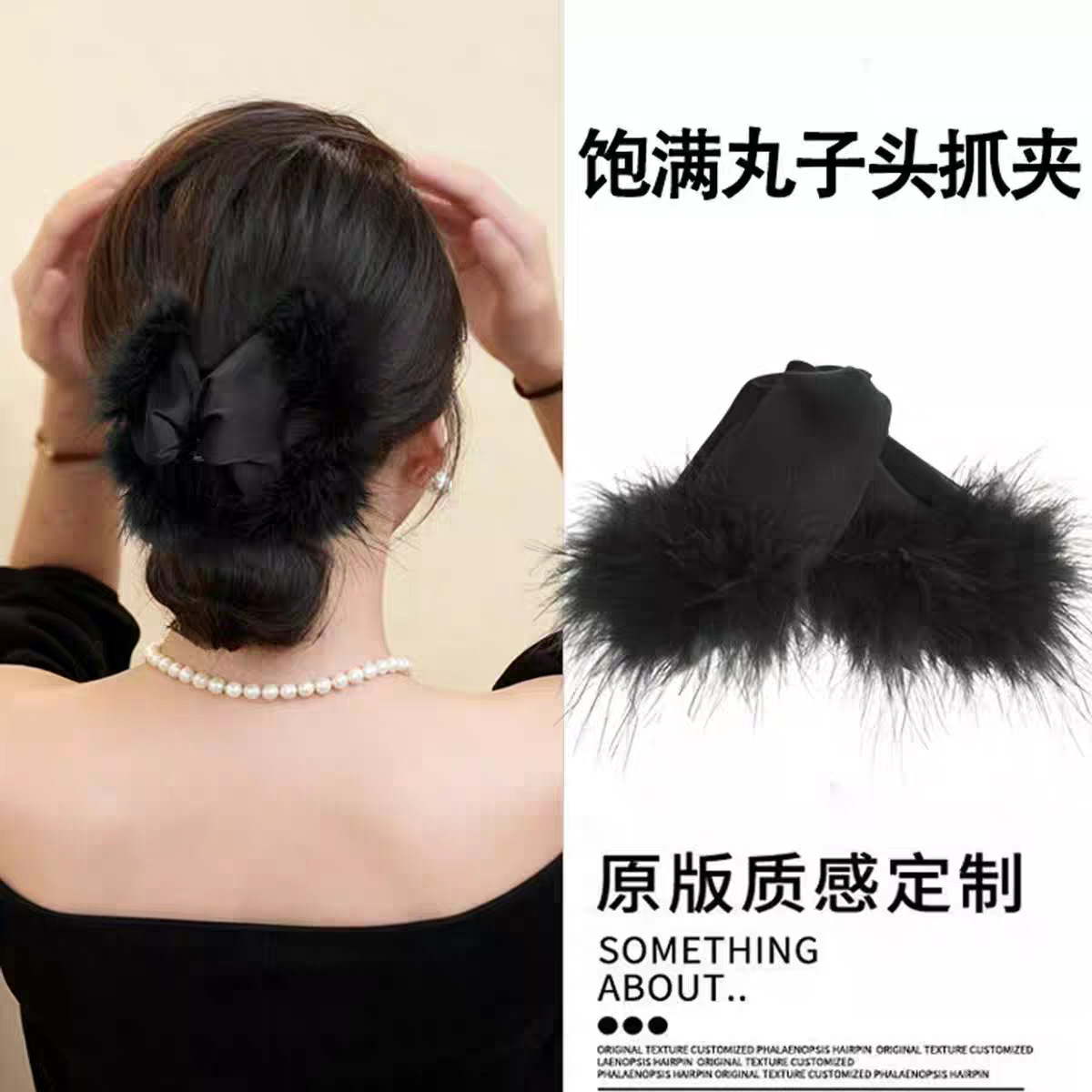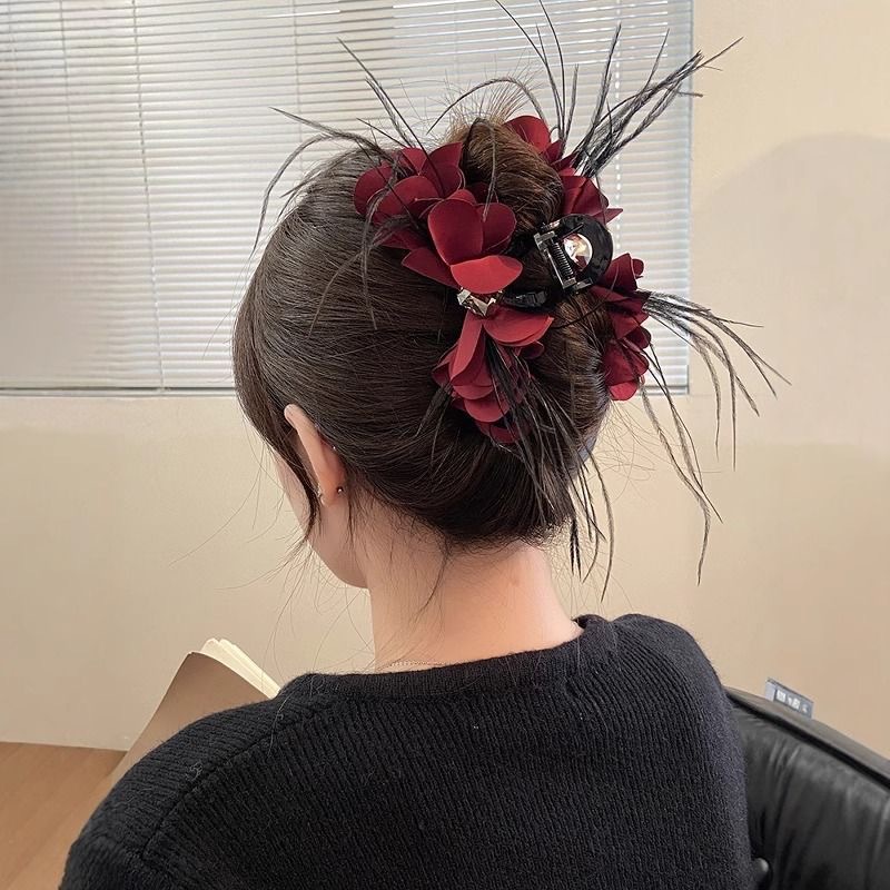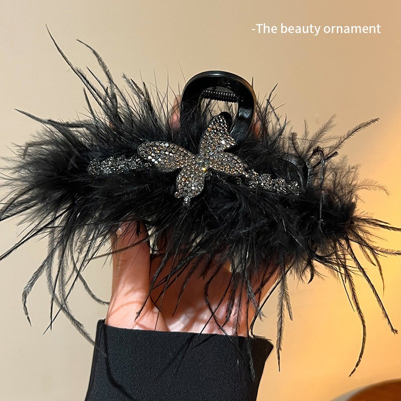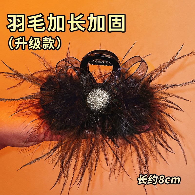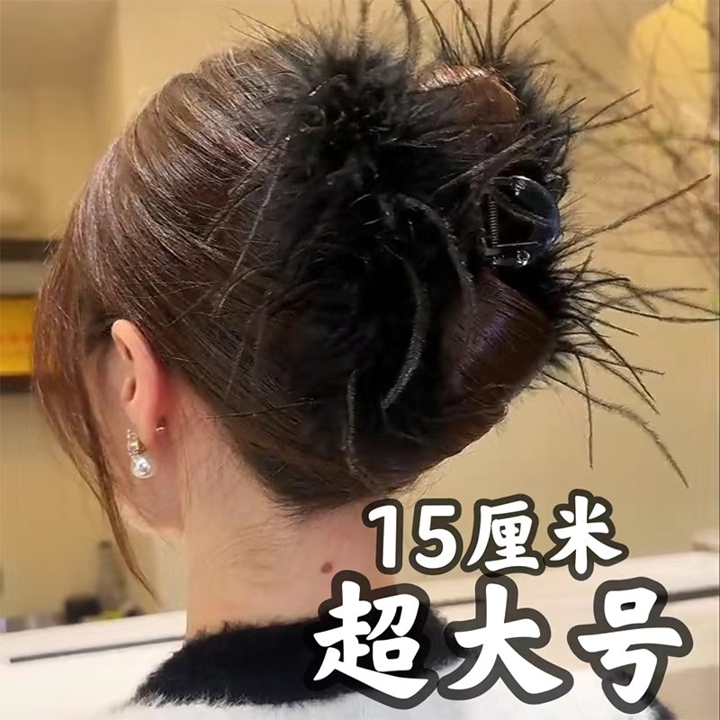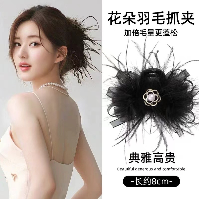 검은색 깃털 큰 헤어 클립, 볼륨 있는 여성용 헤어핀, 뒷머리용 헤어 클립, 헤어 스타일링용 샤크 클립스토어 가기