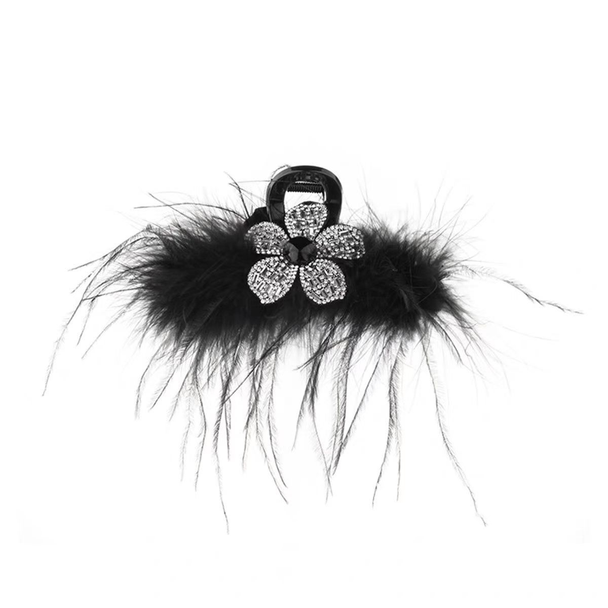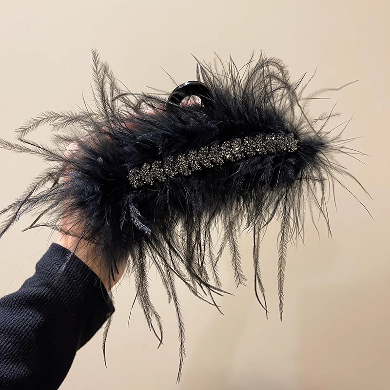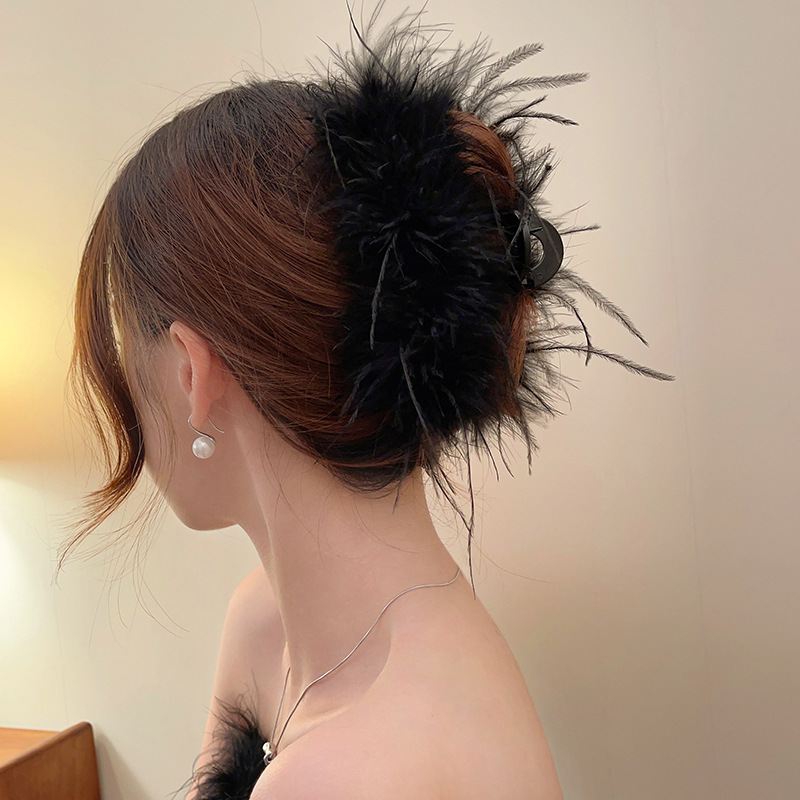 검은색 깃털 큰 헤어 클립, 볼륨 있는 여성용 헤어핀, 뒷머리용 헤어 클립, 헤어 스타일링용 샤크 클립