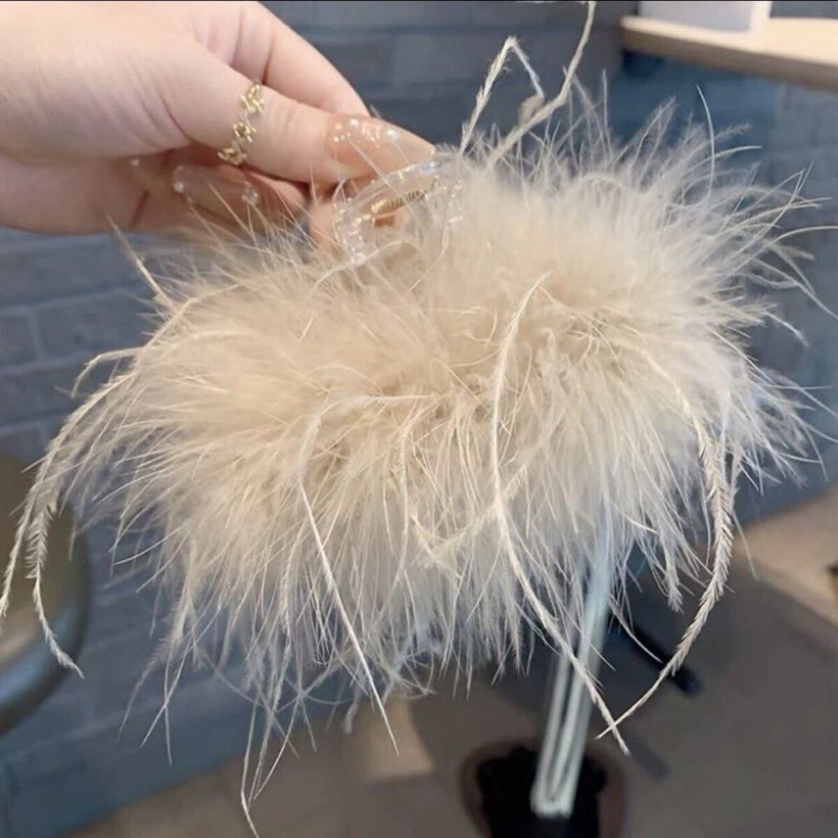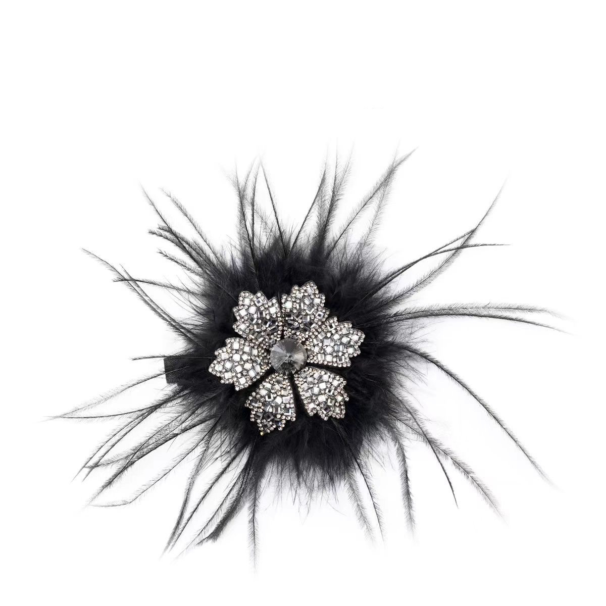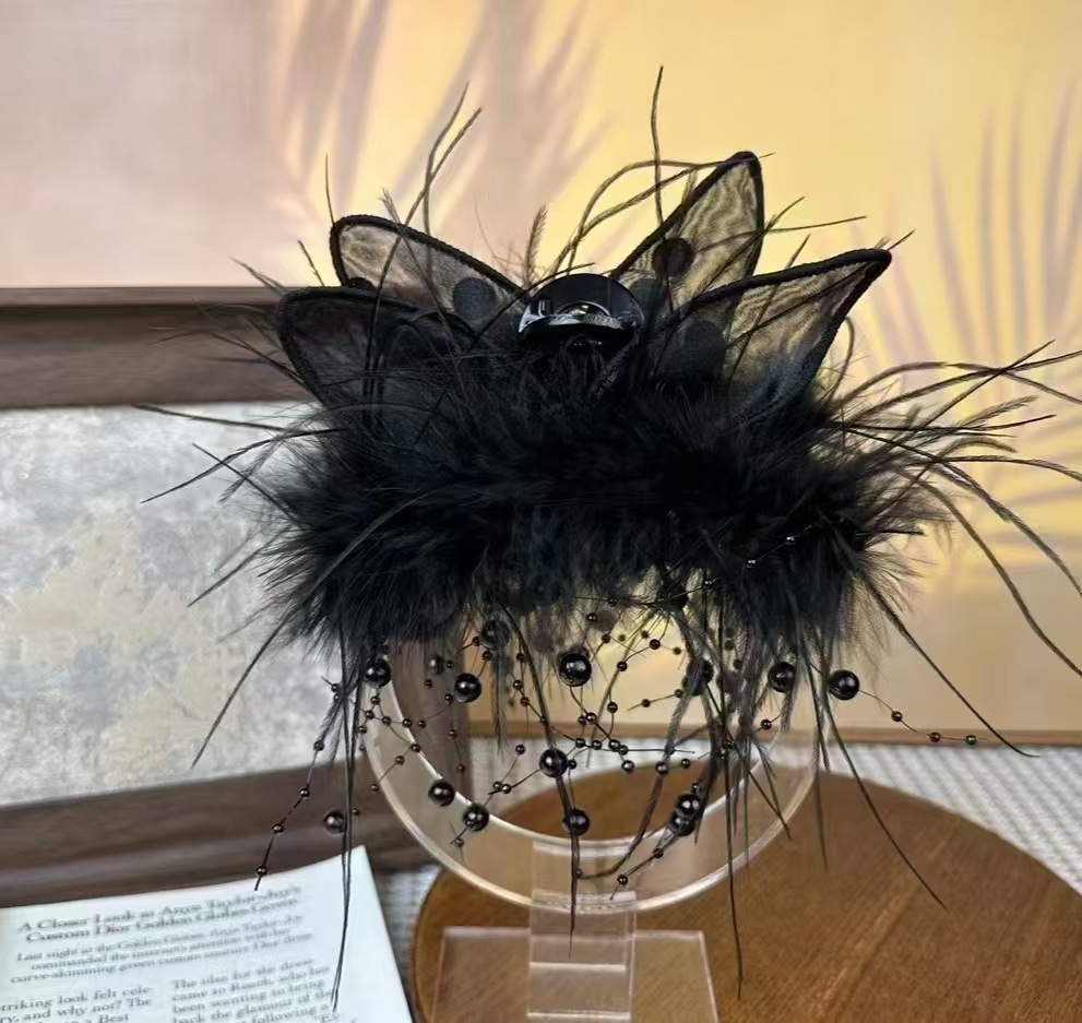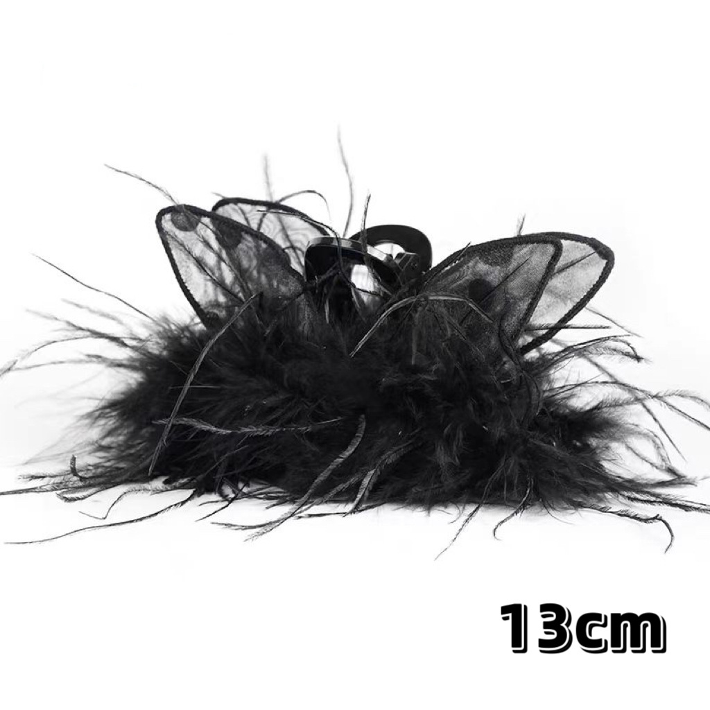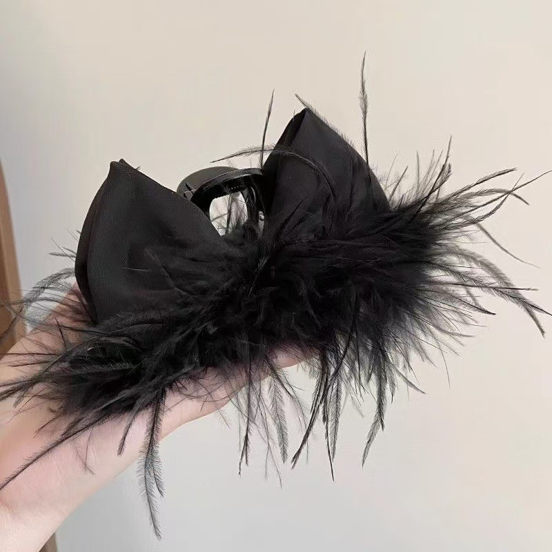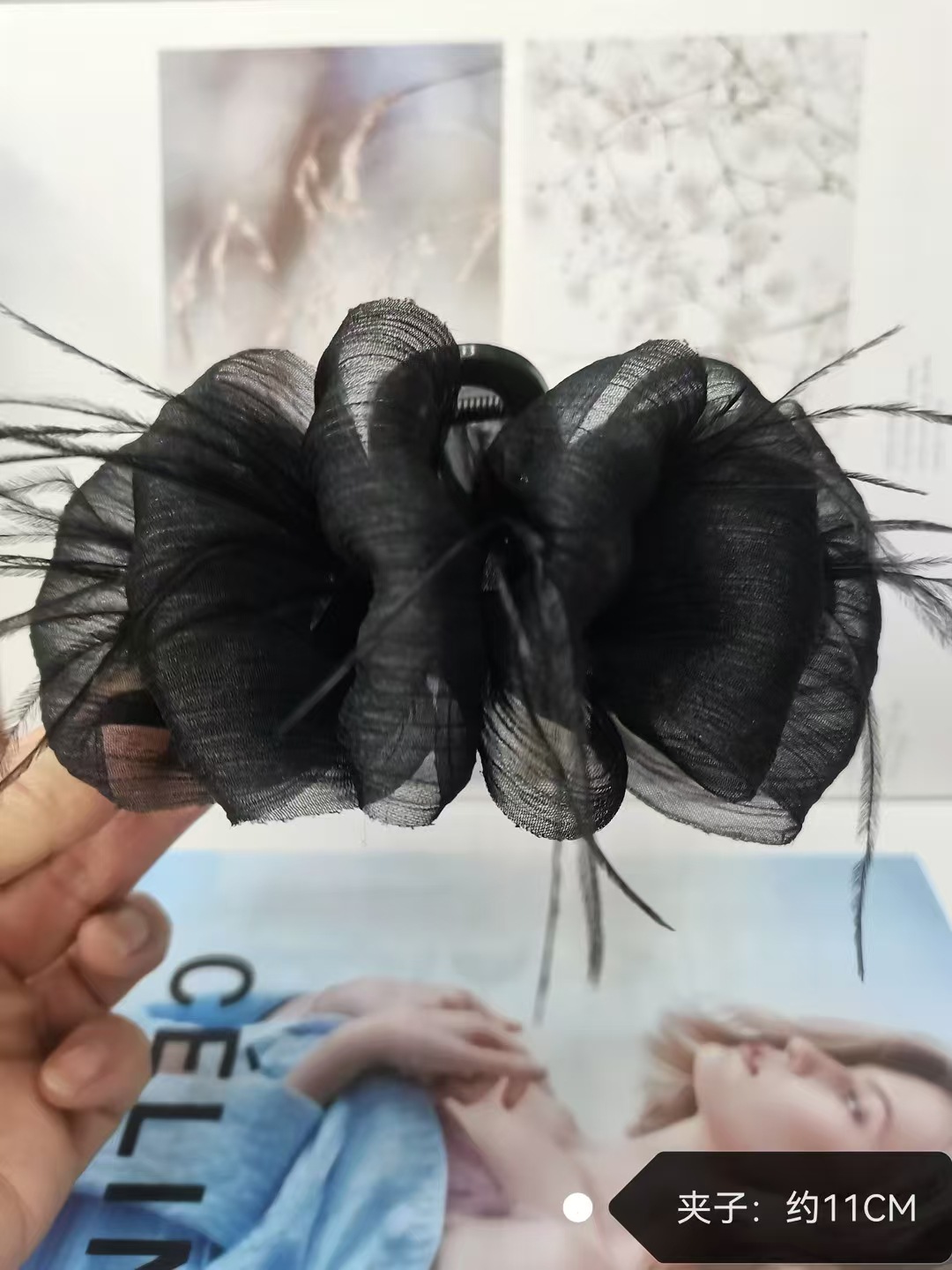 • 블랙 - 고급스러운 리본 반짝이 깃털 집게핀 13cm