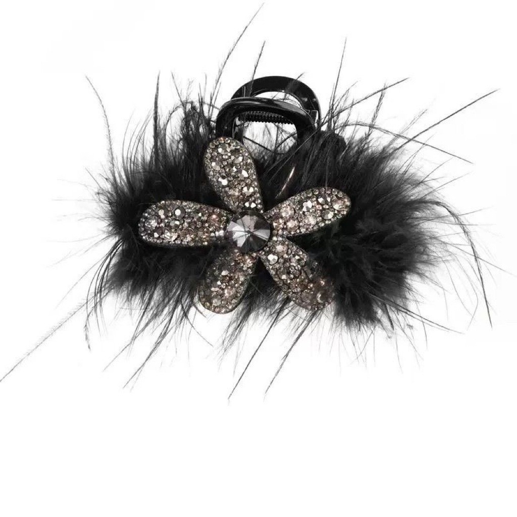 • 블랙 큐빅 깃털 꽃잎 집게핀 13cm