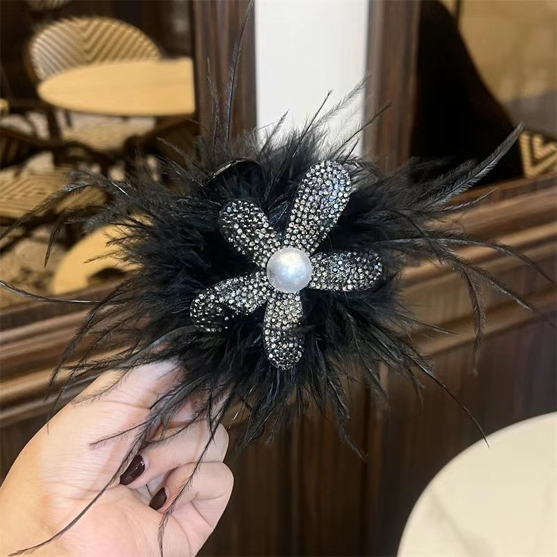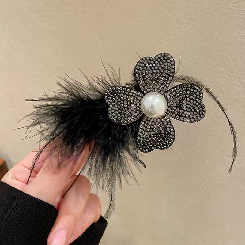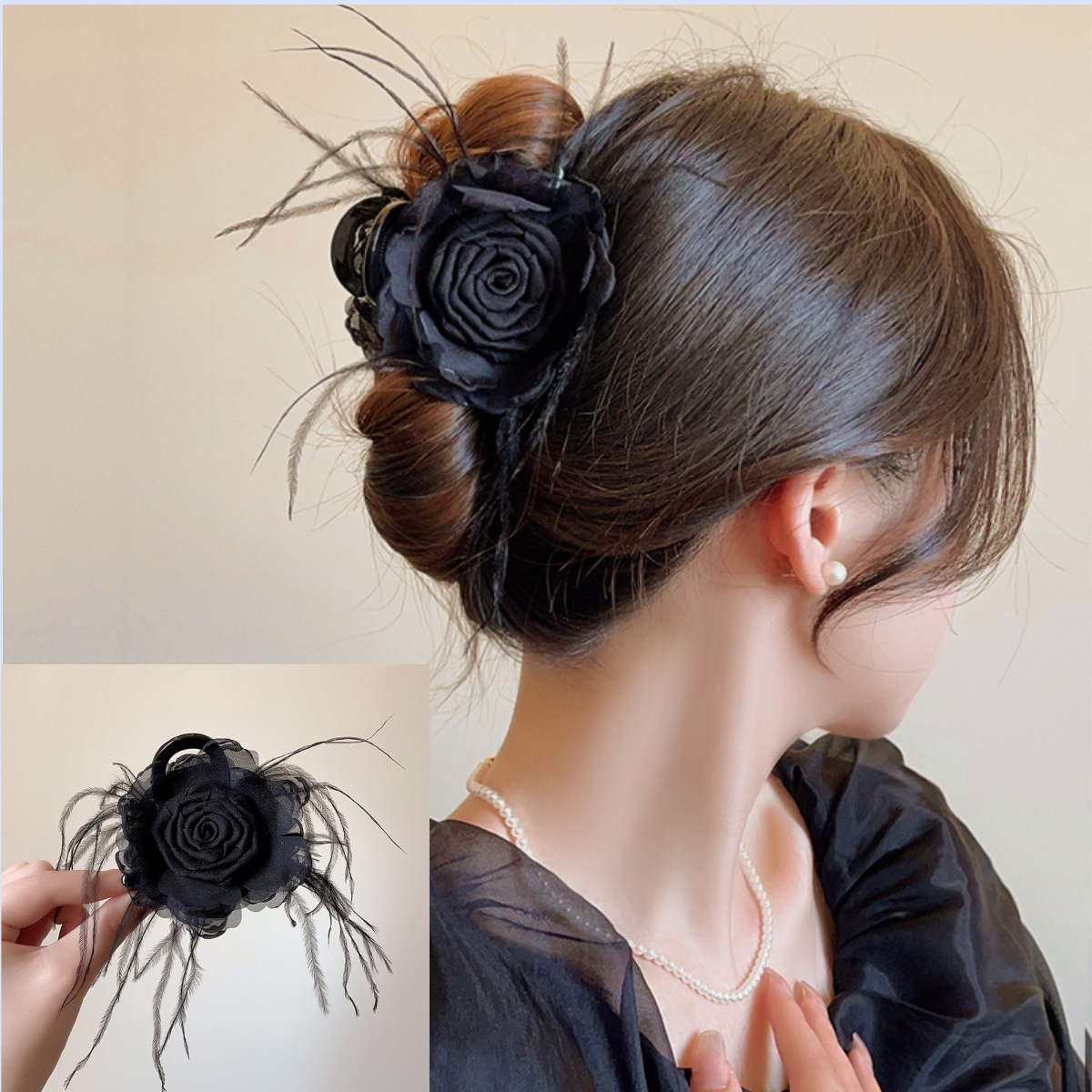 • 검은색#롤드 로즈 깃털 클립 13cm