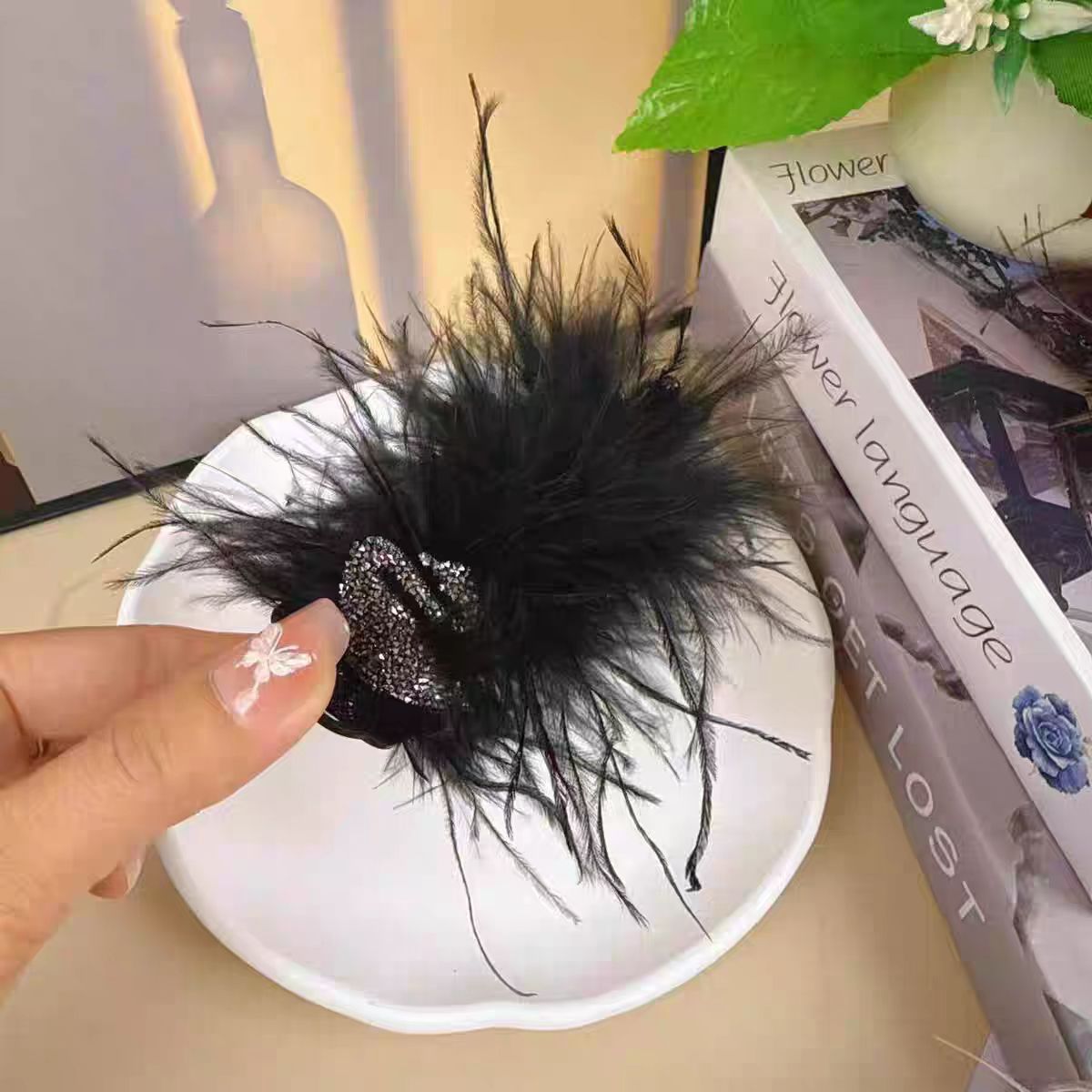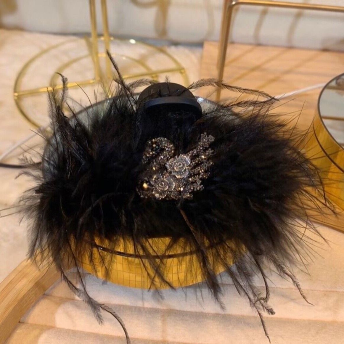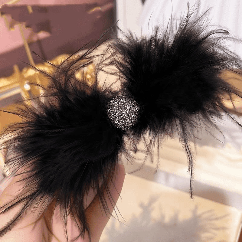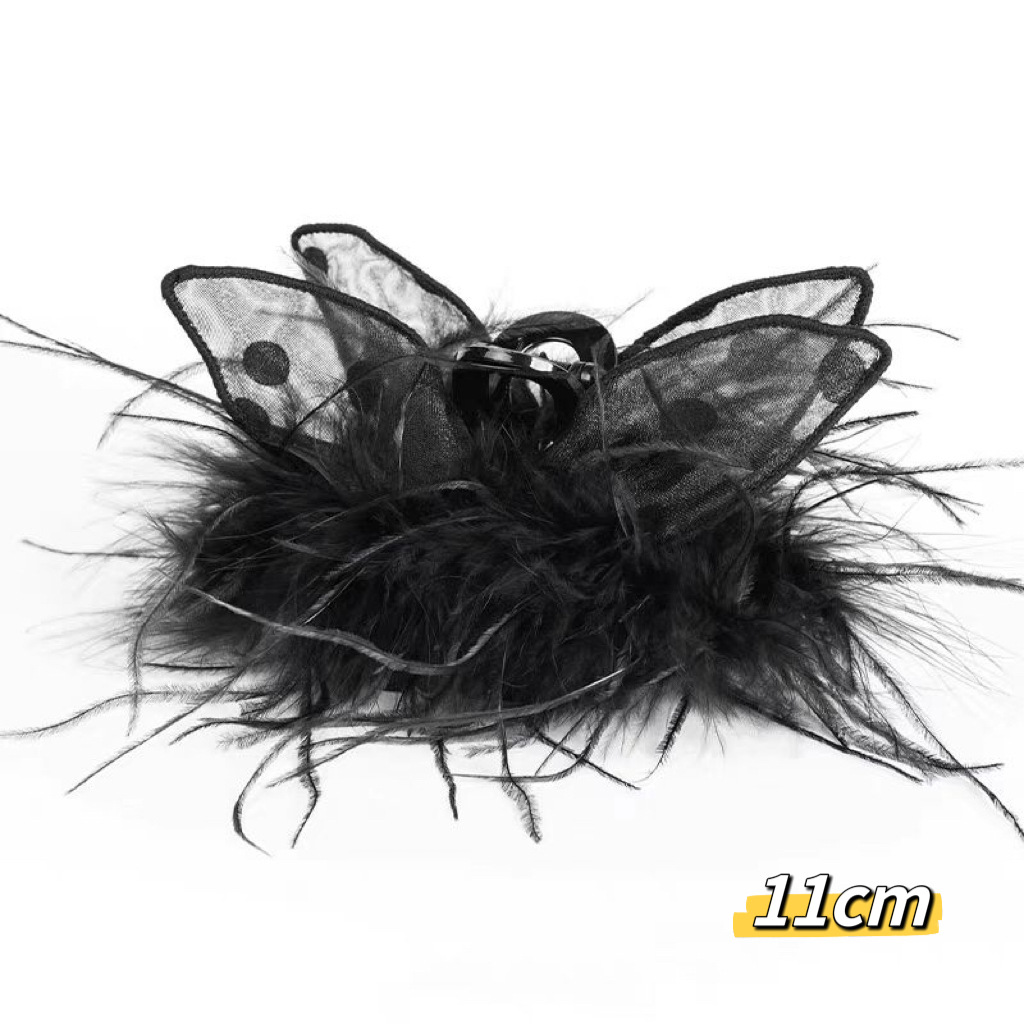 • 블랙 - 고급스러운 리본 반짝이 깃털 집게핀 11cm