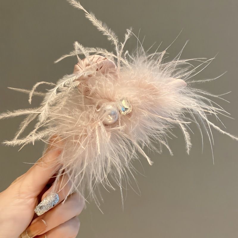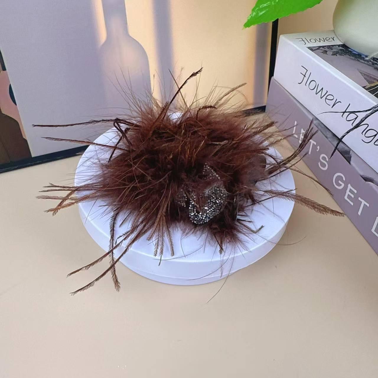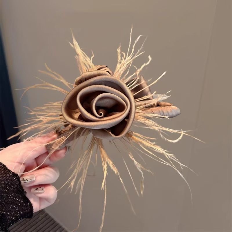• 커피색#롤드 로즈 깃털 클립 13cm