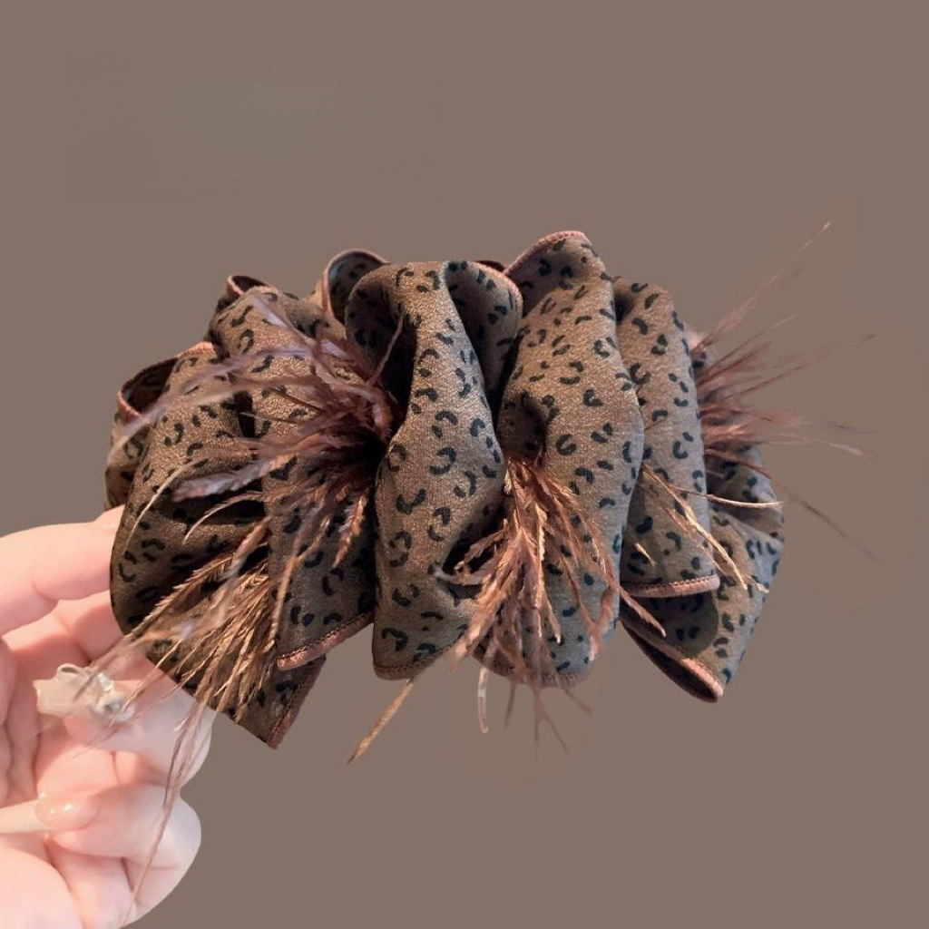 • 카멜 브라운 레오파드 깃털 집게핀 13cm