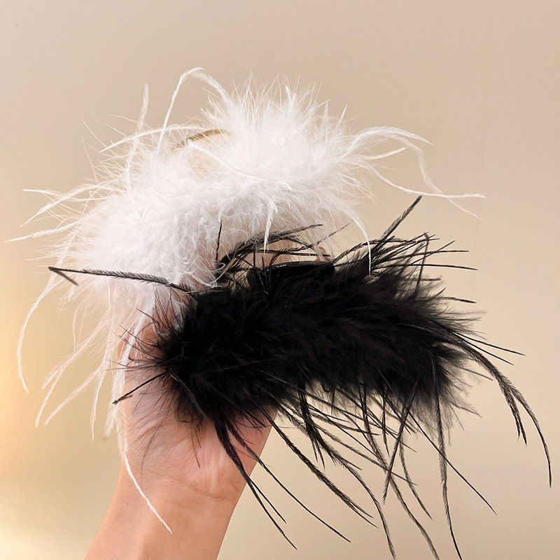 • 8cm 블랙 장미 깃털 장식 [중형, 머리가 작거나 높은 포니테일에 적합]