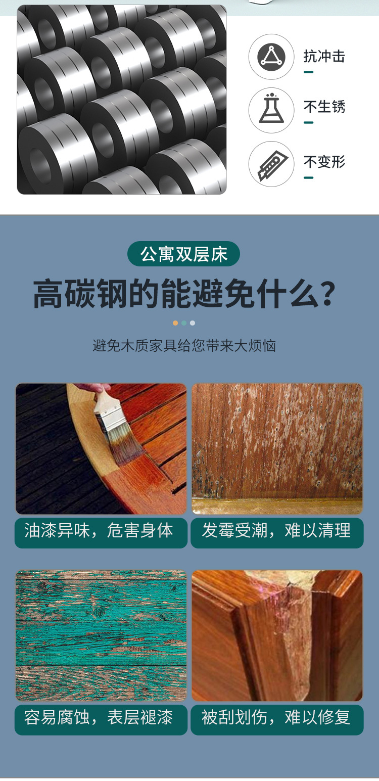 학교 특수 이층 철제 프레임 침대 철제 침대 건설 현장 직원 기숙사 학생 아파트 철제 침대 이층 프로파일 침대스토어 가기