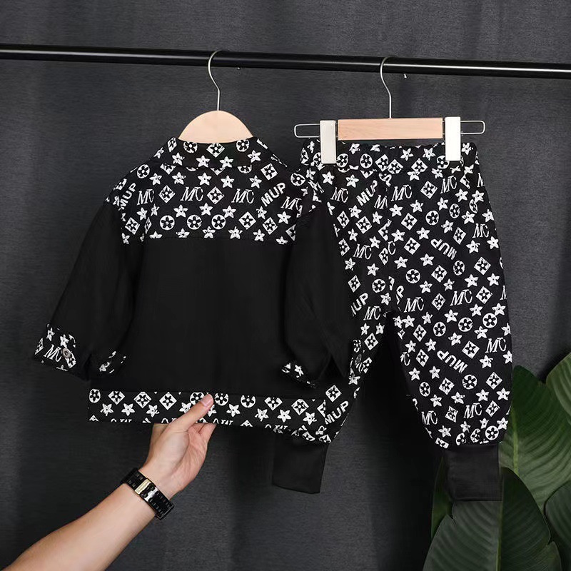 소년 2025 봄과 가을 새로운 한국어 스타일 편지 인쇄 작업복 투피스 세트 서양식 잘 생긴 아기 유행 정장 어린이스토어 가기