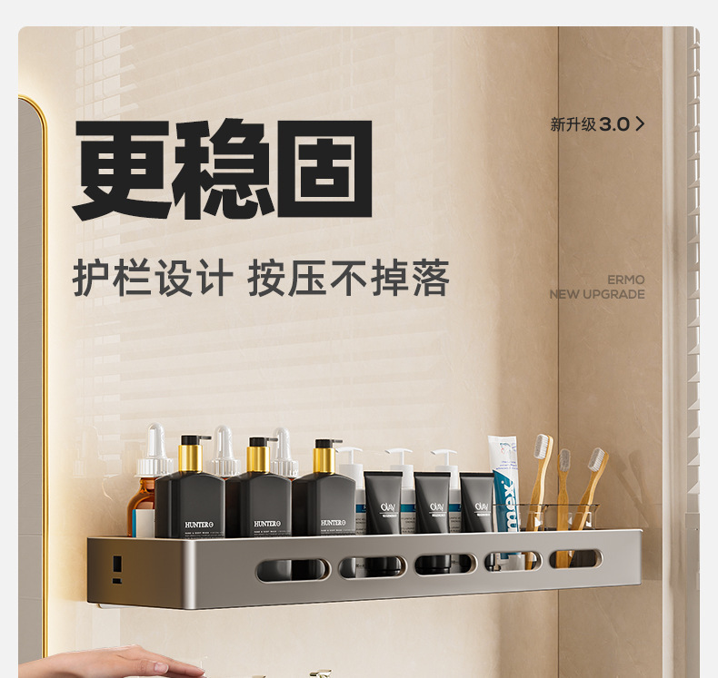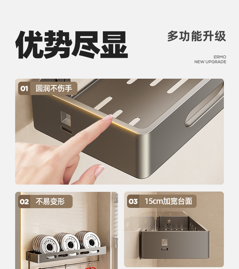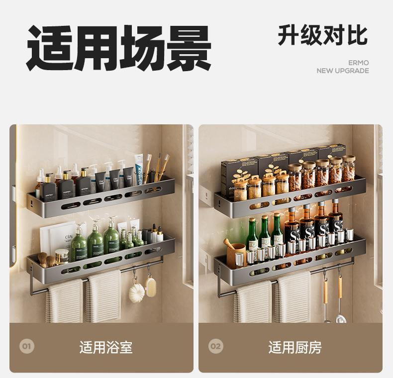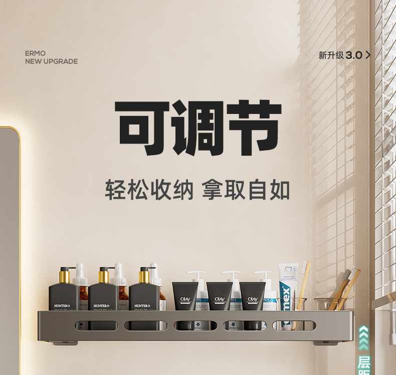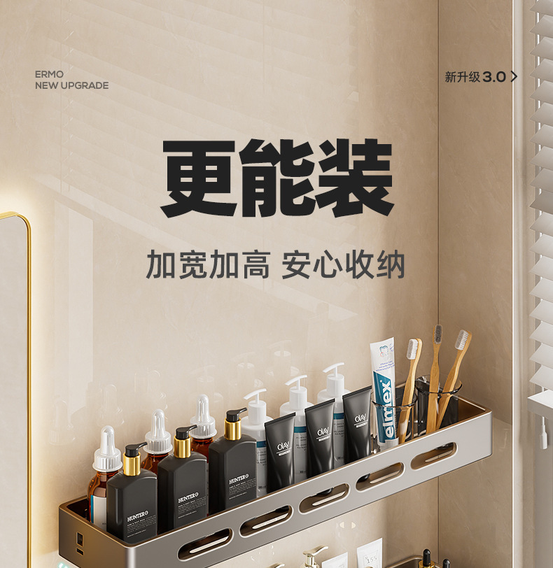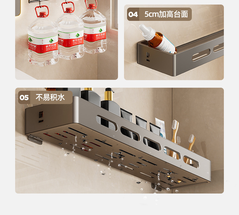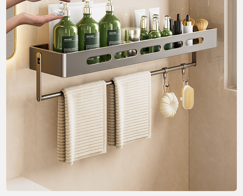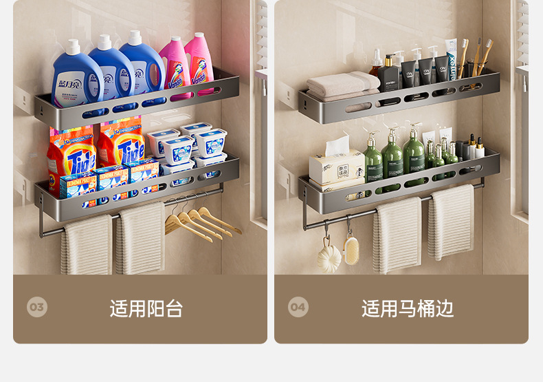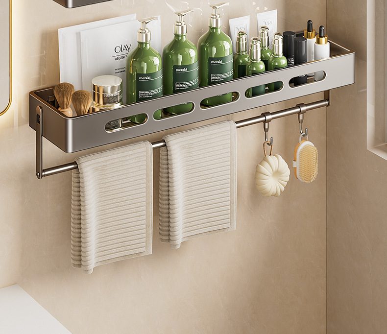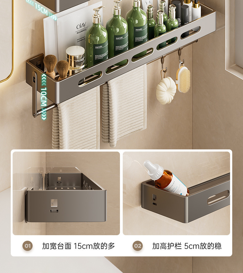 총 회색 화장실 보관 랙 펀치없는 욕실 화장실 세척 욕실 세척 테이블 벽걸이 벽 선반스토어 가기