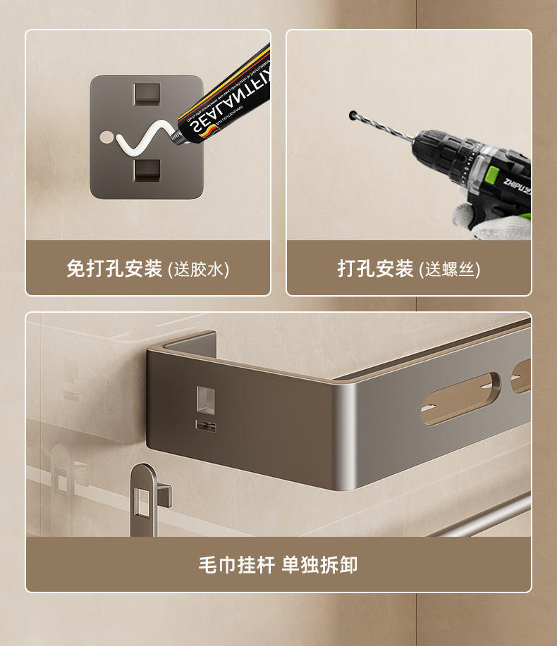 총 회색 화장실 보관 랙 펀치없는 욕실 화장실 세척 욕실 세척 테이블 벽걸이 벽 선반