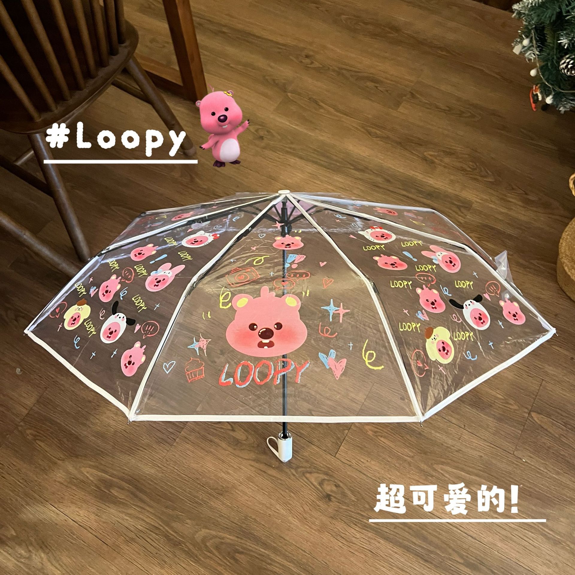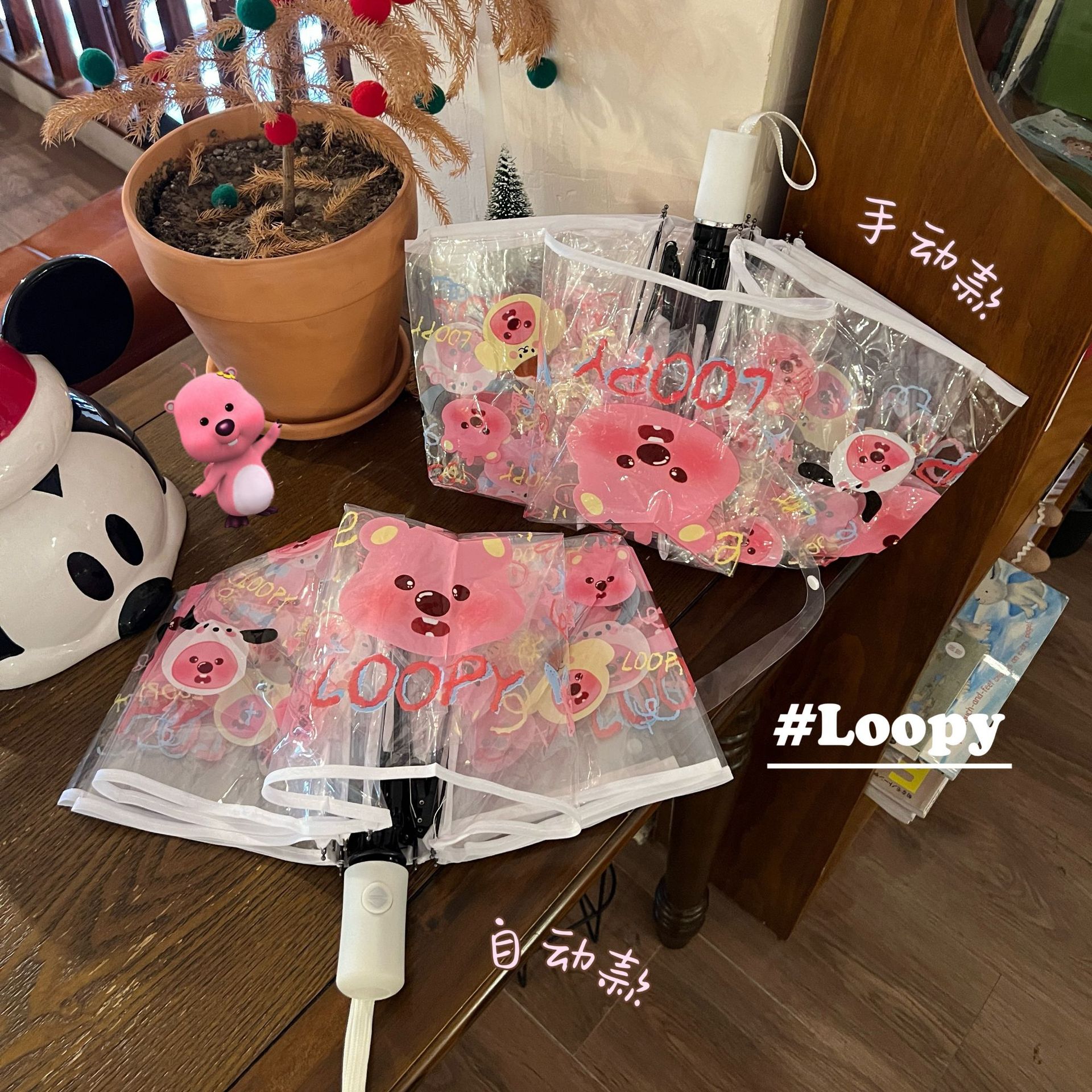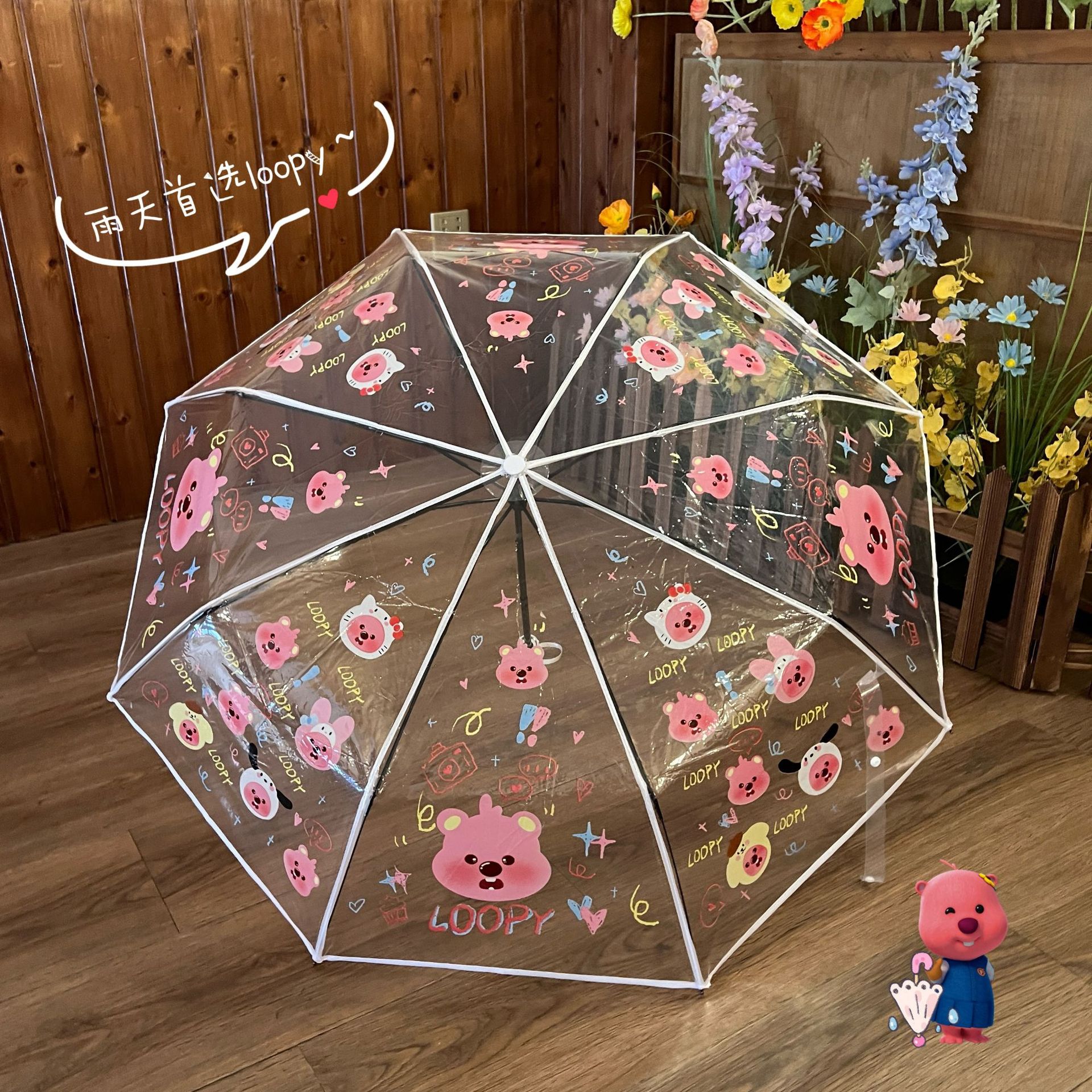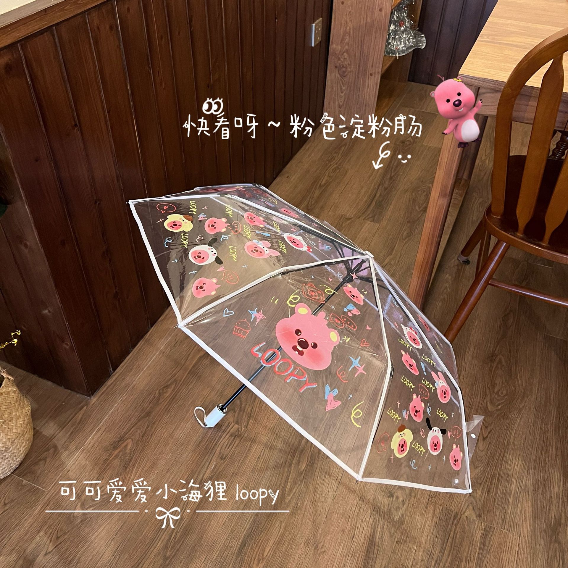 비버 만화 귀여운 모리 루비 루피 투명한 우산 신선한 자동 접히는 어린이 학생 두꺼운 우산스토어 가기