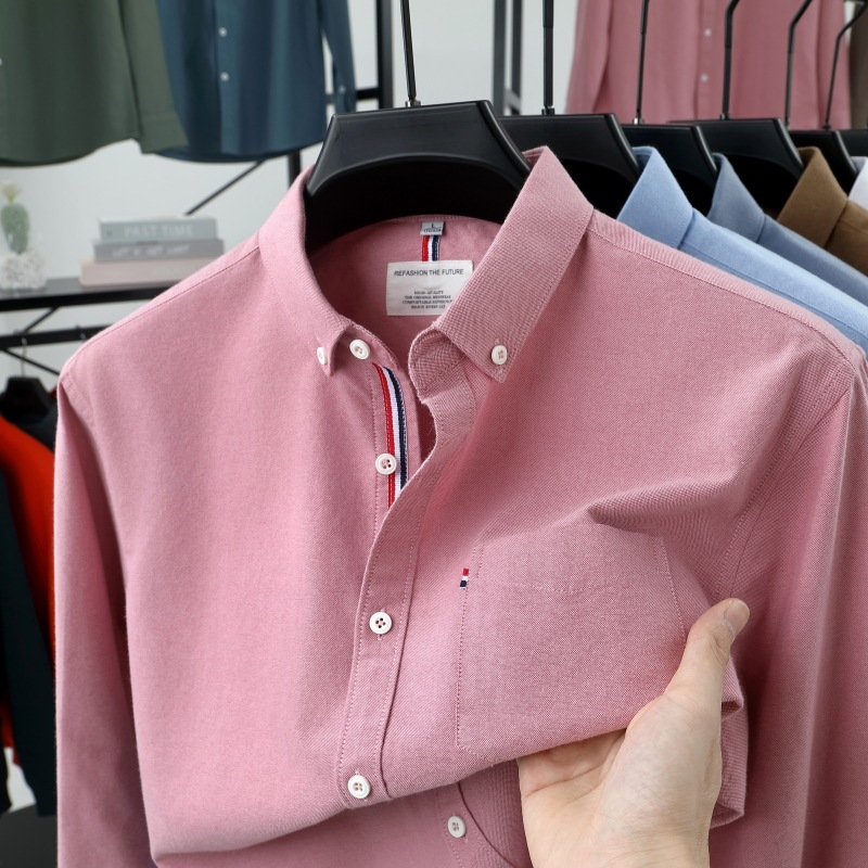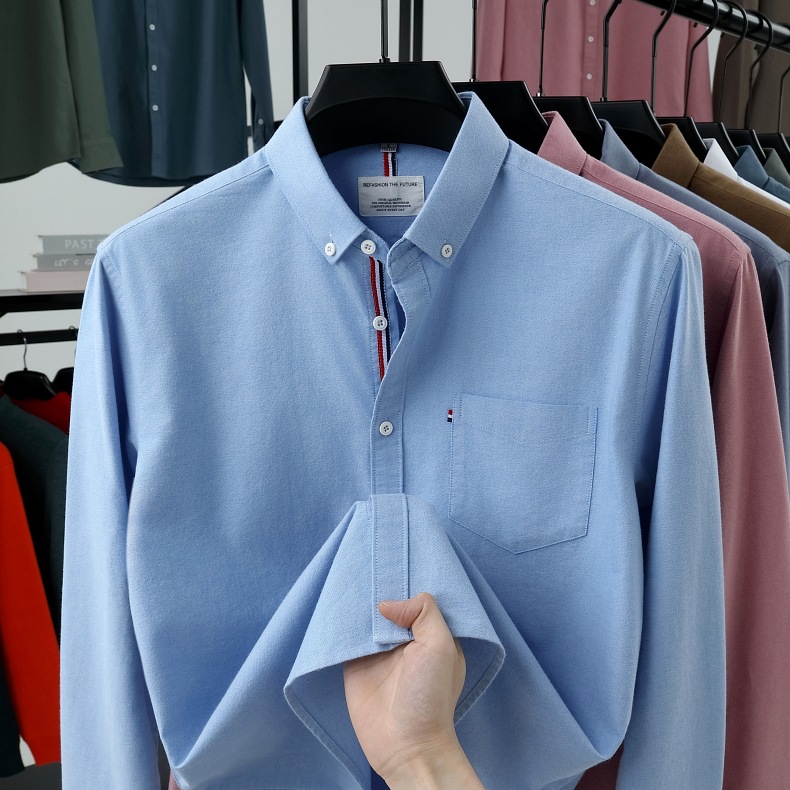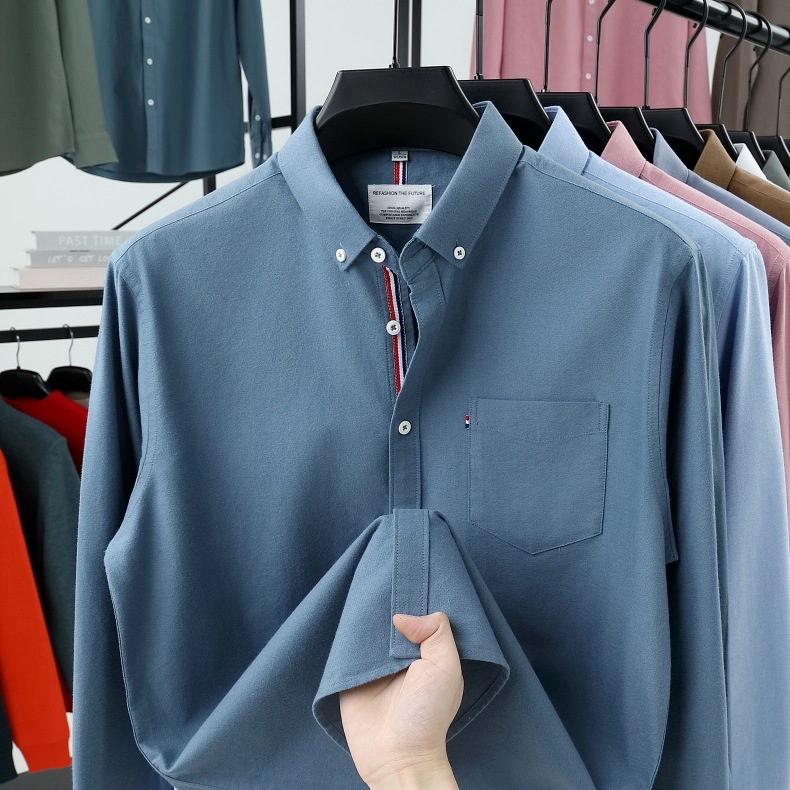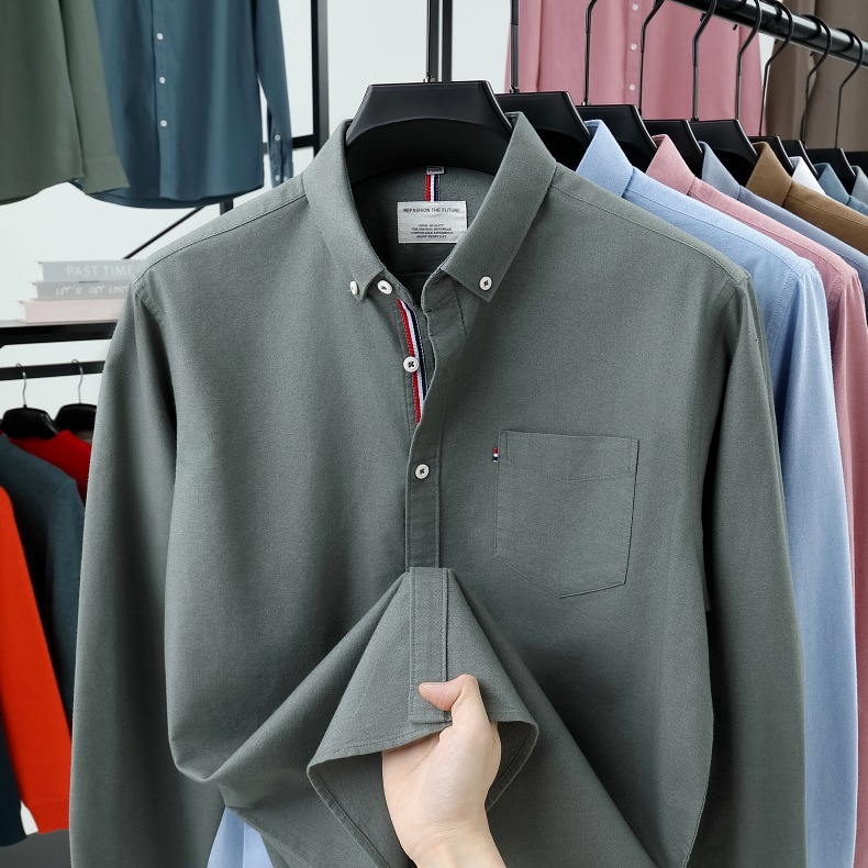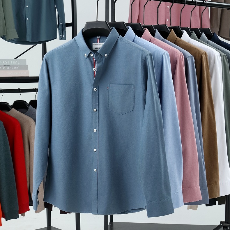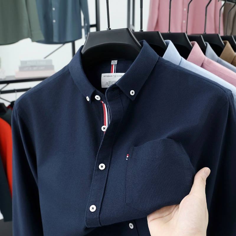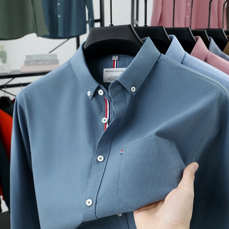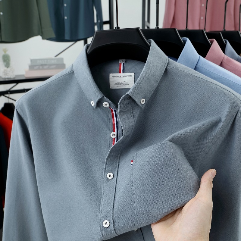 고급 옥스포드 회전 100 면 긴팔 셔츠 남성용 단색 비즈니스 포켓 캐주얼 셔츠 작업복 트렌디 셔츠스토어 가기