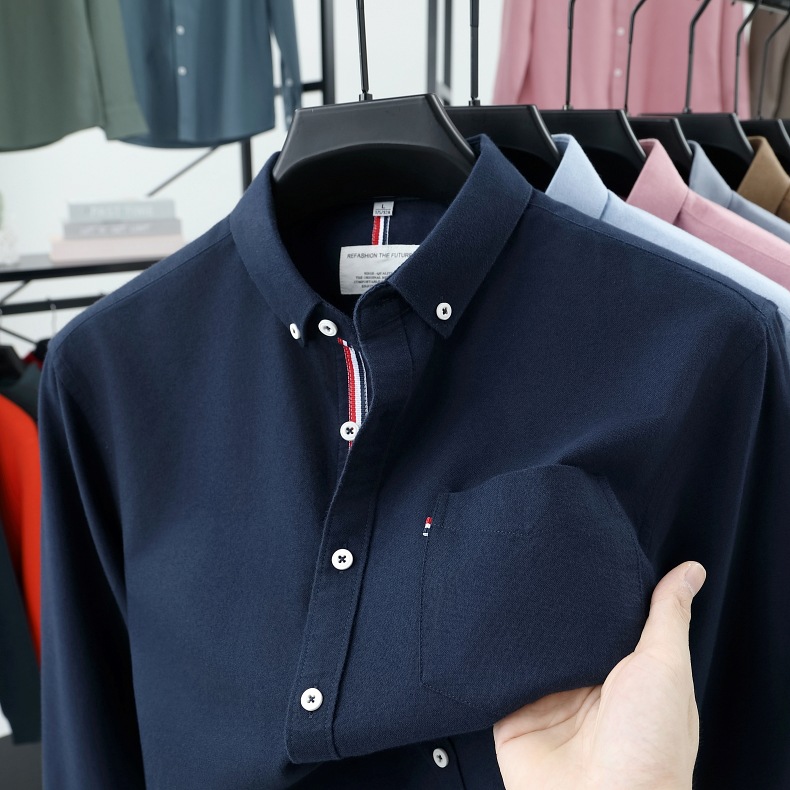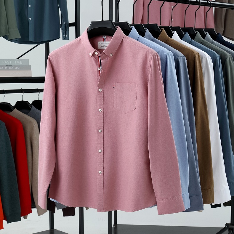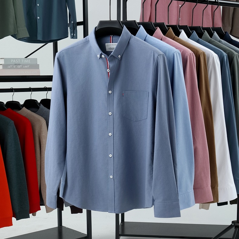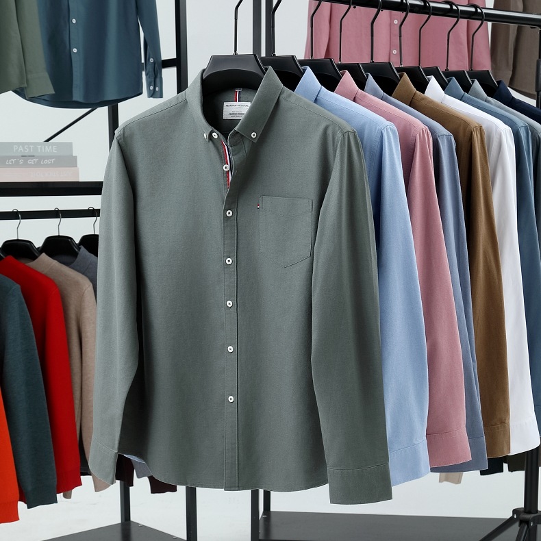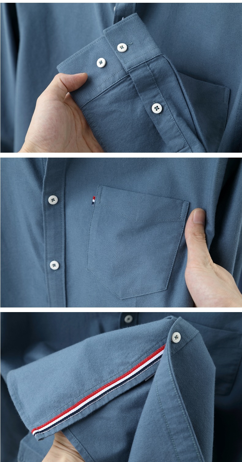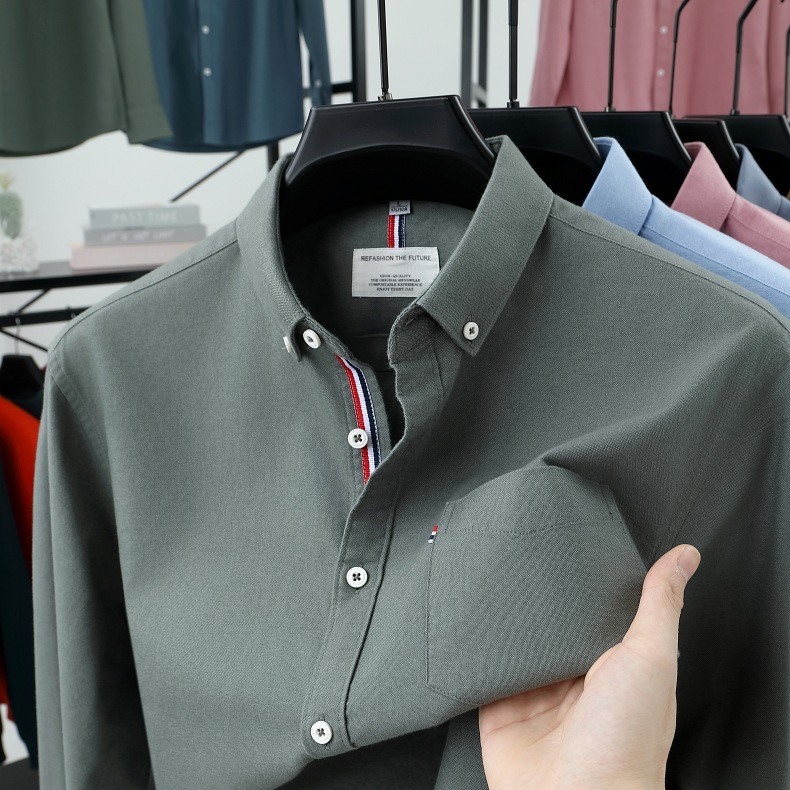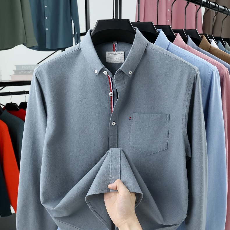 고급 옥스포드 회전 100 면 긴팔 셔츠 남성용 단색 비즈니스 포켓 캐주얼 셔츠 작업복 트렌디 셔츠스토어 가기