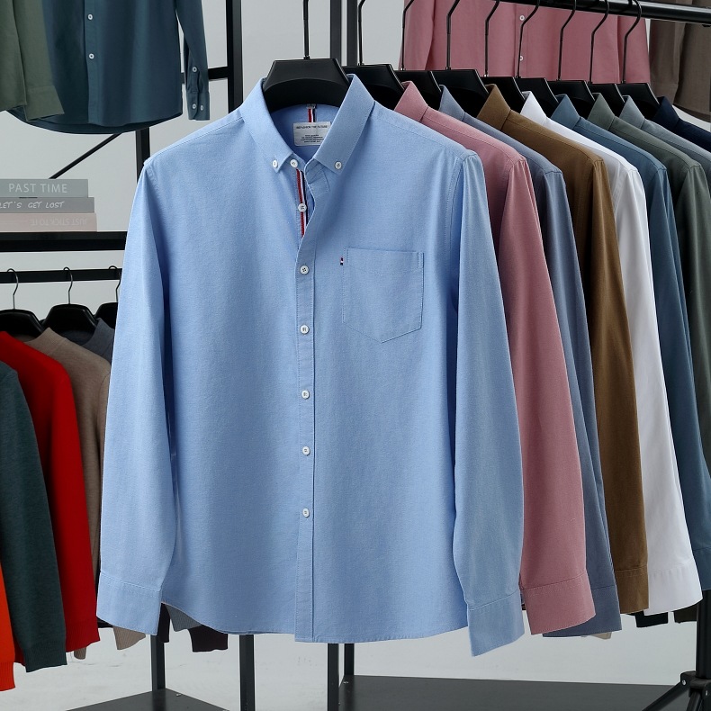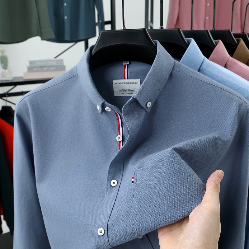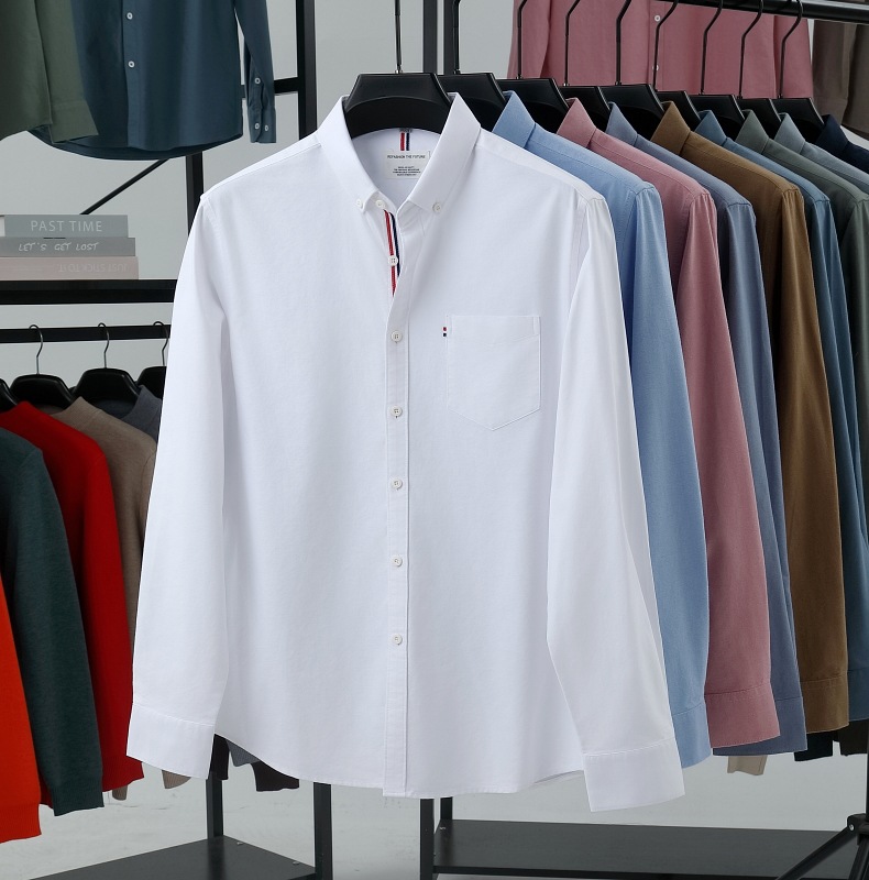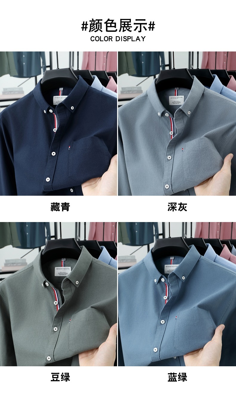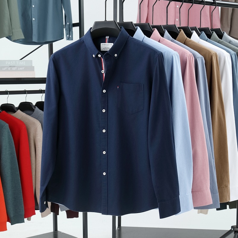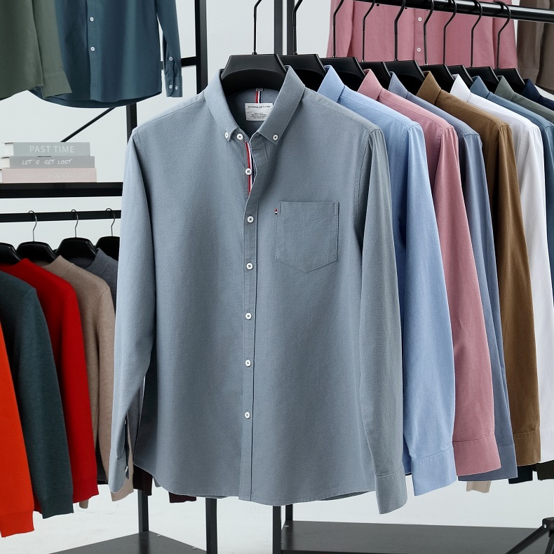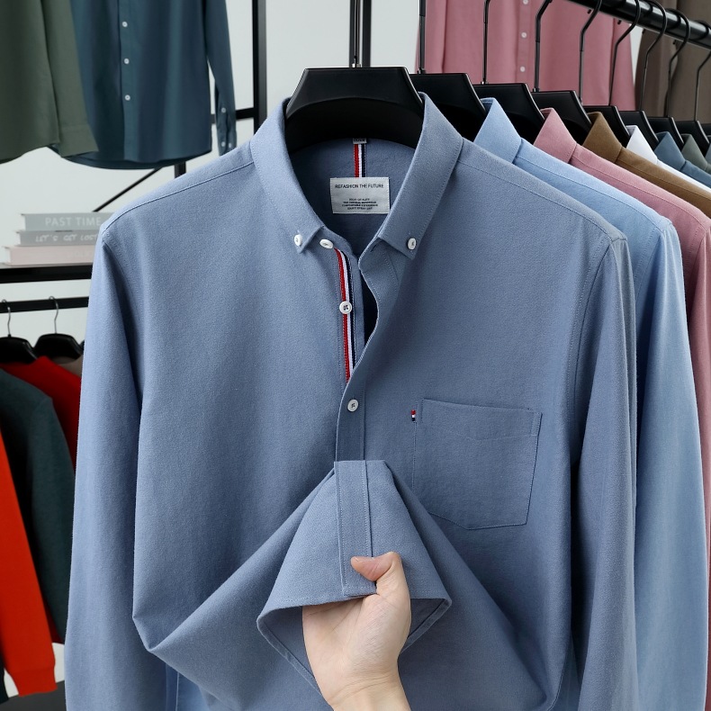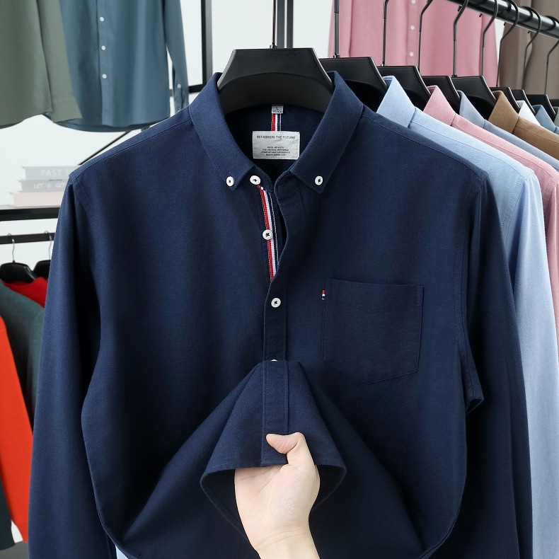 고급 옥스포드 회전 100 면 긴팔 셔츠 남성용 단색 비즈니스 포켓 캐주얼 셔츠 작업복 트렌디 셔츠스토어 가기