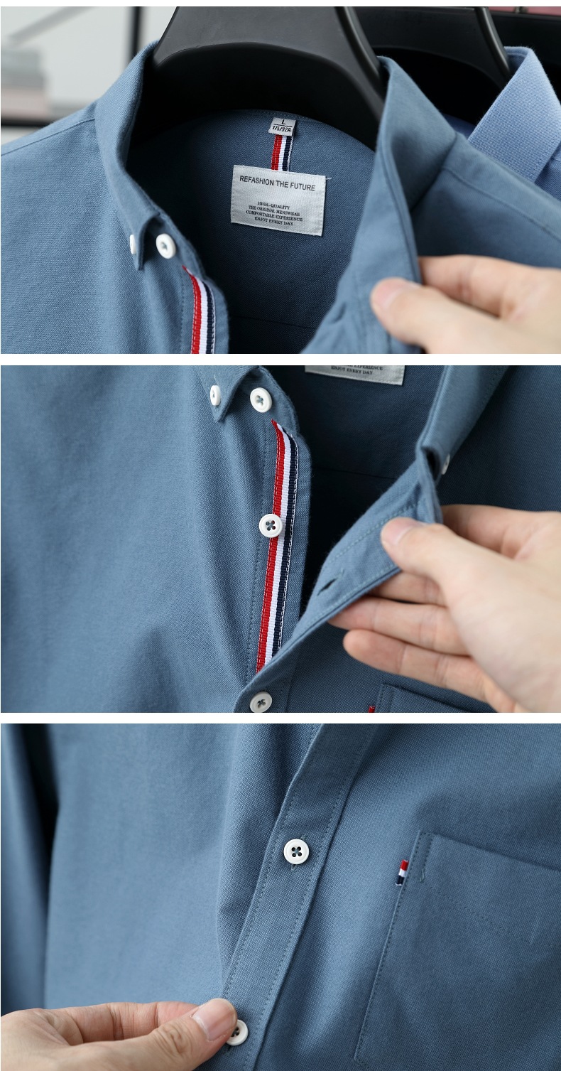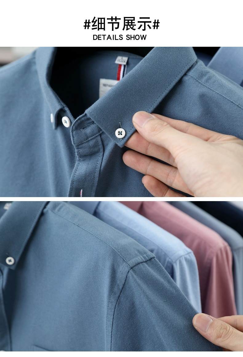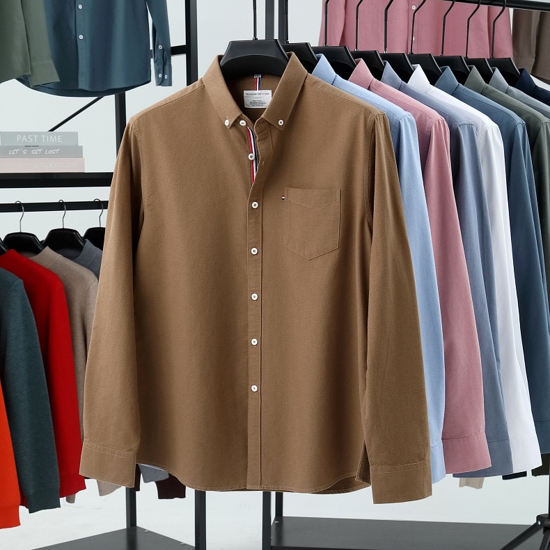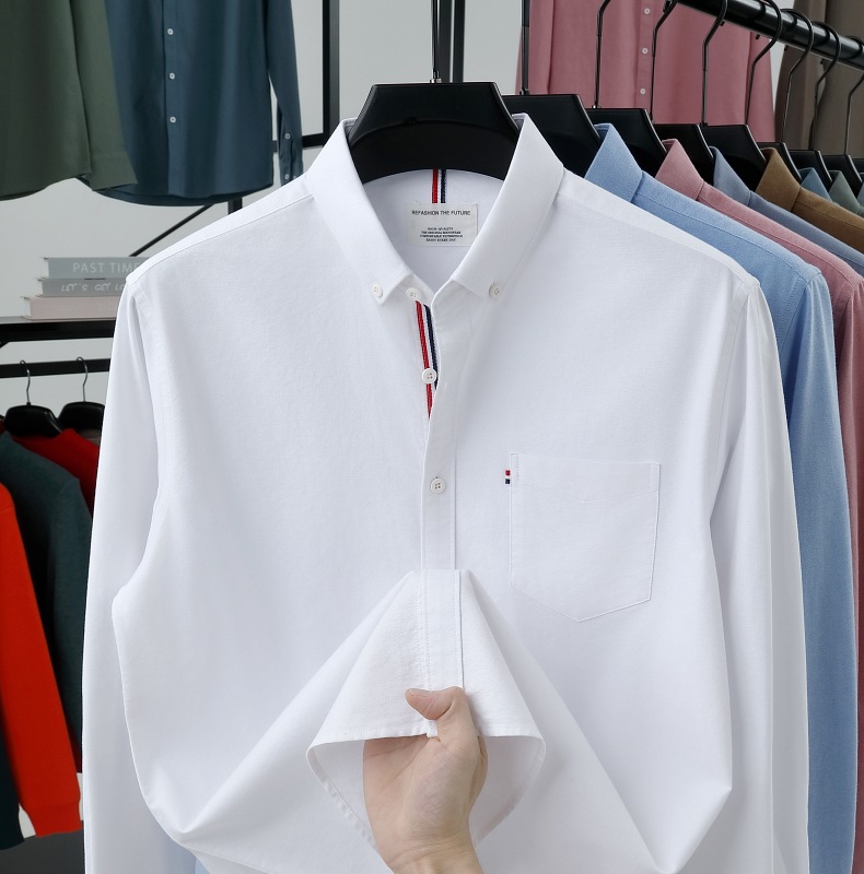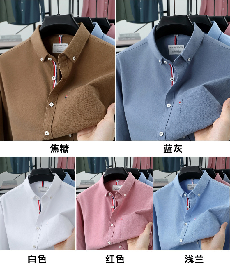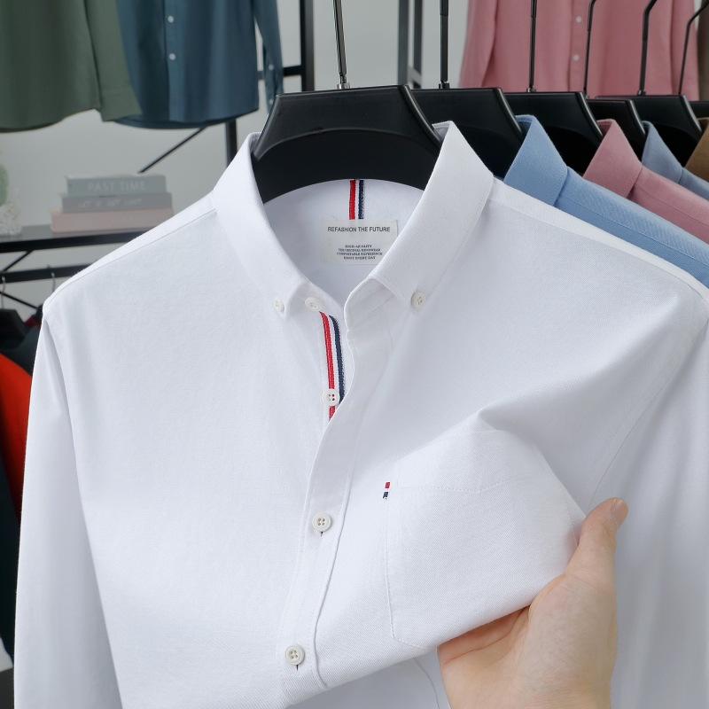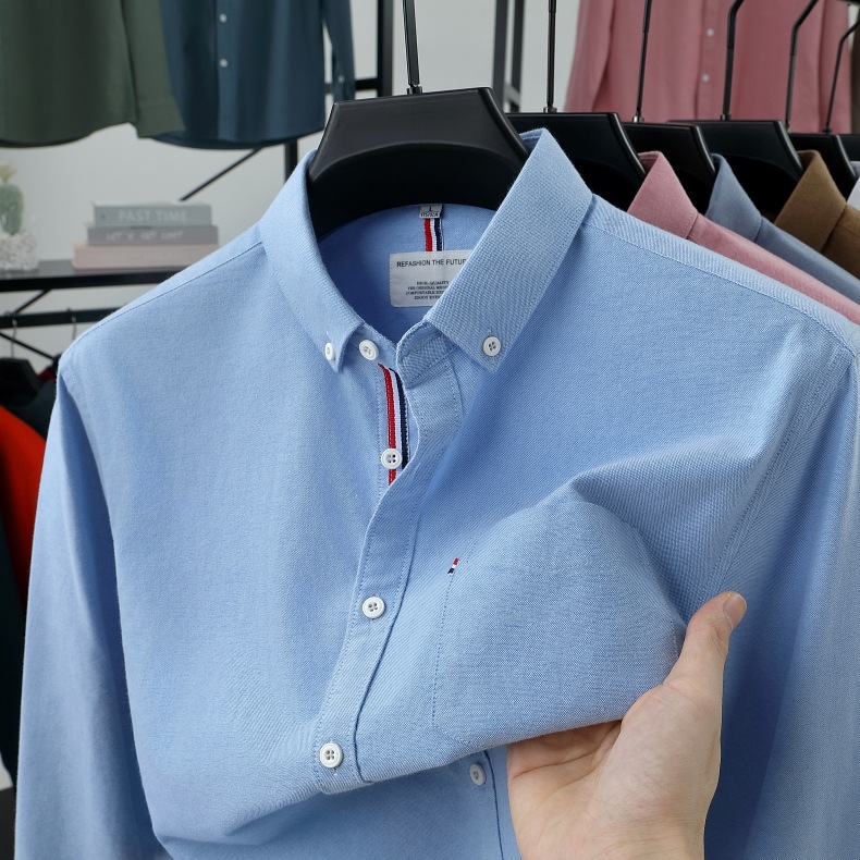 고급 옥스포드 회전 100 면 긴팔 셔츠 남성용 단색 비즈니스 포켓 캐주얼 셔츠 작업복 트렌디 셔츠스토어 가기