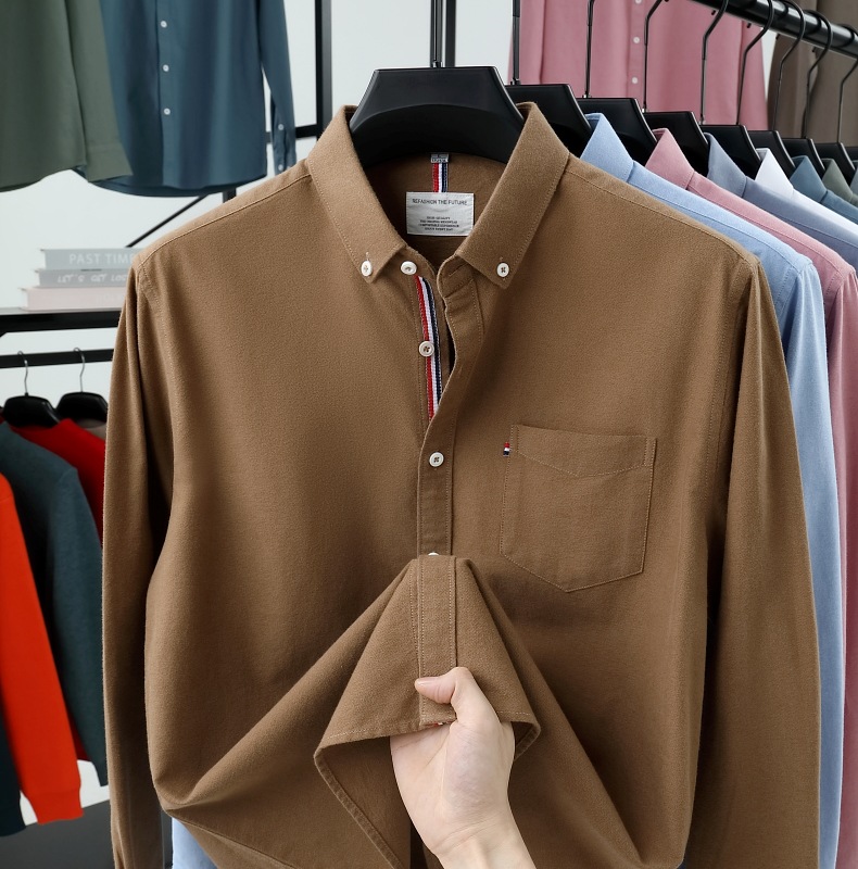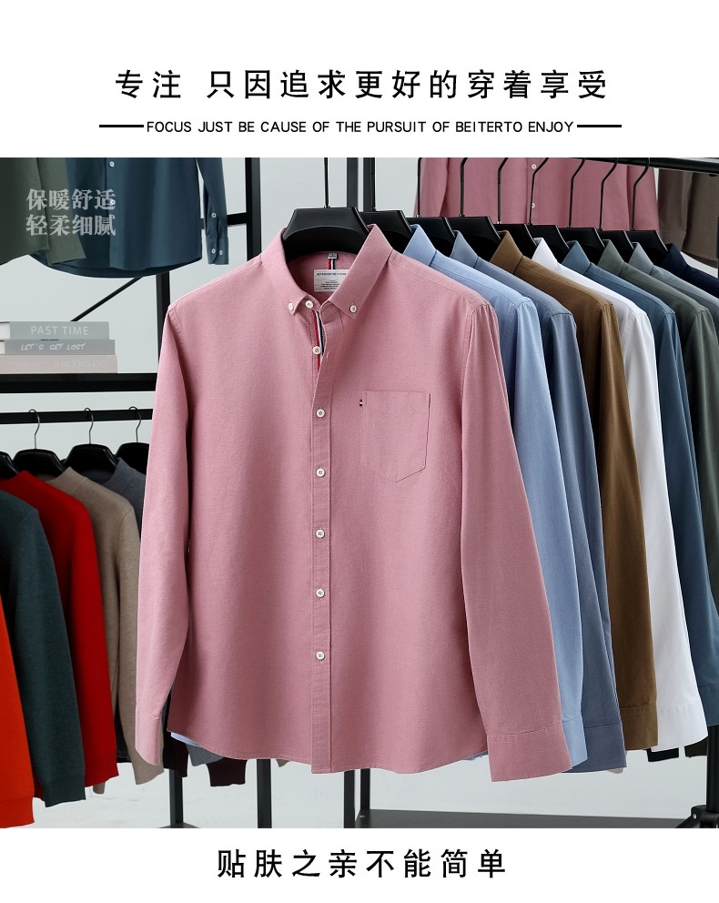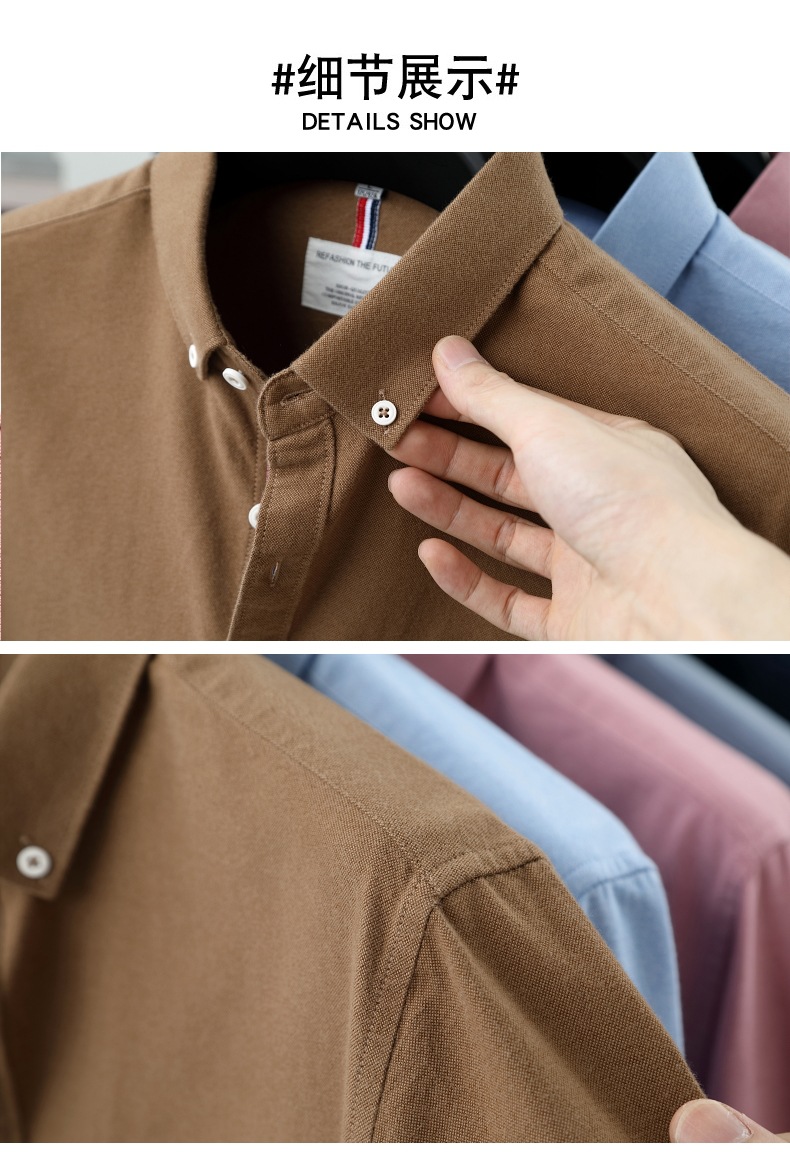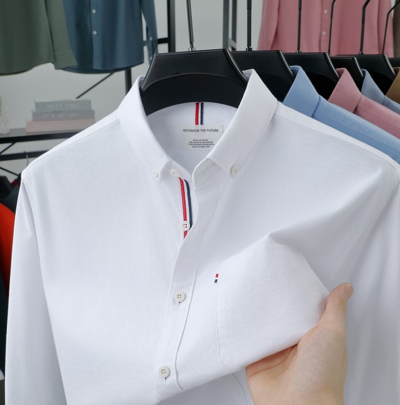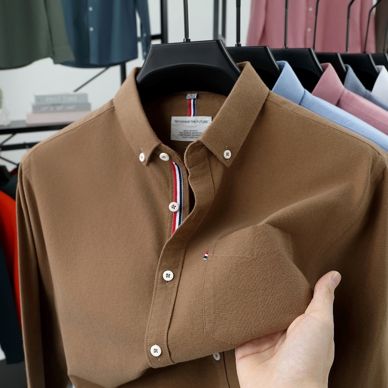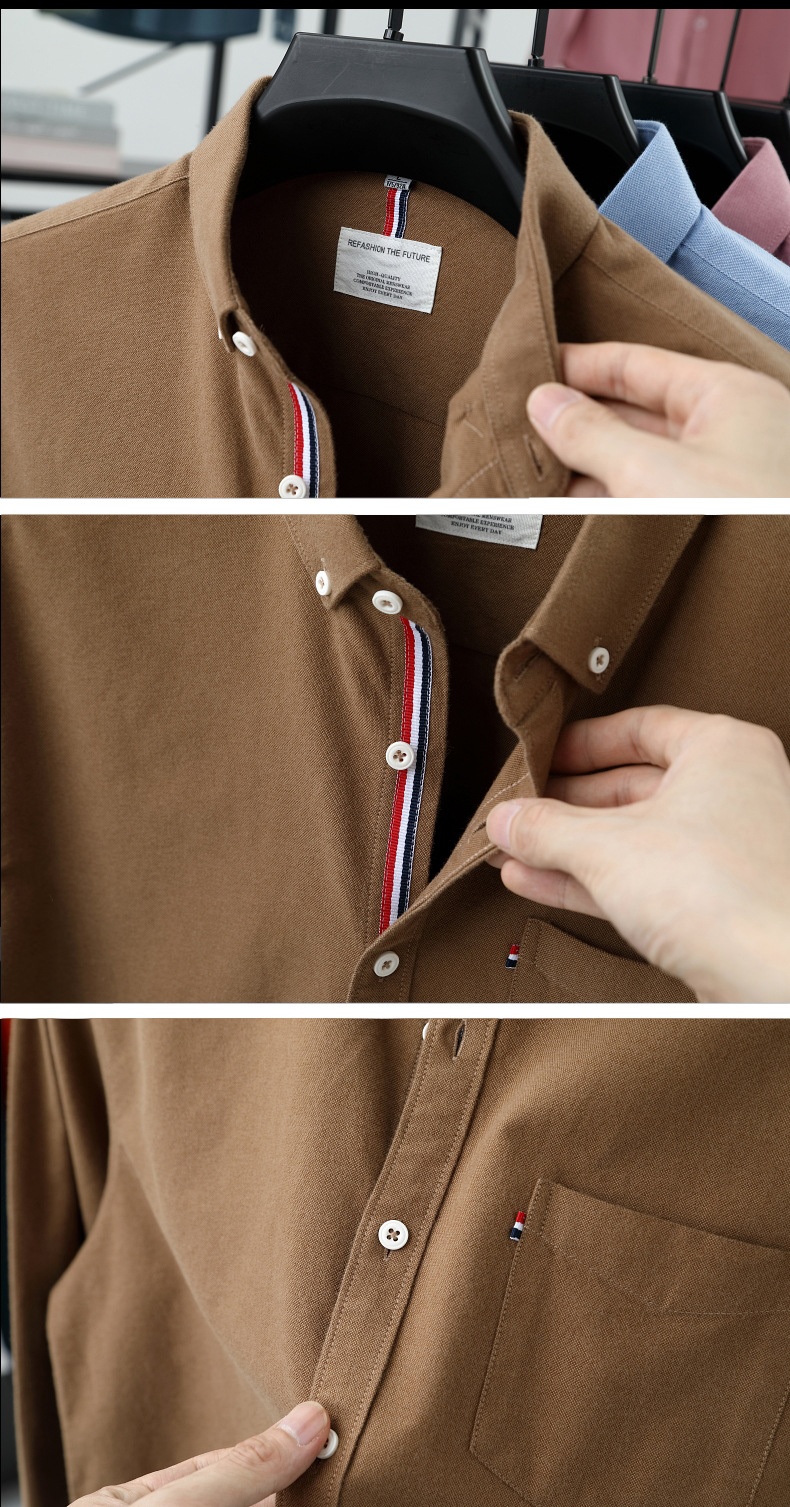 고급 옥스포드 회전 100 면 긴팔 셔츠 남성용 단색 비즈니스 포켓 캐주얼 셔츠 작업복 트렌디 셔츠스토어 가기