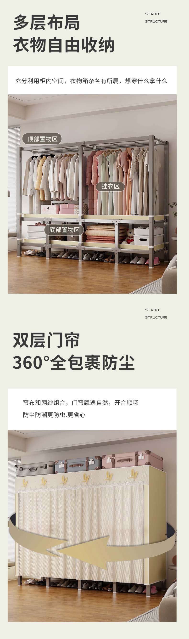 【직배송】옷장 설치 불필요 접이식 옷장 강화된 내구성 즉시 사용 가능한 일체형 천 옷장 수납스토어 가기