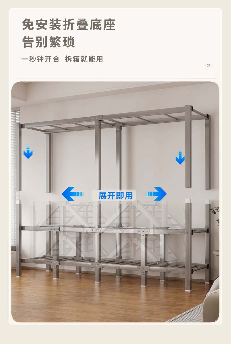 【직배송】옷장 설치 불필요 접이식 옷장 강화된 내구성 즉시 사용 가능한 일체형 천 옷장 수납