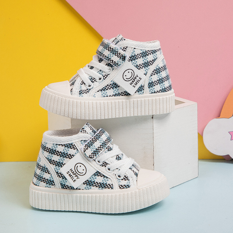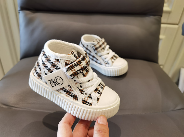 2024 가을 최고급 격자 무늬 캔버스 신발 운동화 유치원 소년 소녀 아기 신발 스케이트 신발 캐주얼 신발