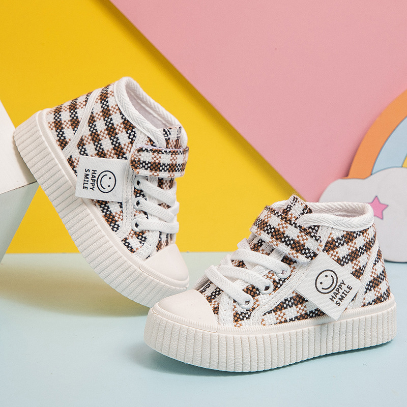 2024 가을 최고급 격자 무늬 캔버스 신발 운동화 유치원 소년 소녀 아기 신발 스케이트 신발 캐주얼 신발스토어 가기