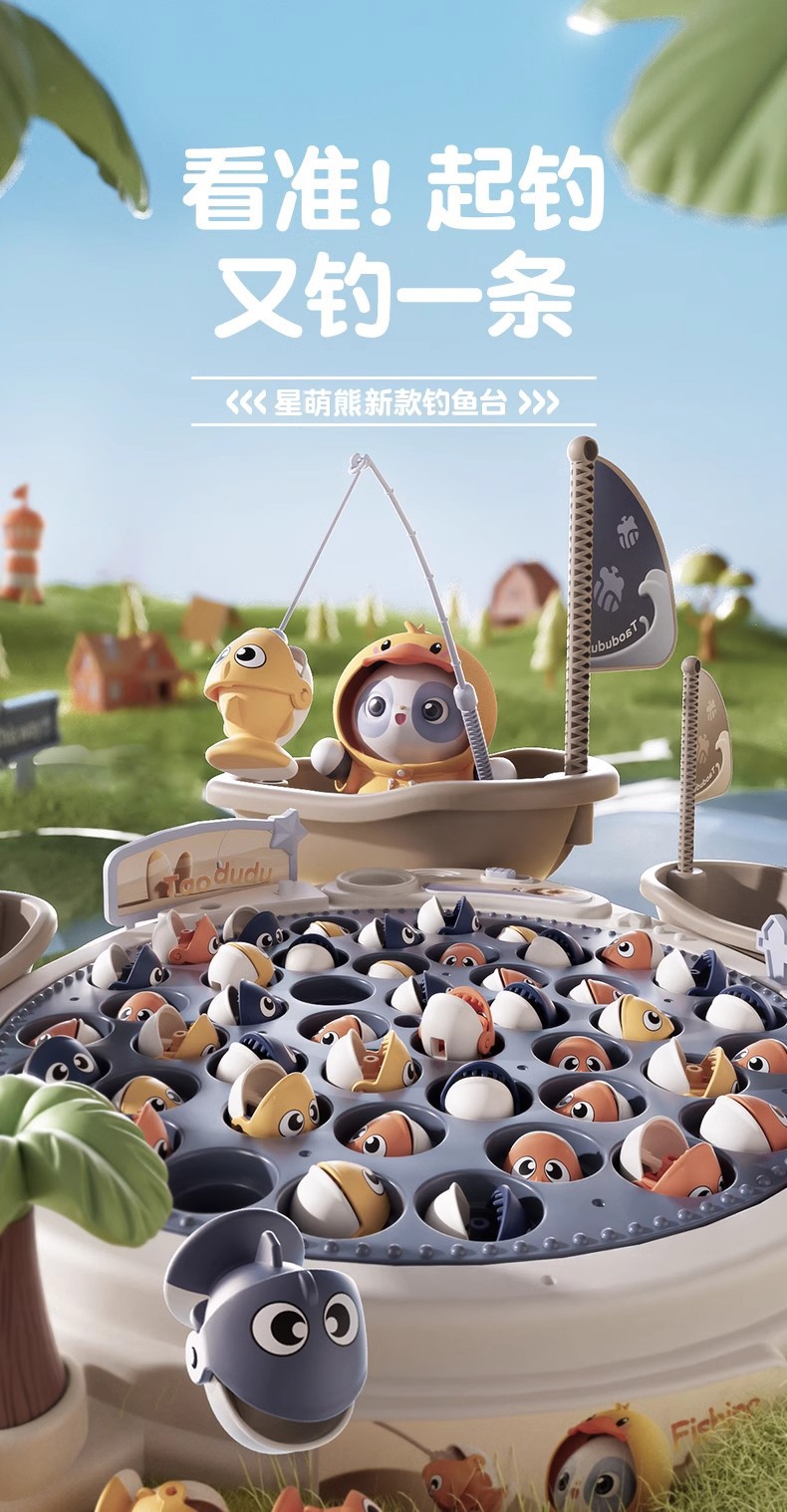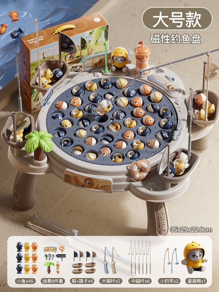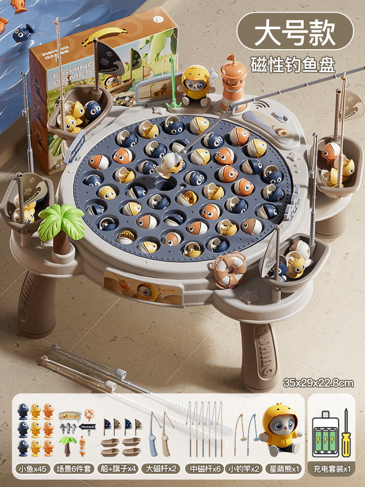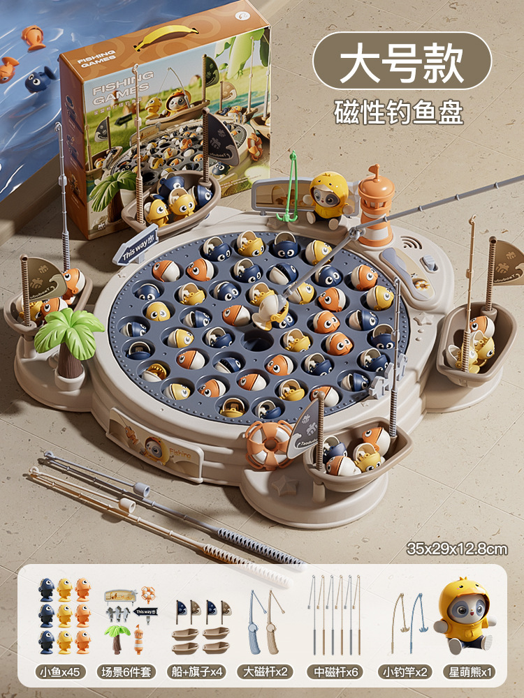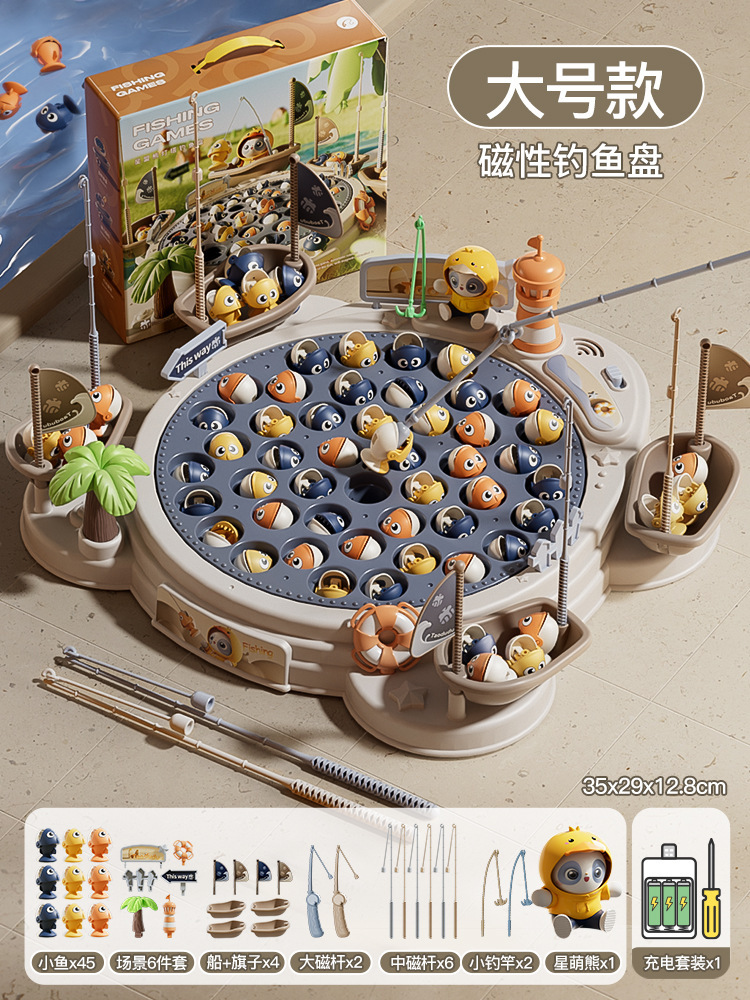 • [업그레이드된 대형 사이즈] Xingmeng 곰 등대 낚시 접시 [45마리 6 장면 4 보트 4 플래그 10 낚싯대 1 트렌디 베어] - 충전식 버전