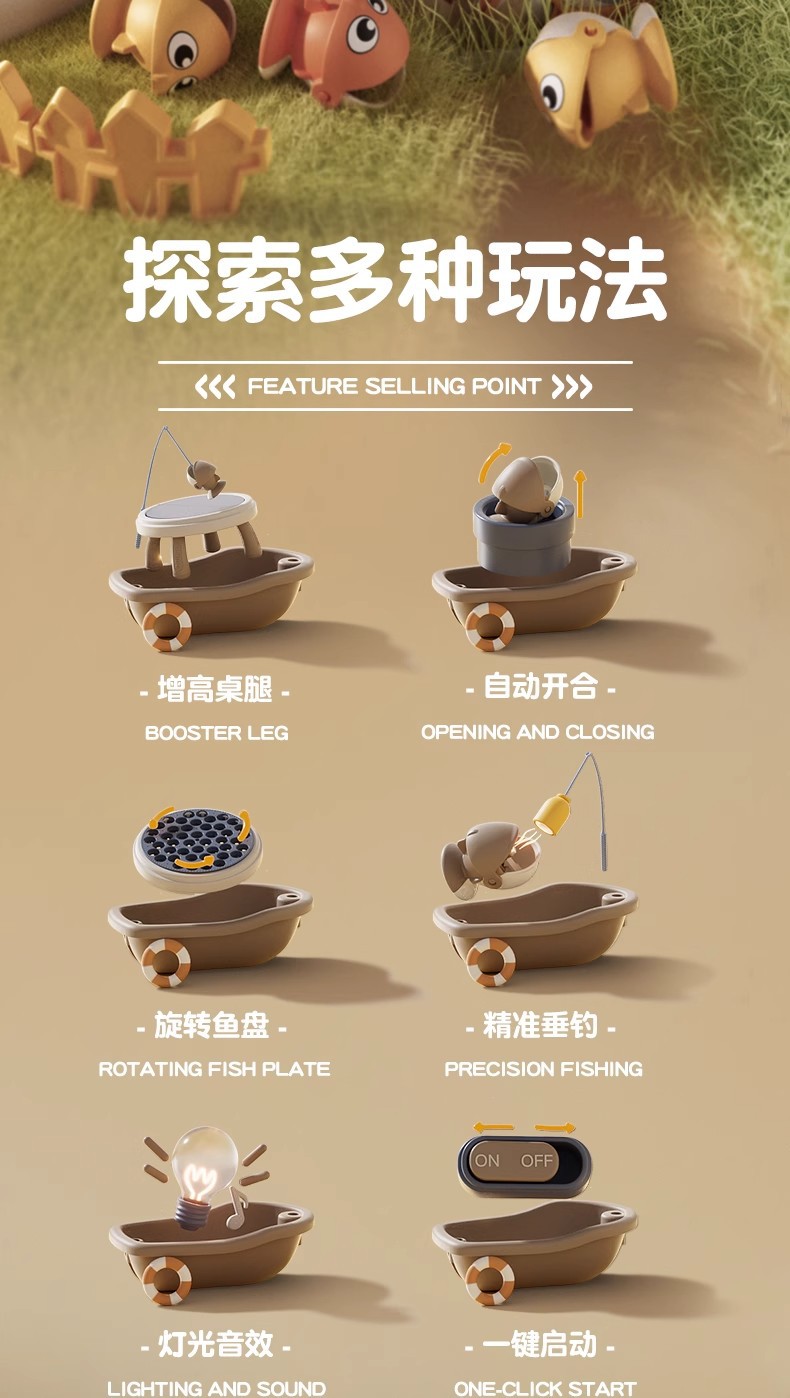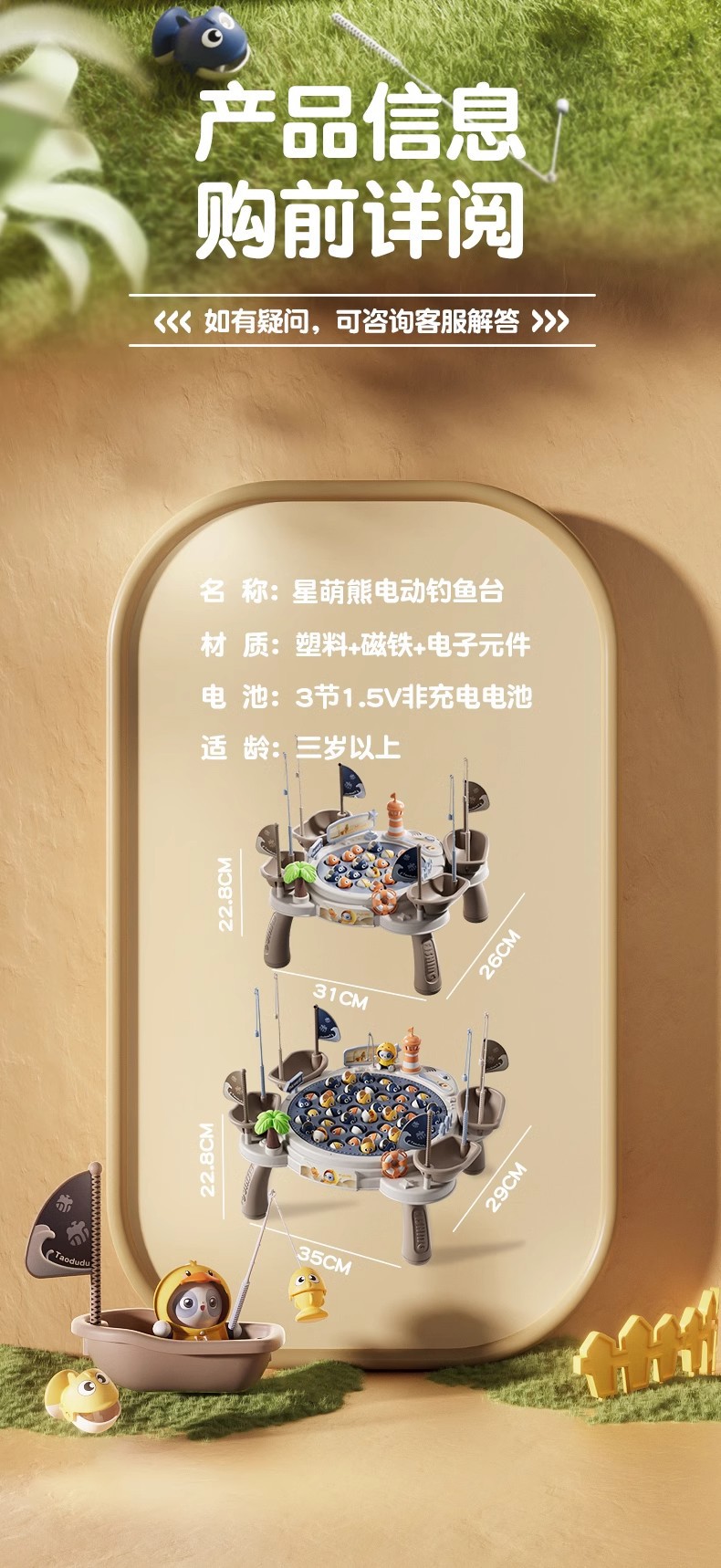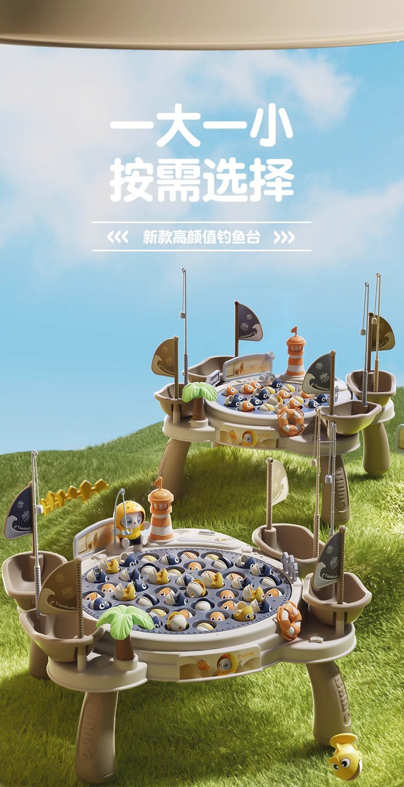 • [업그레이드된 대형 사이즈 - 다리 포함] Xingmeng 곰 등대 낚시 접시 [45 물고기 6 장면 4 보트 4 플래그 10 낚싯대 1 Xingmeng 곰] - 충전식 버전