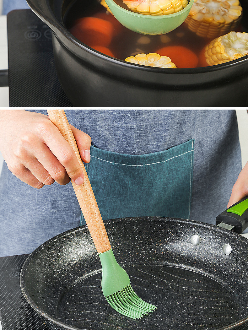 产品材质:榉木手柄+硅胶+尼龙+PP+不锈钢