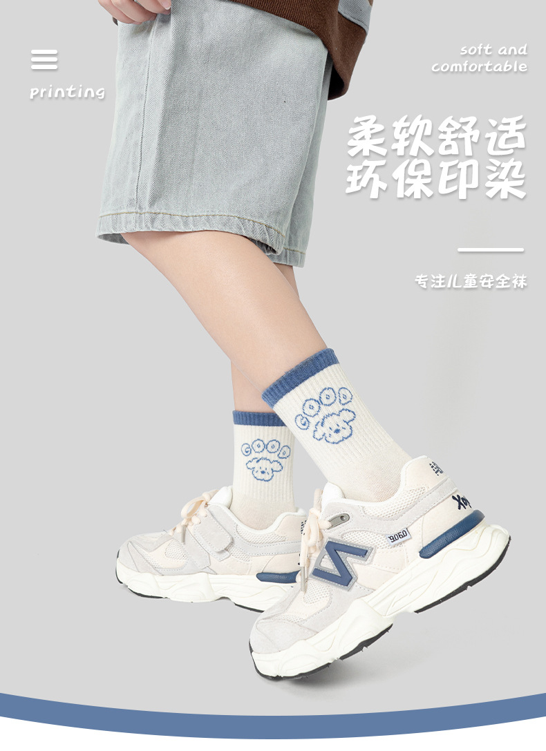 아동용 양말 2026 봄 신상 심플하고 다용도로 활용 가능한 레터링 무봉제 중목 양말 스포츠 트렌드 양말 남아용 면 양말