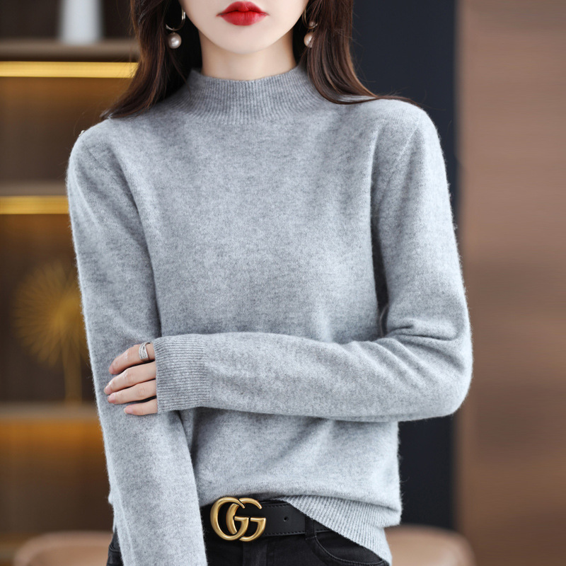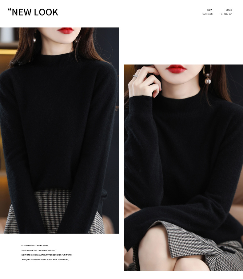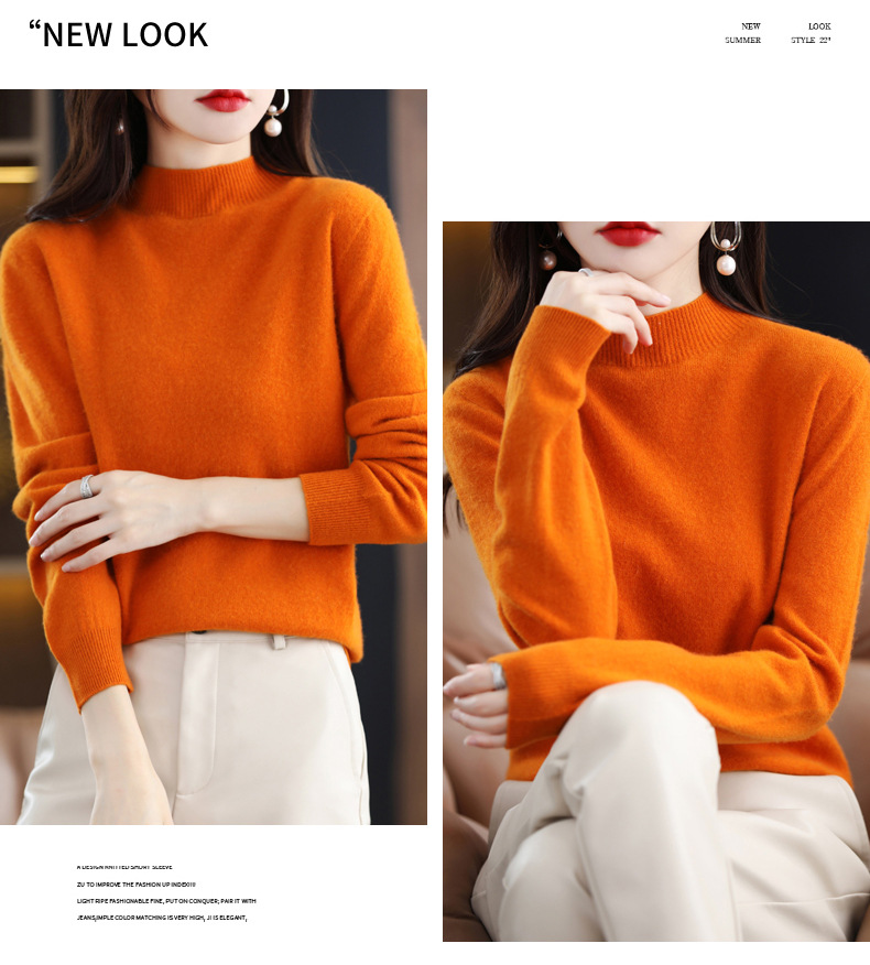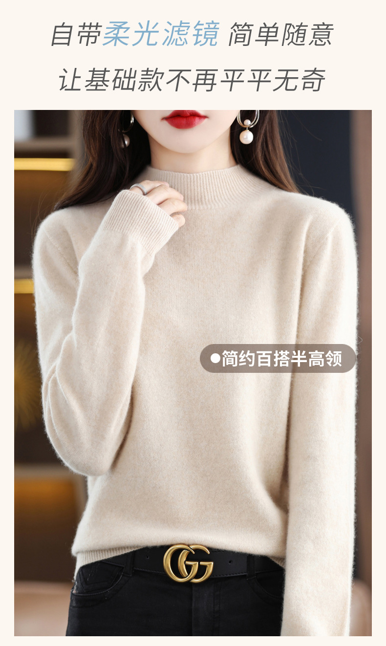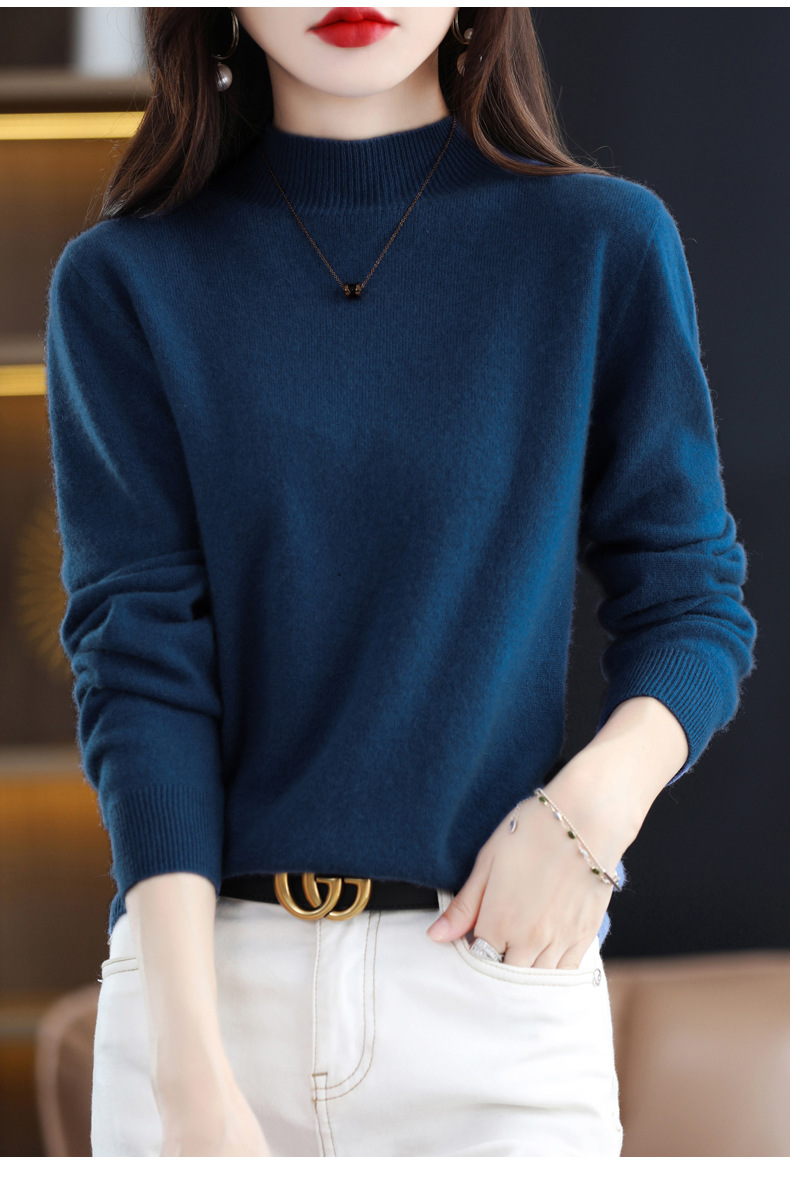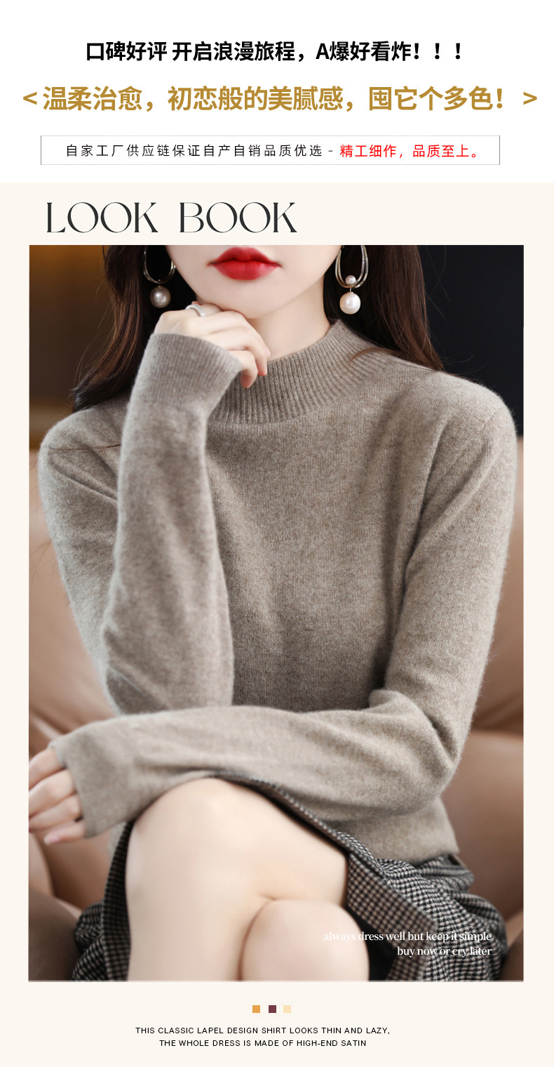 양모 블렌드 2024 년 가을과 겨울 새로운 여자 하프 터틀넥 간단한 올 매치 짧은 따뜻한 니트 베이스 셔츠 스웨터