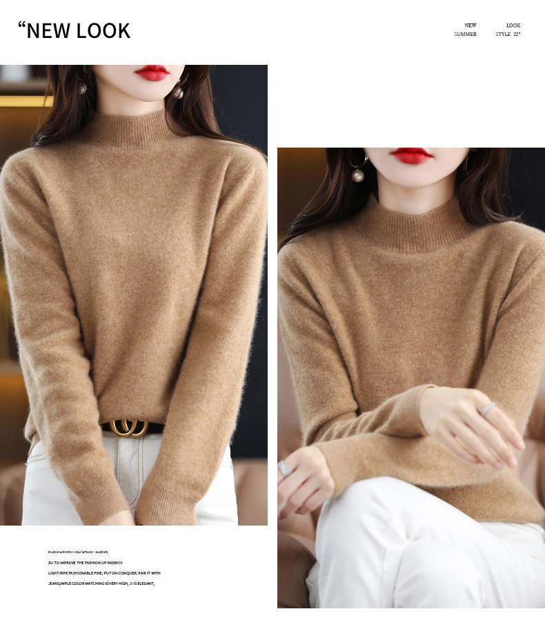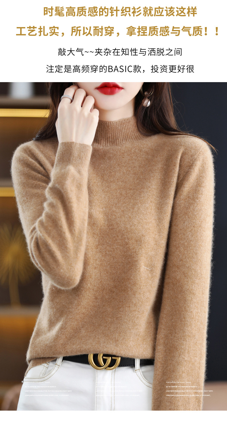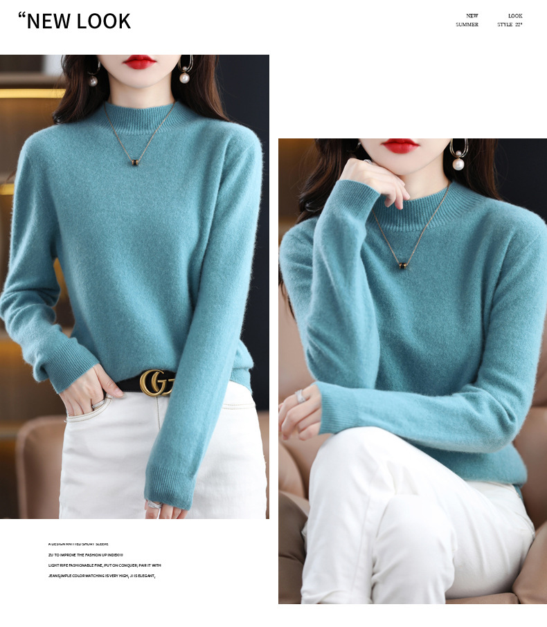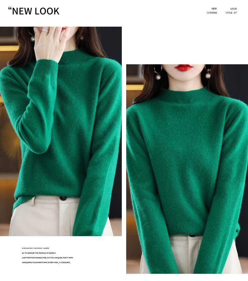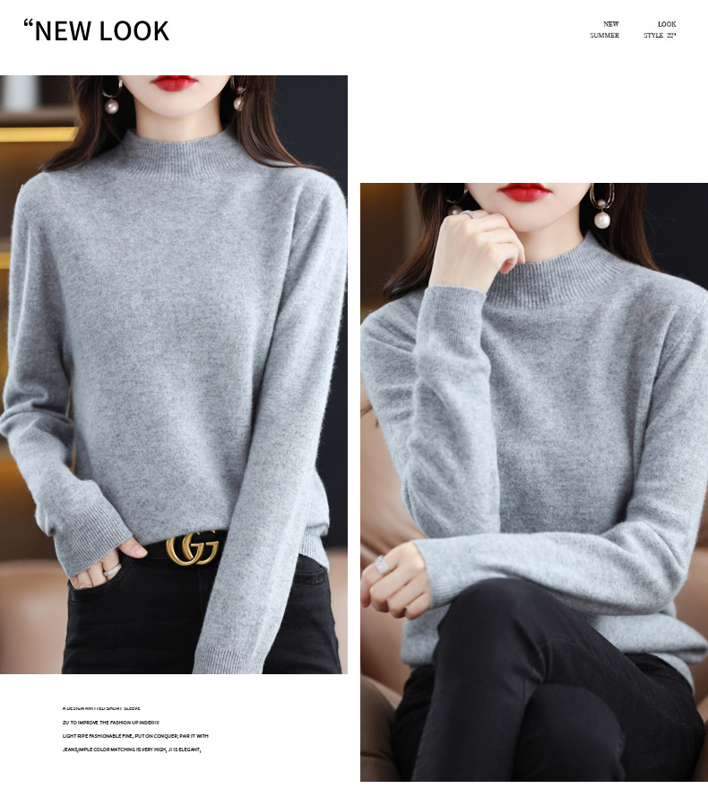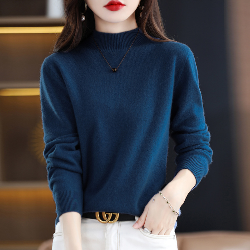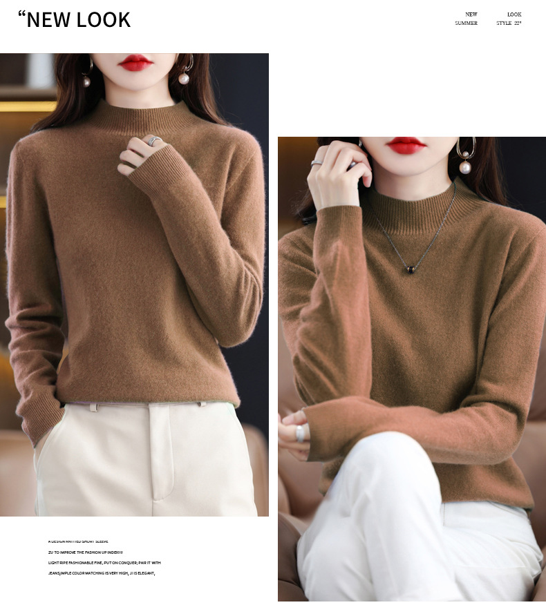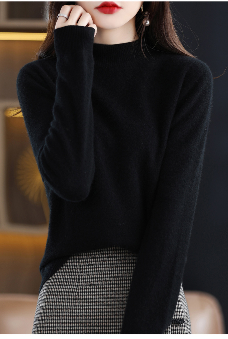 양모 블렌드 2024 년 가을과 겨울 새로운 여자 하프 터틀넥 간단한 올 매치 짧은 따뜻한 니트 베이스 셔츠 스웨터