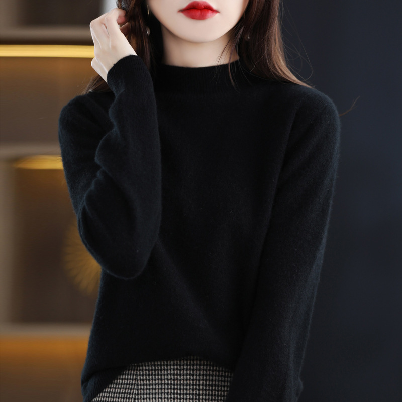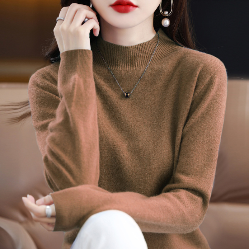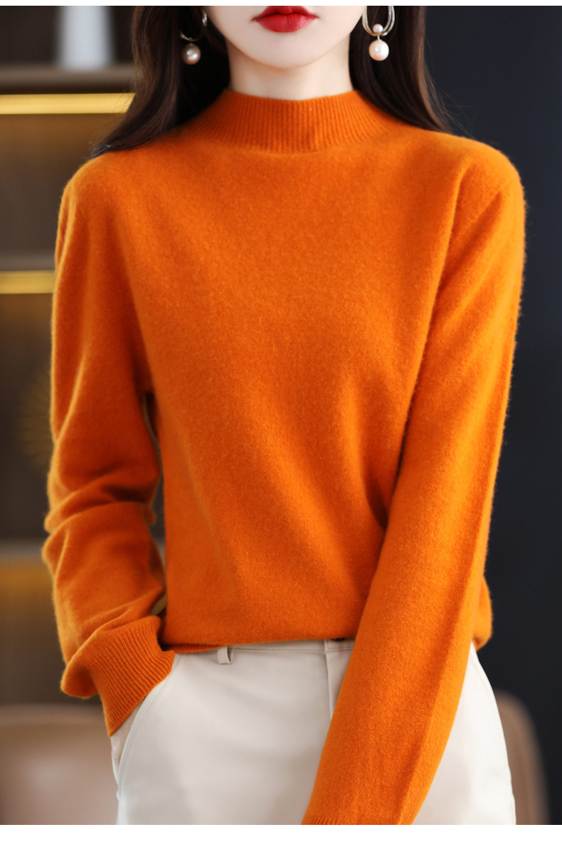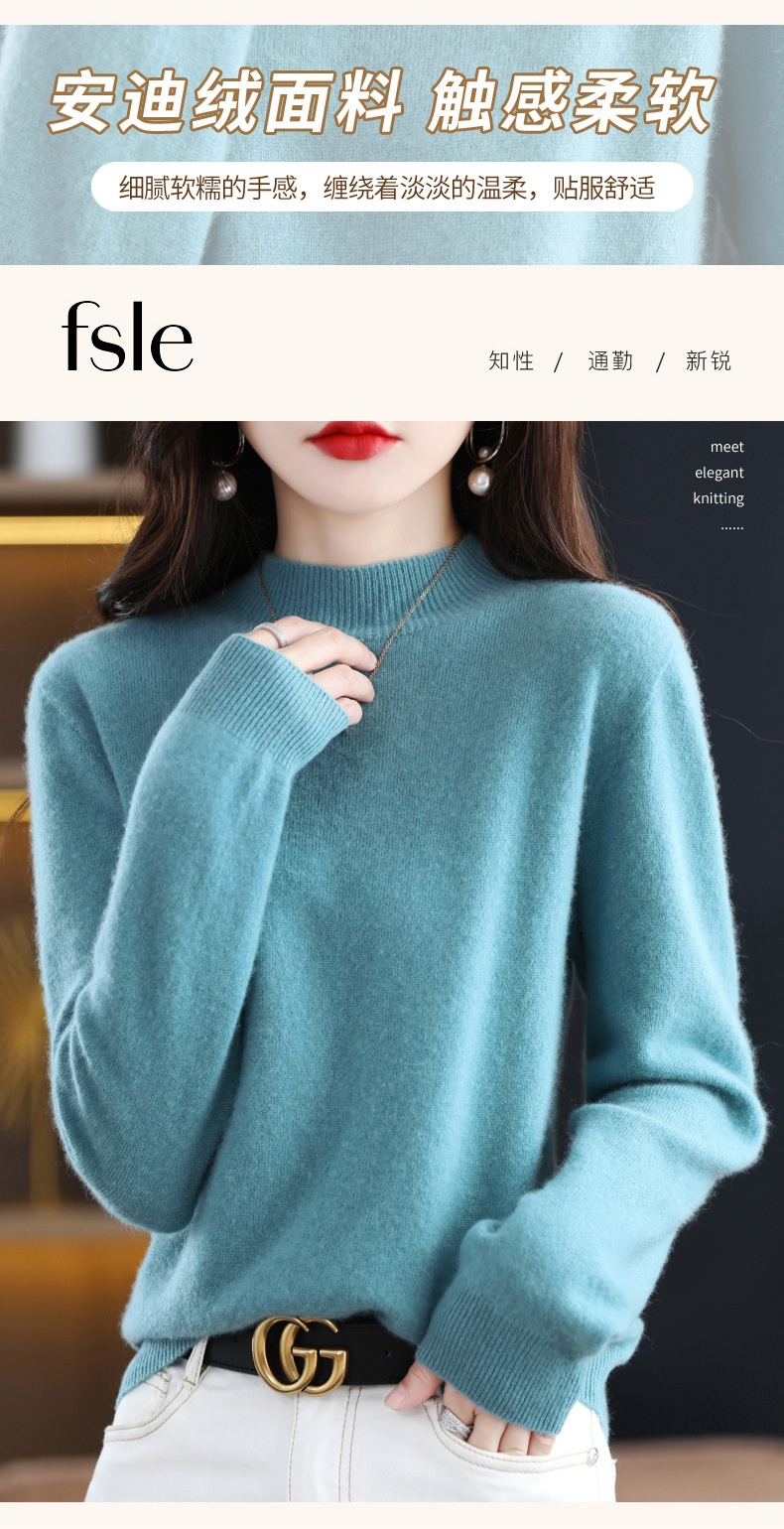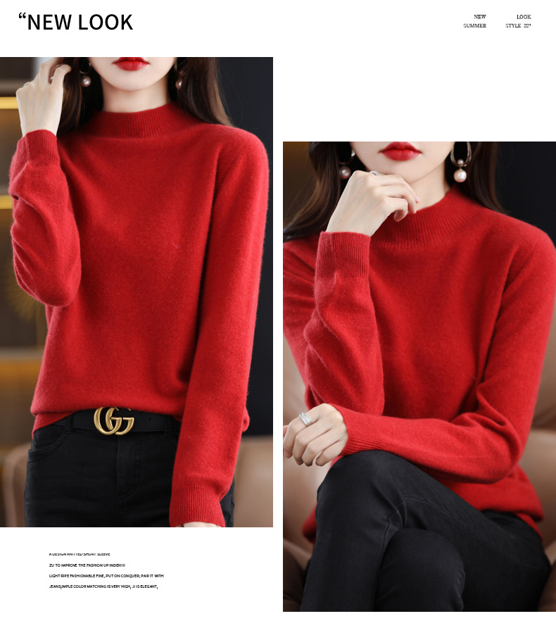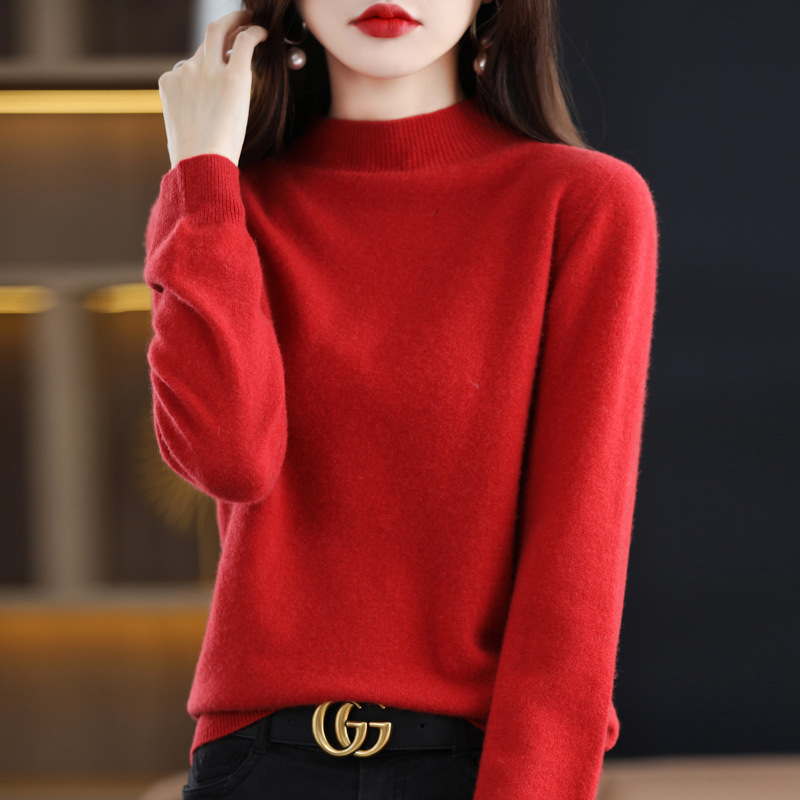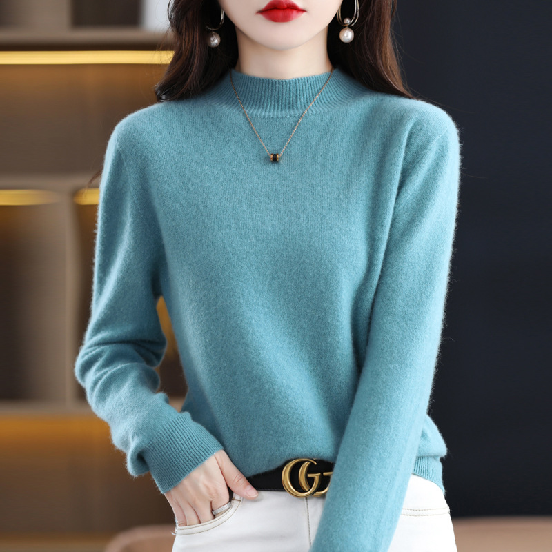 양모 블렌드 2024 년 가을과 겨울 새로운 여자 하프 터틀넥 간단한 올 매치 짧은 따뜻한 니트 베이스 셔츠 스웨터