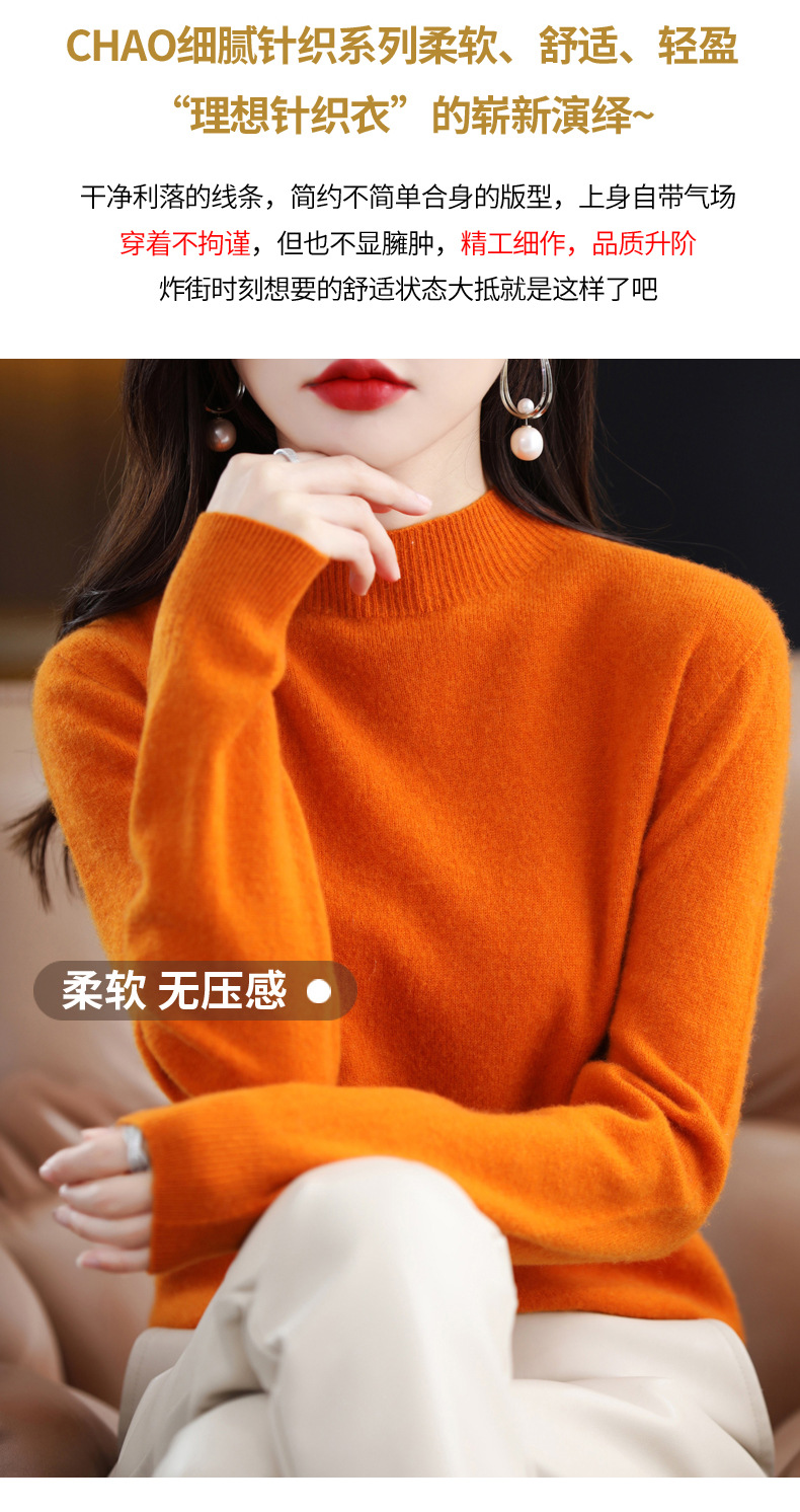 양모 블렌드 2024 년 가을과 겨울 새로운 여자 하프 터틀넥 간단한 올 매치 짧은 따뜻한 니트 베이스 셔츠 스웨터스토어 가기