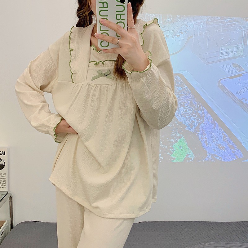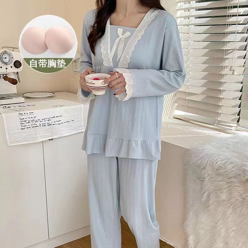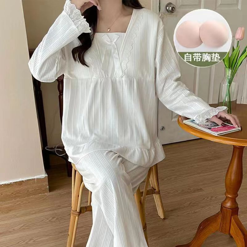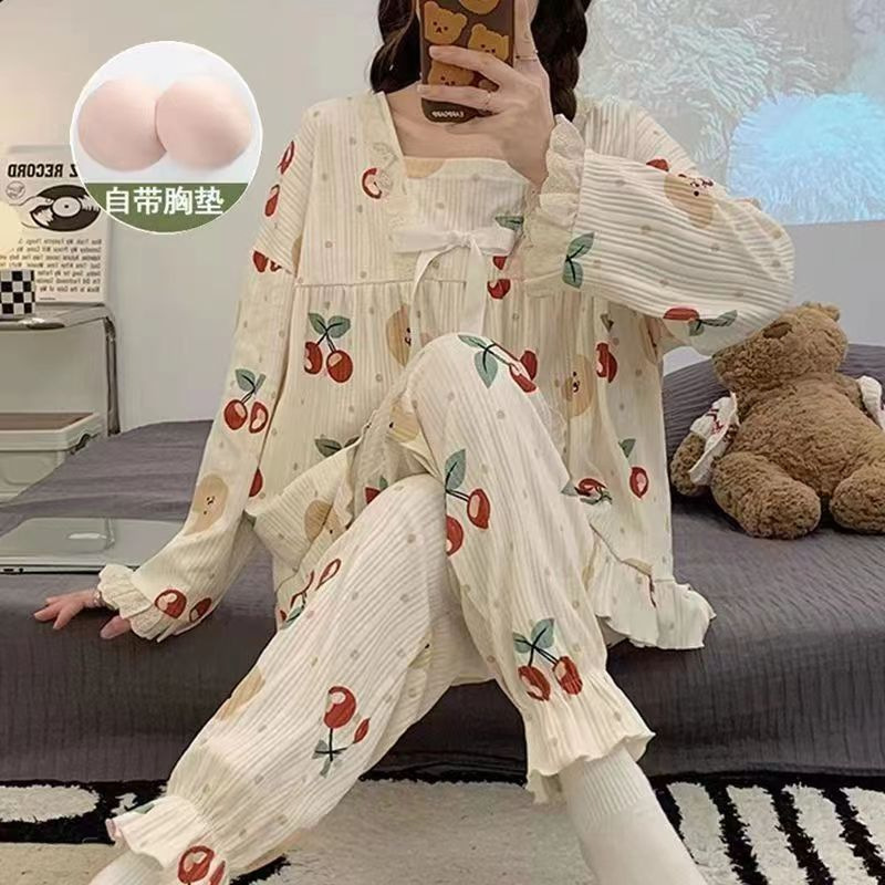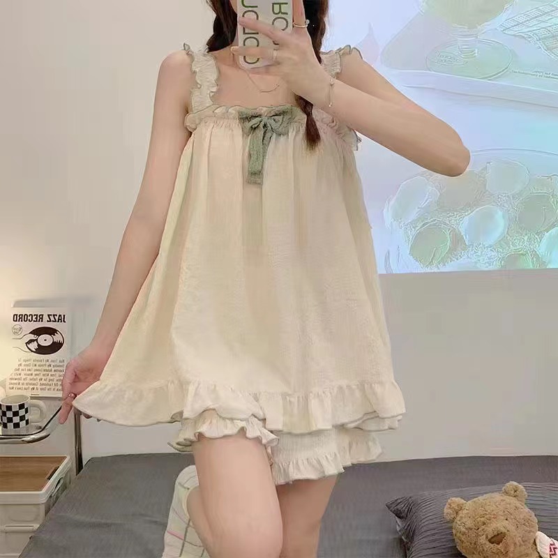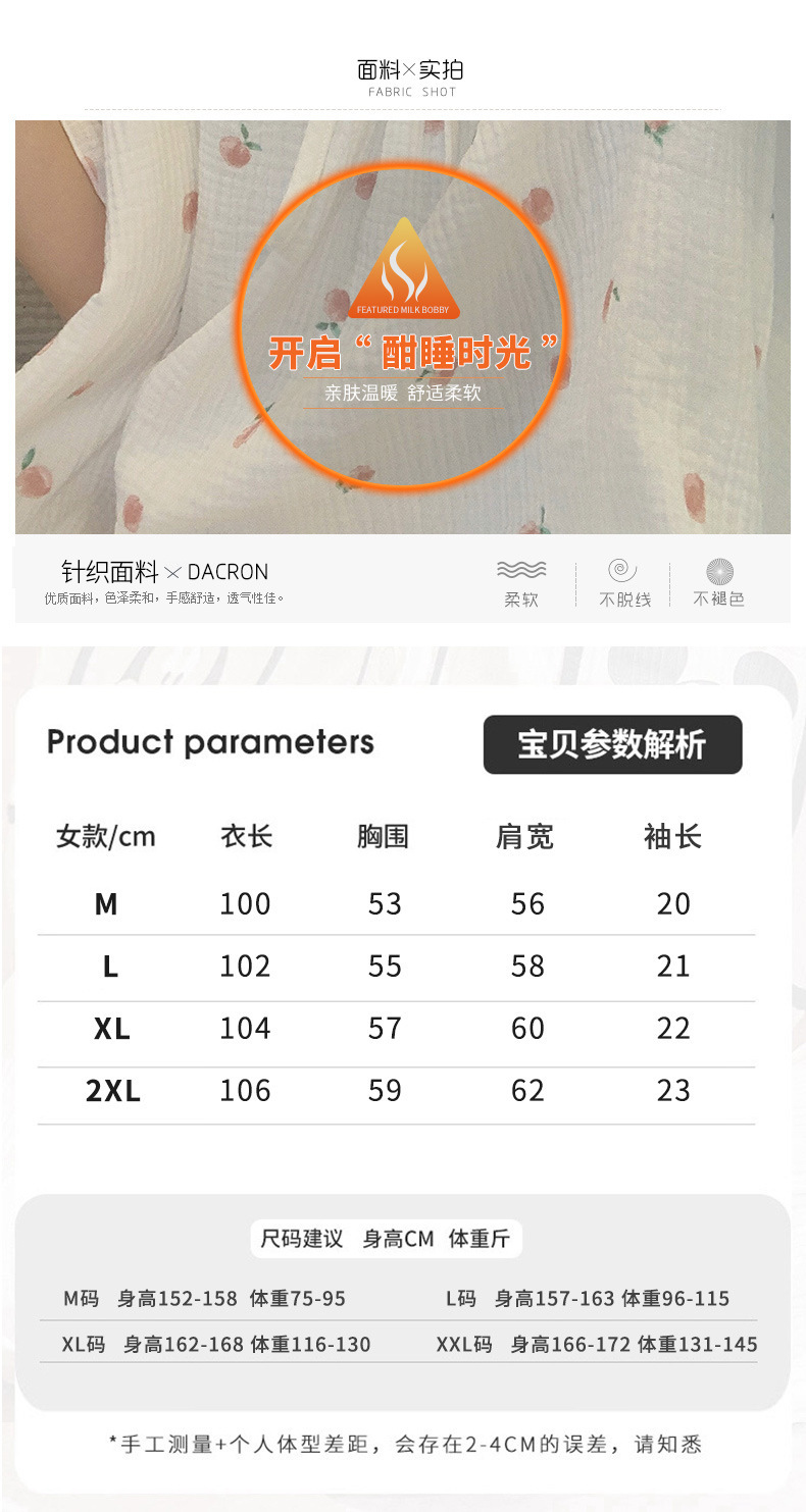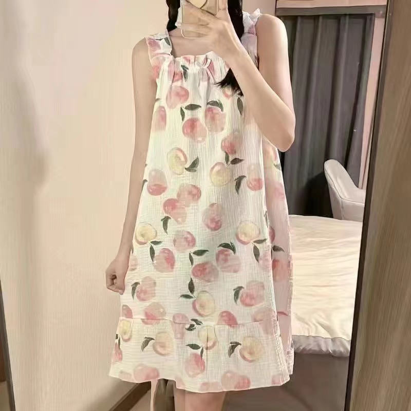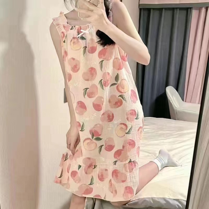 • 가슴 패드가 있는 버블 코튼 살구 서스펜더 잠옷