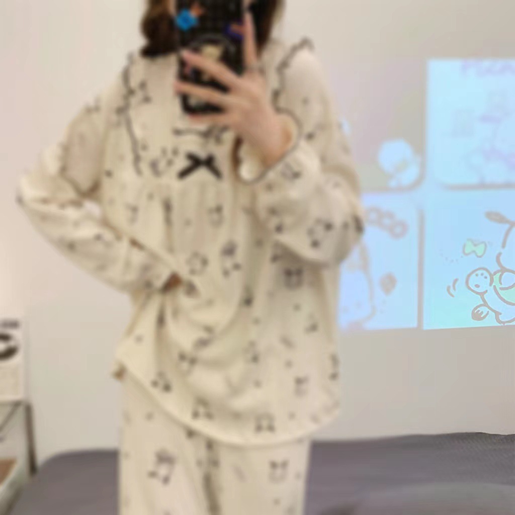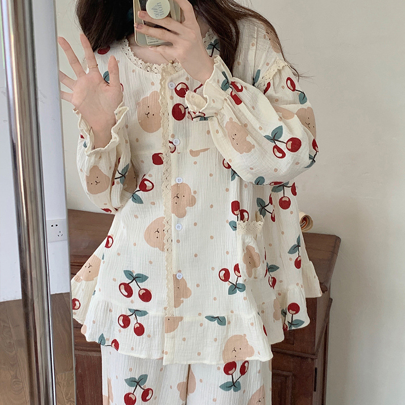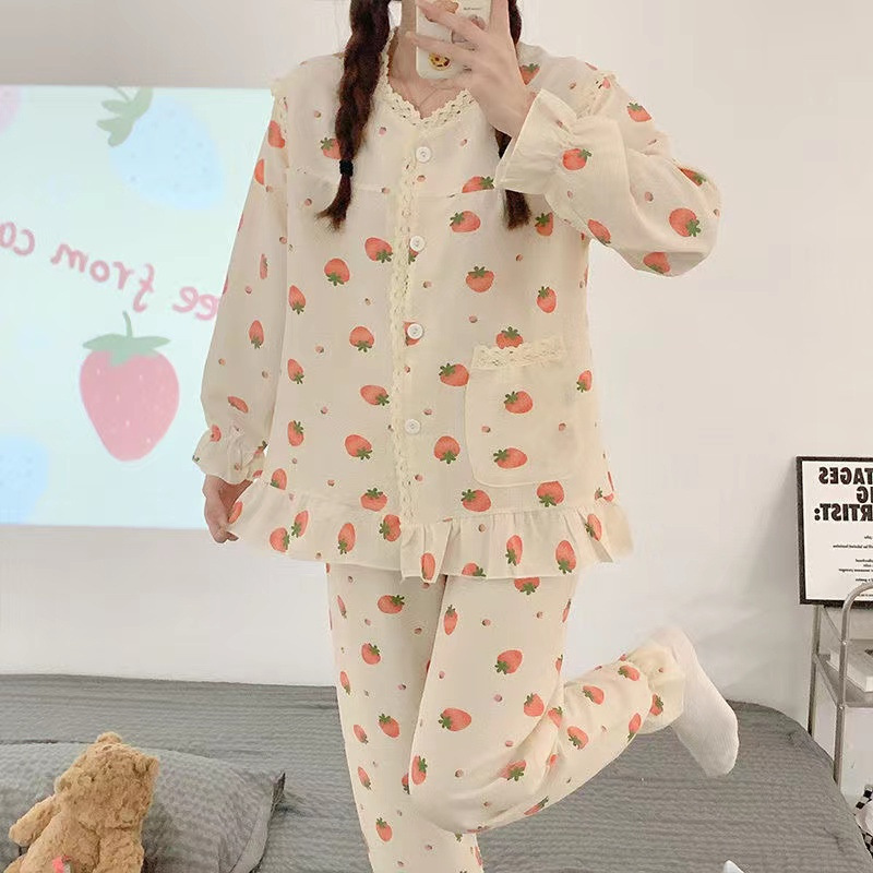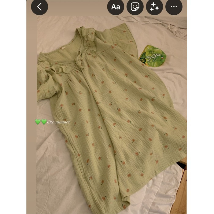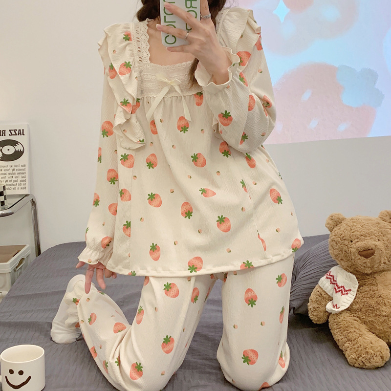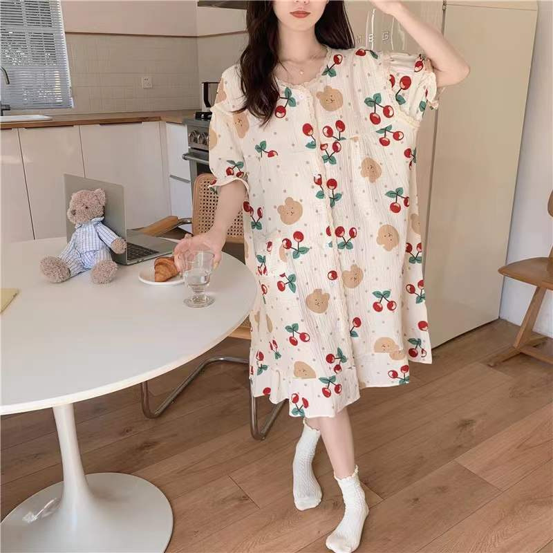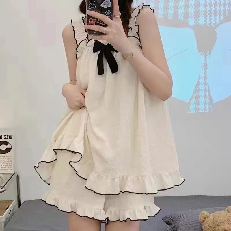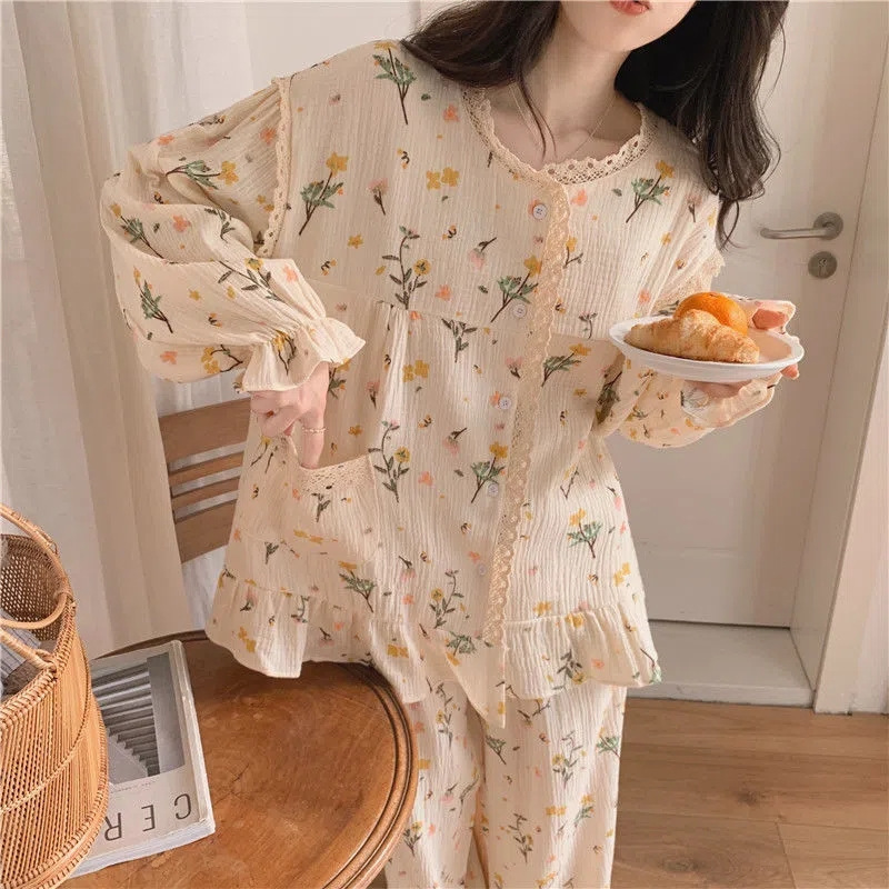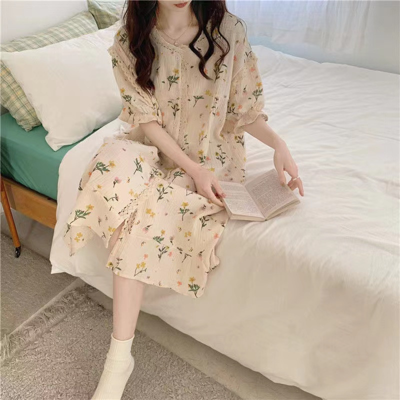 Ins Korean Style Princess Style 여름 잠옷 여성 반팔 작은 꽃 크루 넥 달콤한 소녀 학생 느슨한 홈 옷