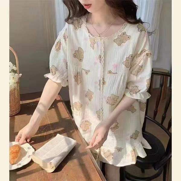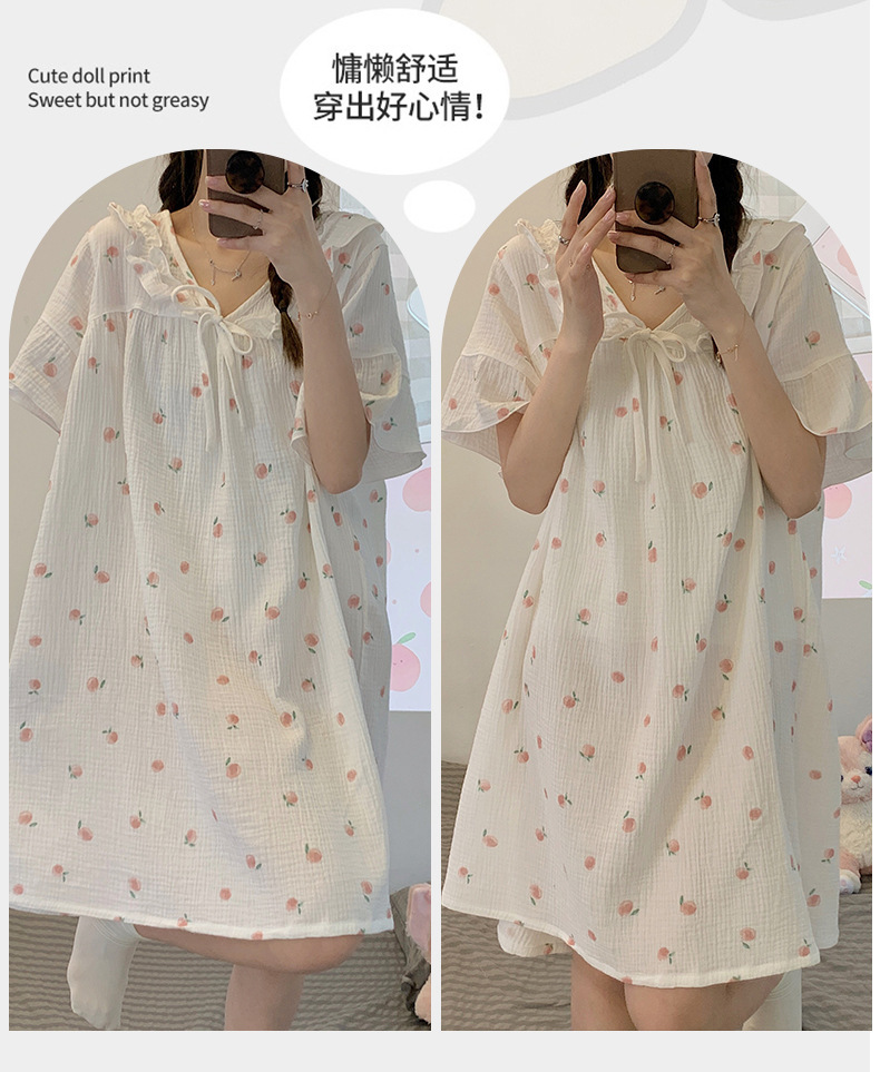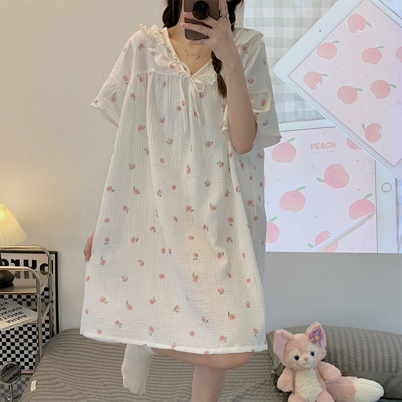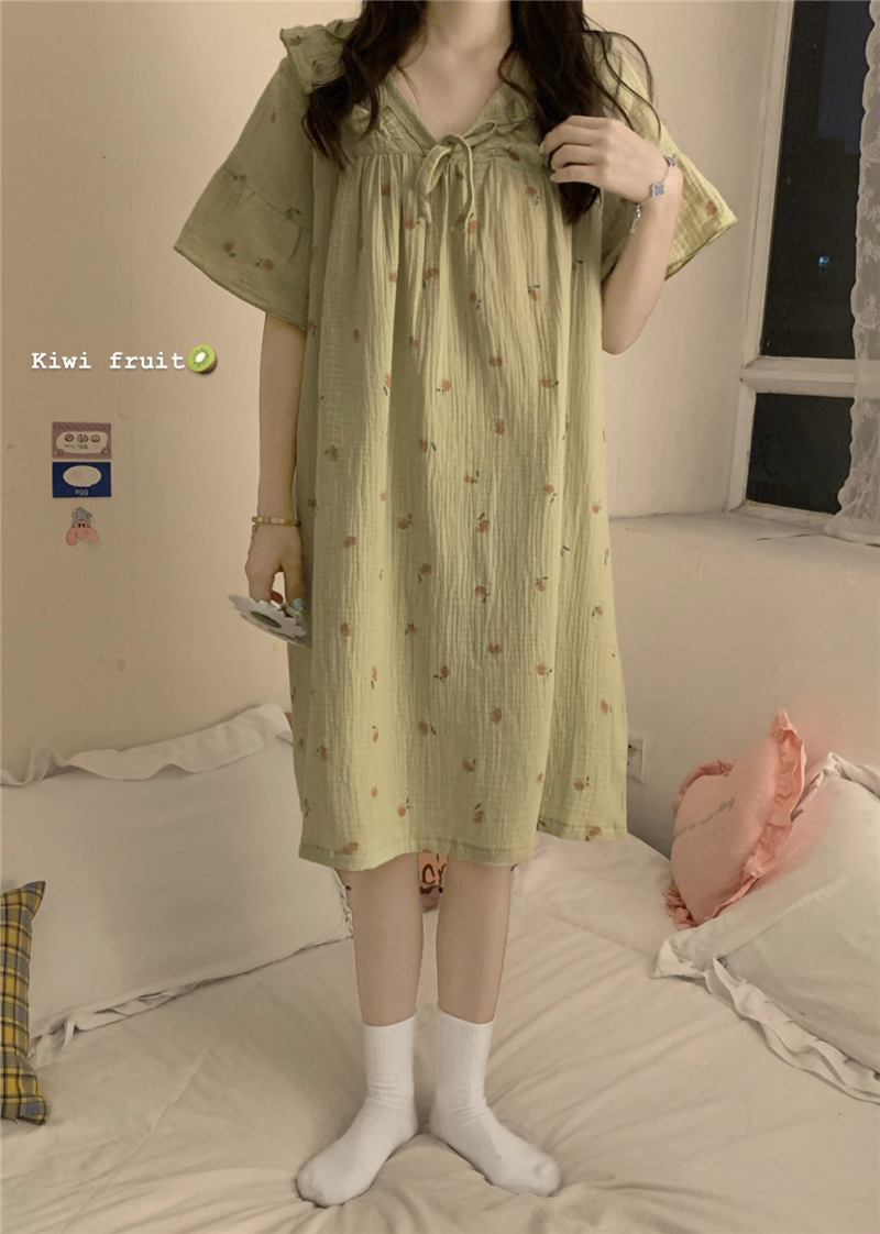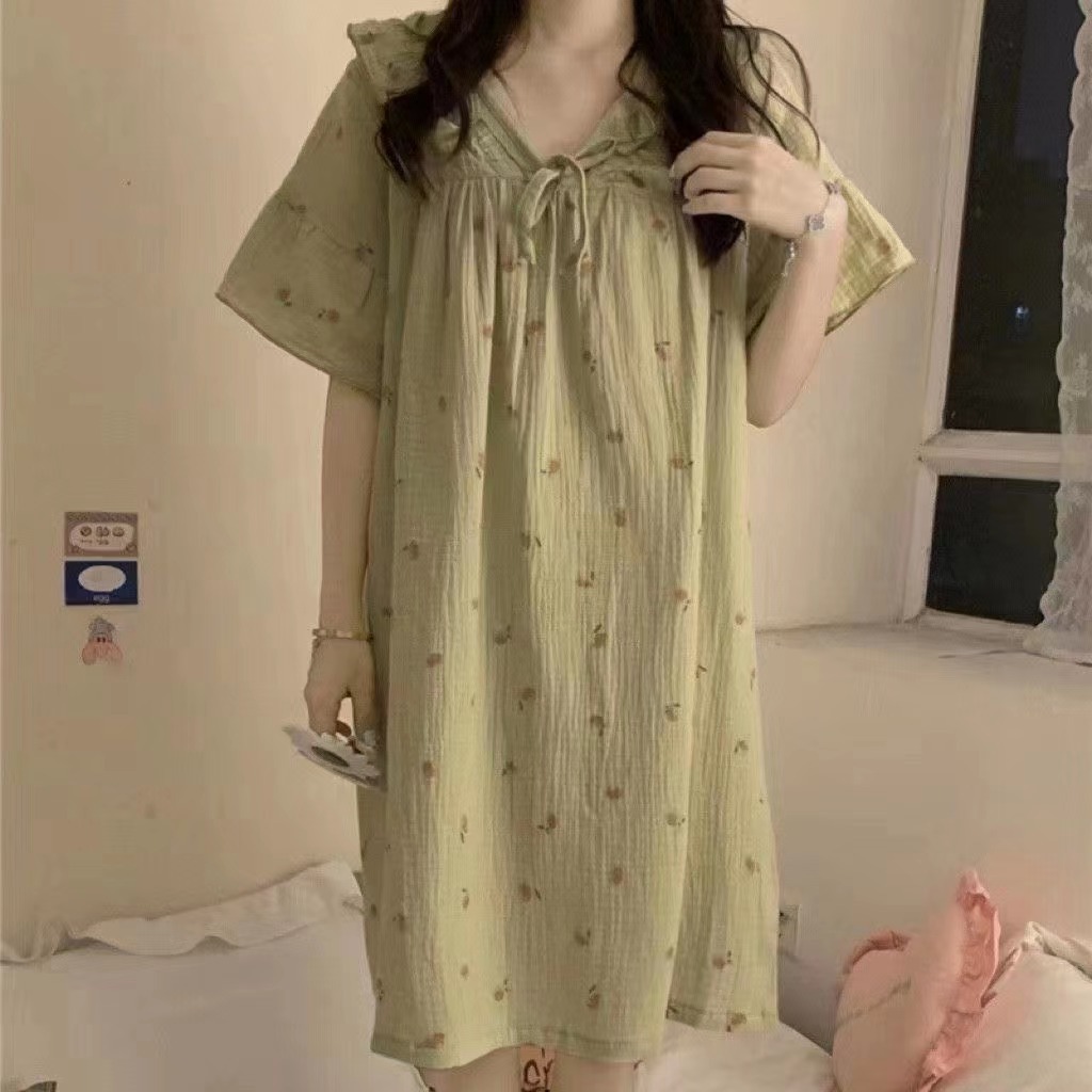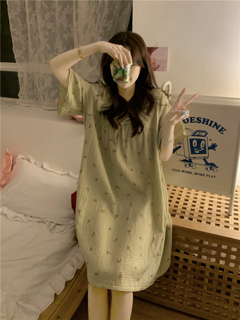 Ins Korean Style Princess Style 여름 잠옷 여성 반팔 작은 꽃 크루 넥 달콤한 소녀 학생 느슨한 홈 옷스토어 가기