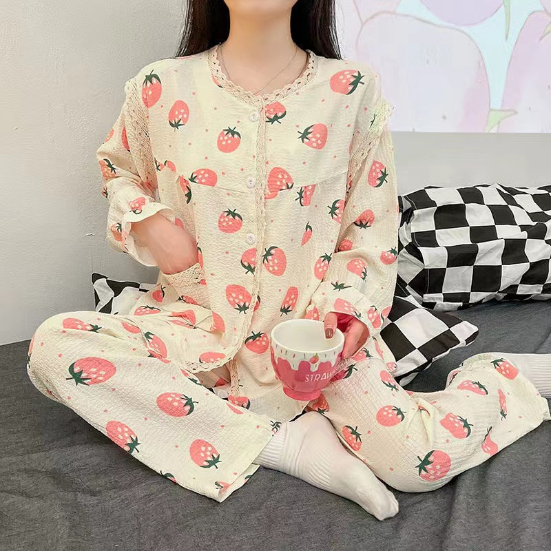 • 더블 길이 - 버블 코튼 스퀘어 칼라 딸기