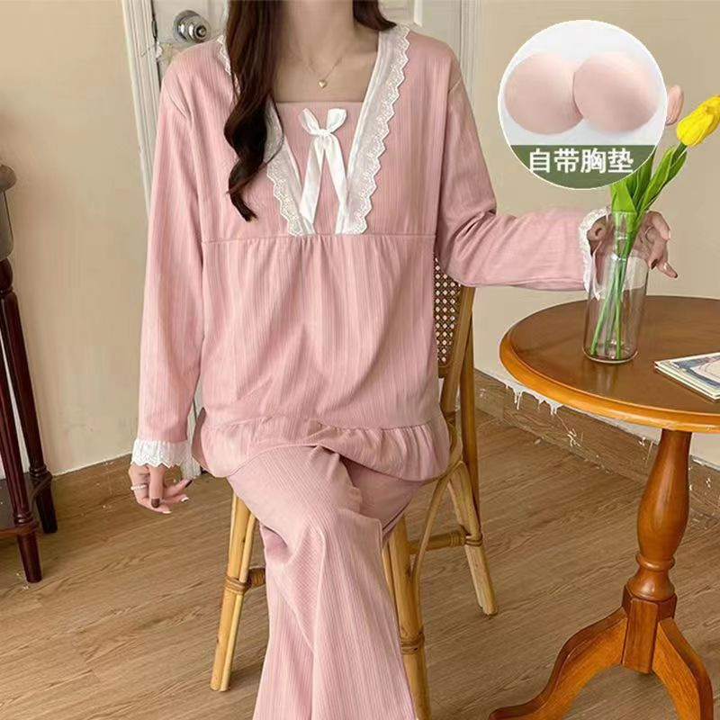 • 가슴 패드가 있는 버블 코튼 핑크 서스펜더 잠옷