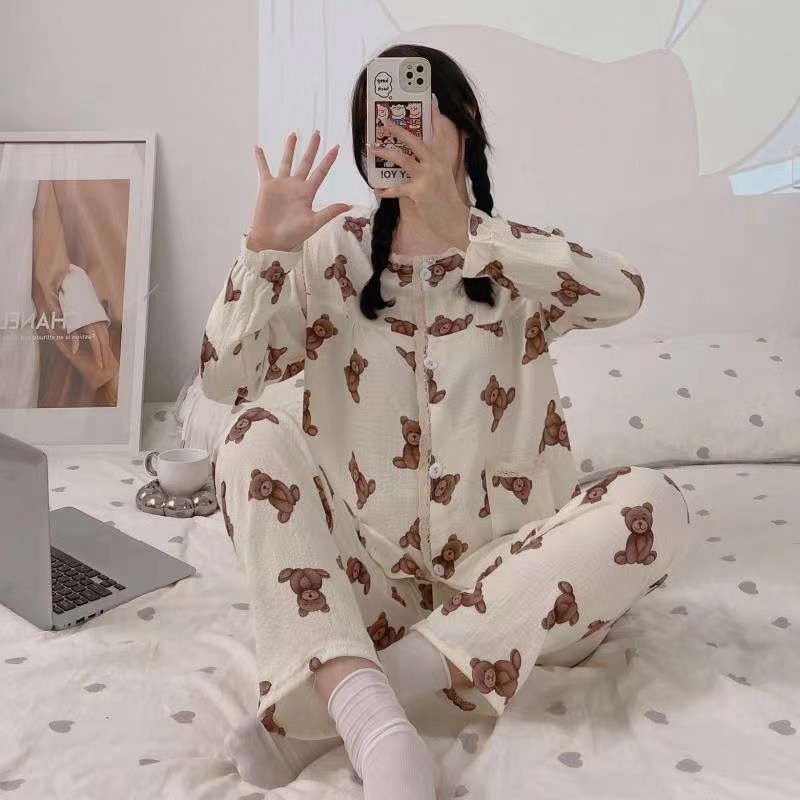 • 더블 길이 - 버블 코튼 스퀘어 칼라 체리 베어