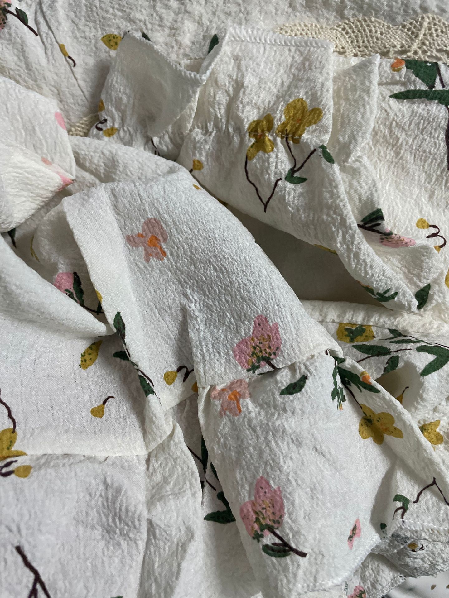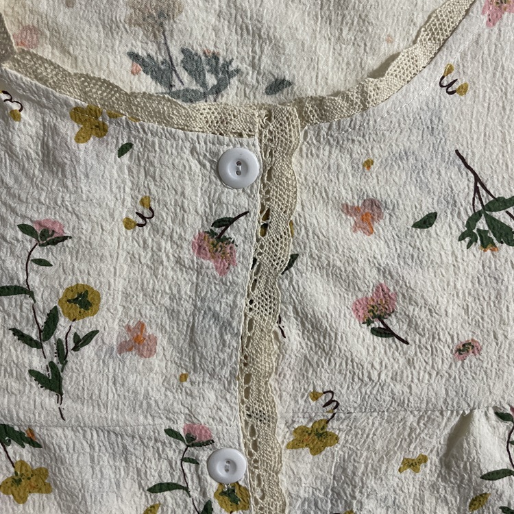 • 더블 길이 - 버블 코튼 스퀘어 칼라 플로럴