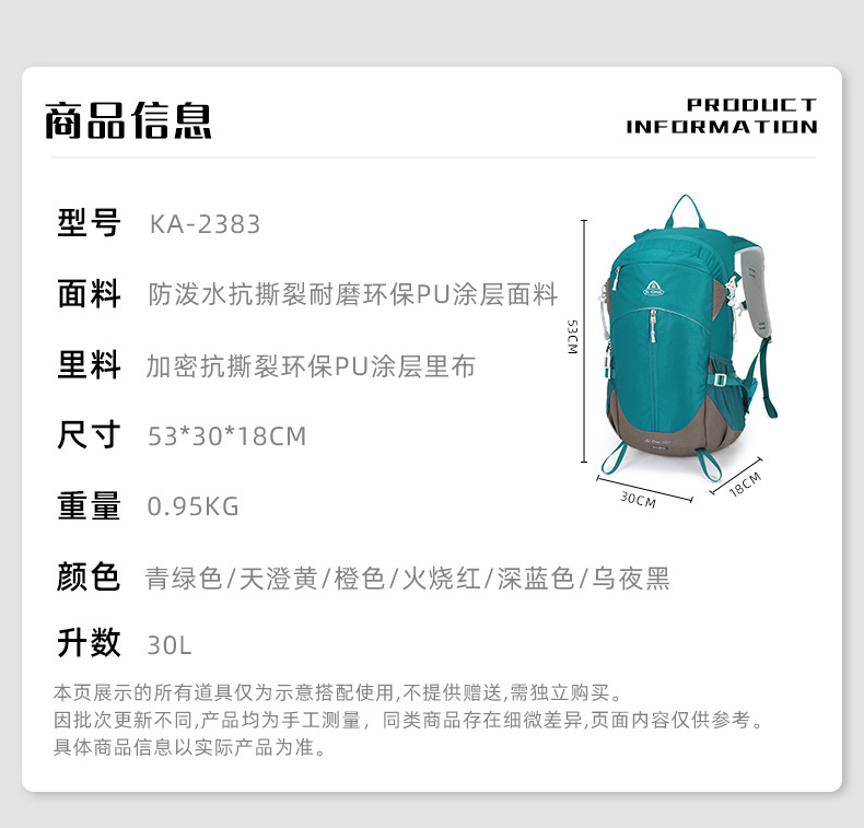 Ai Wang 등산 가방 30L 야외 레저 방수 남녀 스포츠 서스펜션 배낭 하이킹 사이클링 배낭스토어 가기
