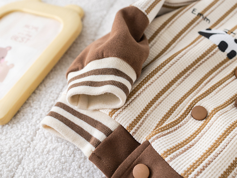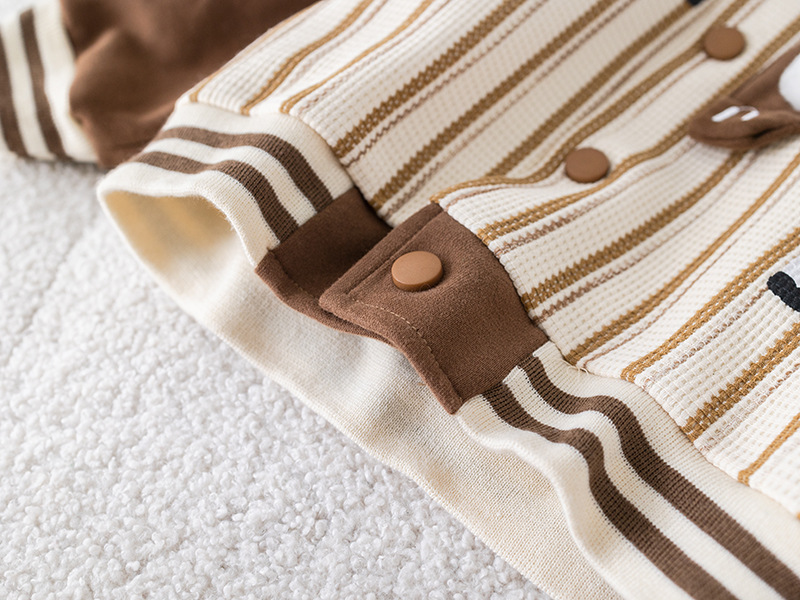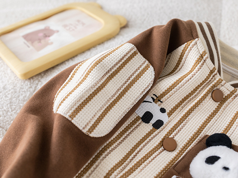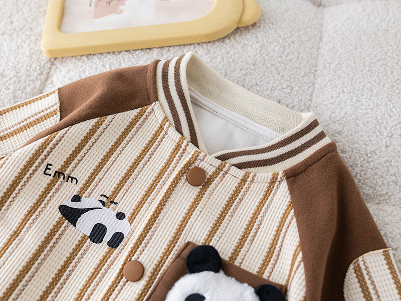 五小七 아동복 2025 봄 가을 신상 0-4세 남아용 세로 줄무늬 팬더 야구복 긴 티셔츠 바지 세트스토어 가기