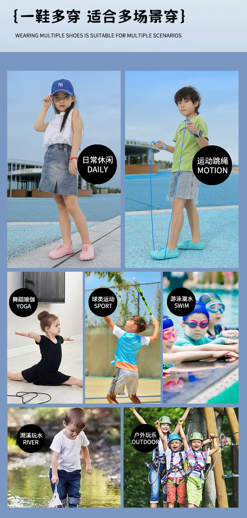국경 간 새로운 어린이 추적 신발 실내 건너 뛰기 로프 건너 뛰기 신발 요가 신발 주변 및 맨발 피부 친화적 인 수영화스토어 가기