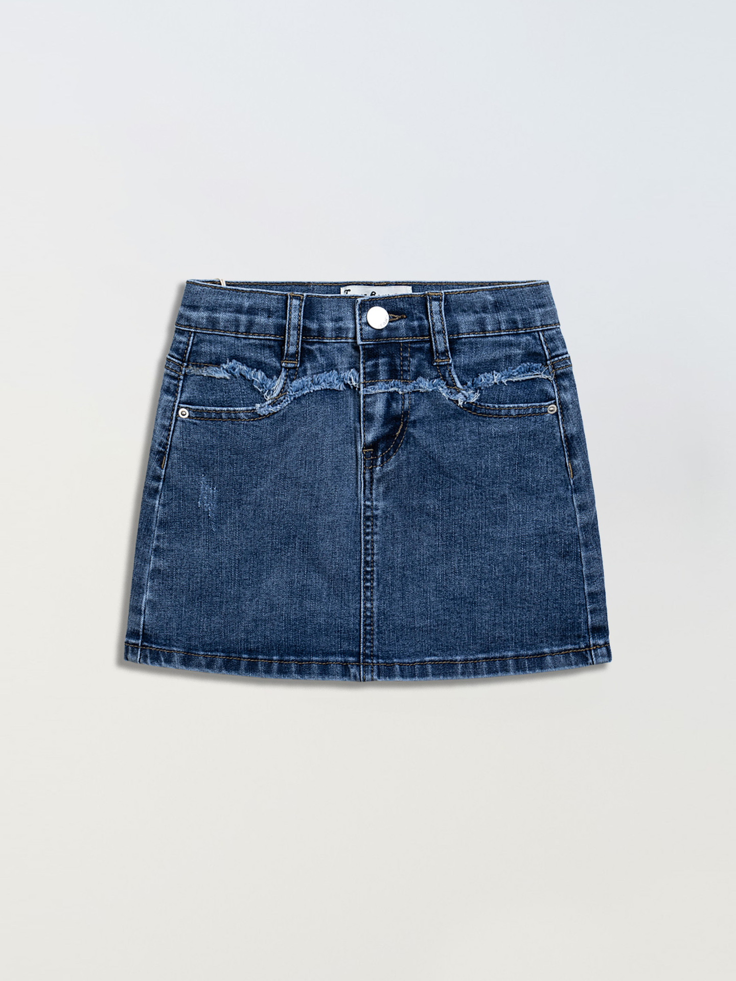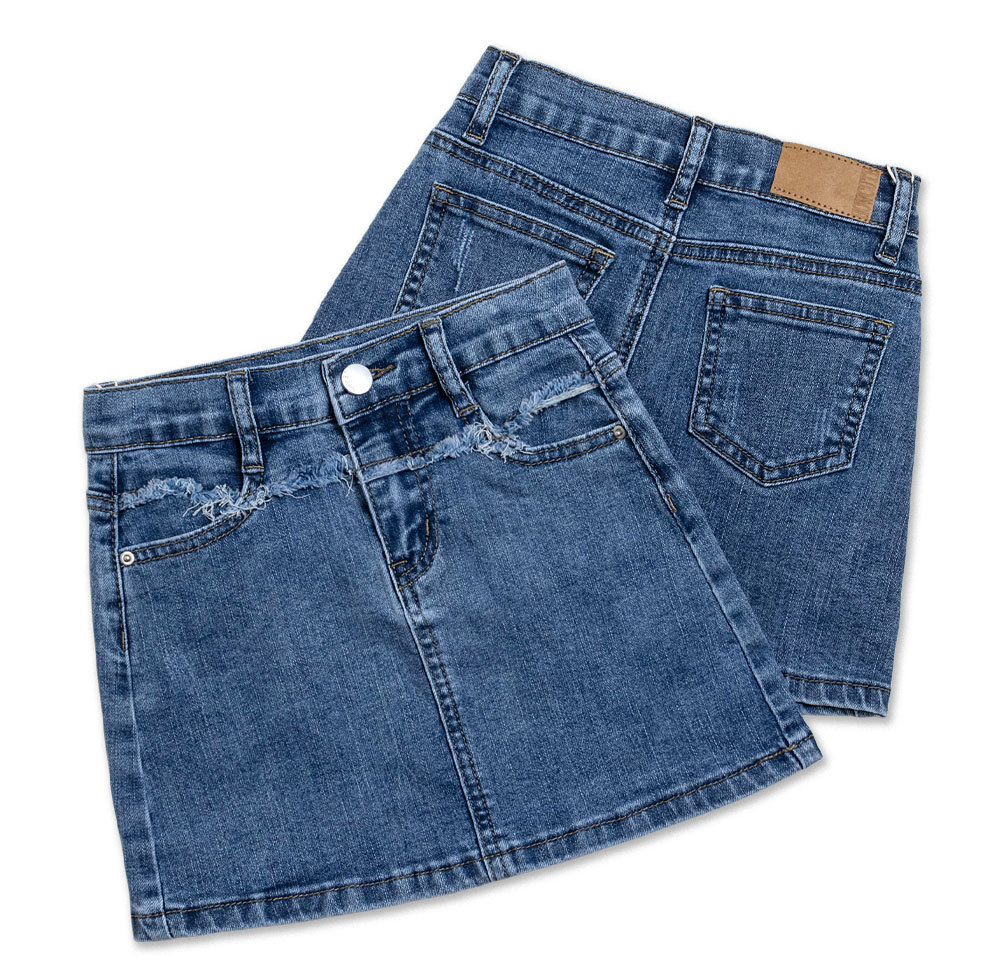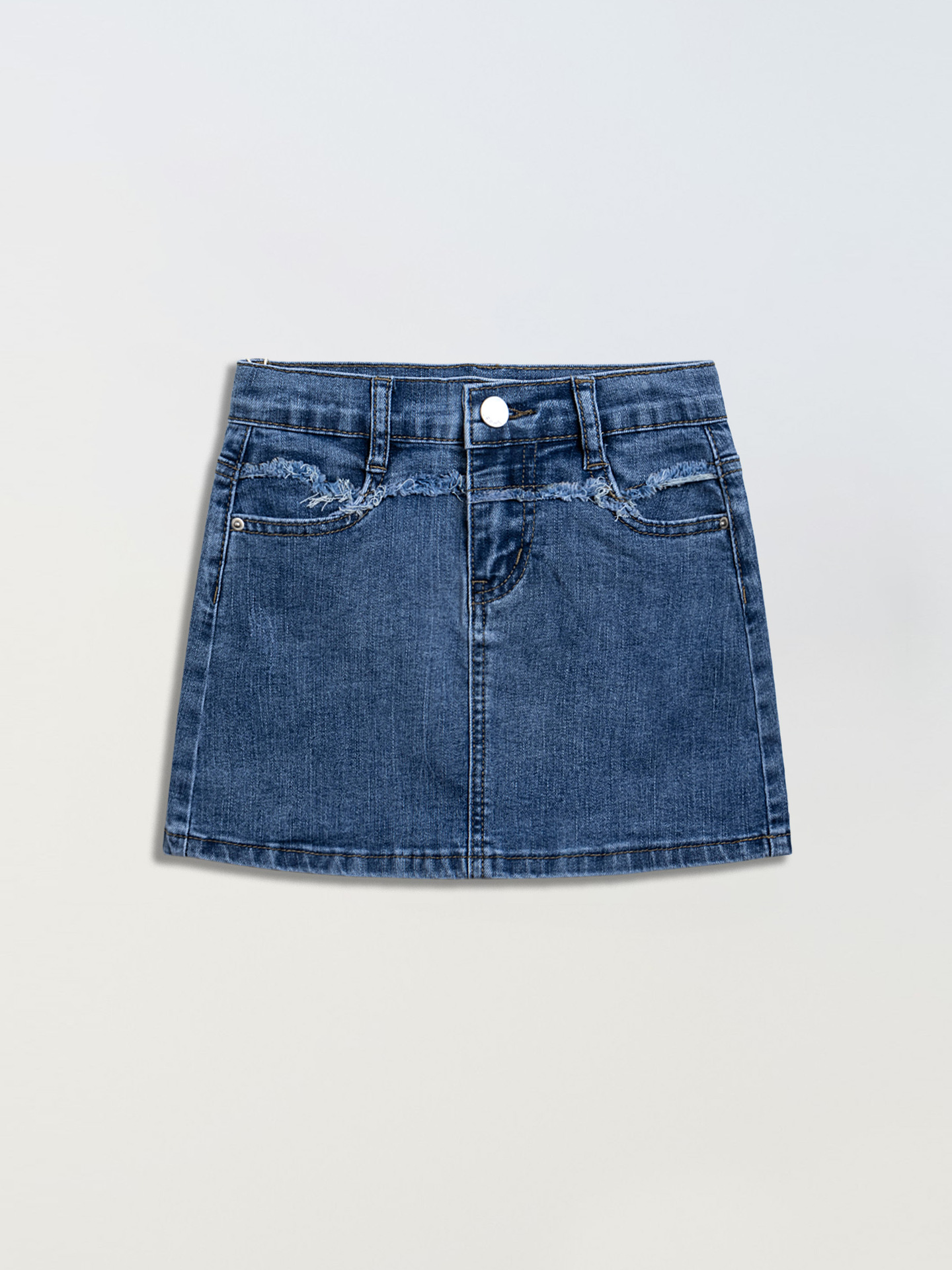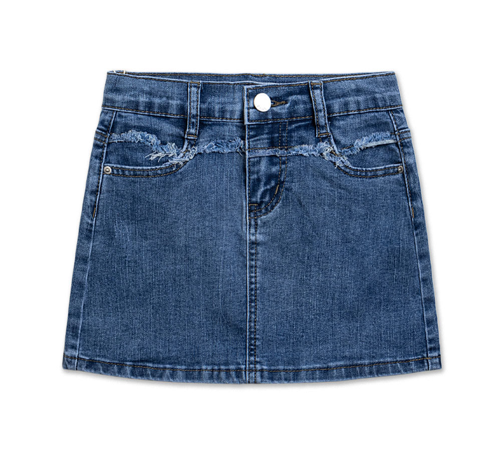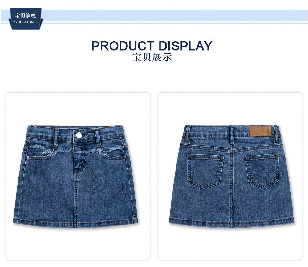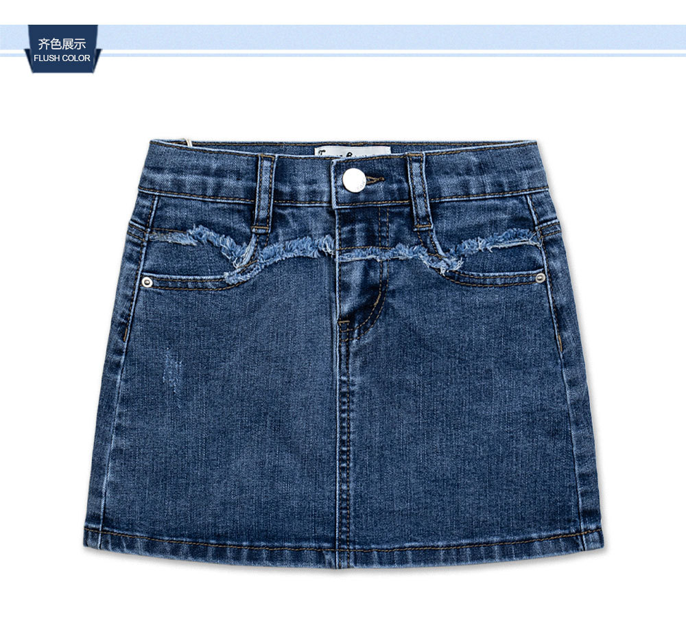 여자 데님 치마 여름 반쪽 길이 A 라인 스커트 어린이 외모 모피 가장자리 탄성 데님 치마 도매스토어 가기