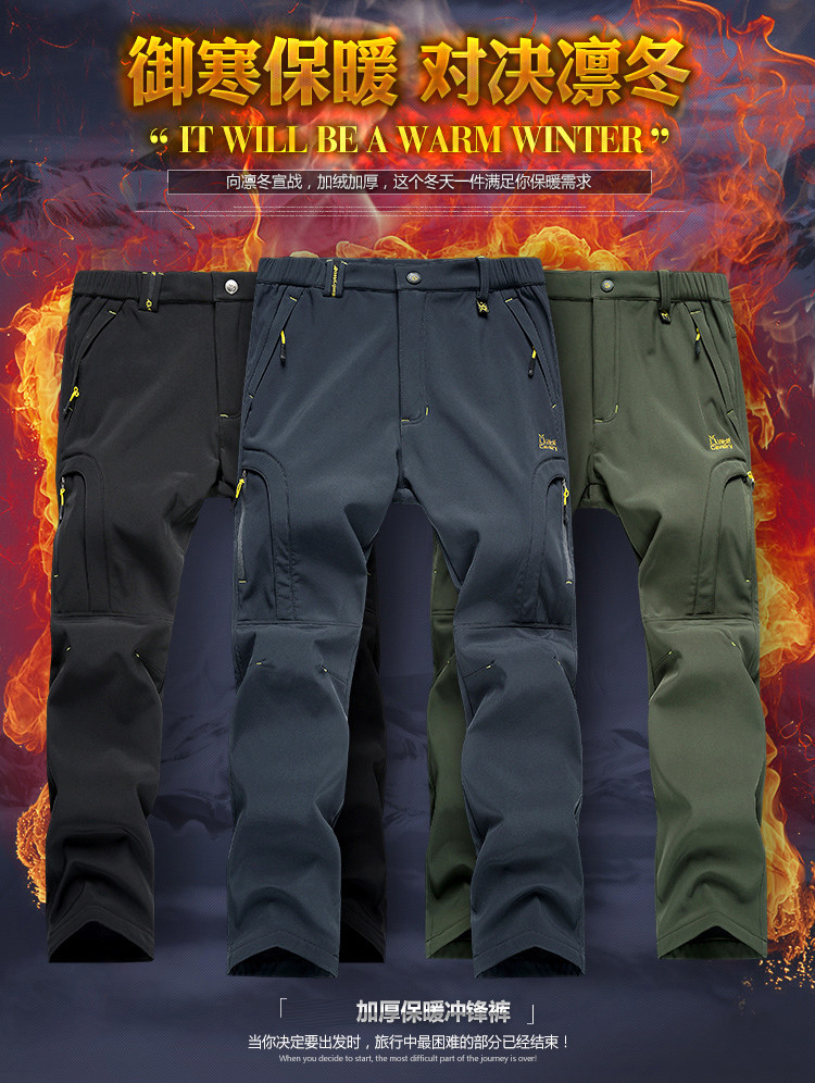 겨울 야외 소프트 쉘 바지 남자와 여자 따뜻한 방수 방풍 충전 바지 기모 두꺼운 양털 바지스토어 가기