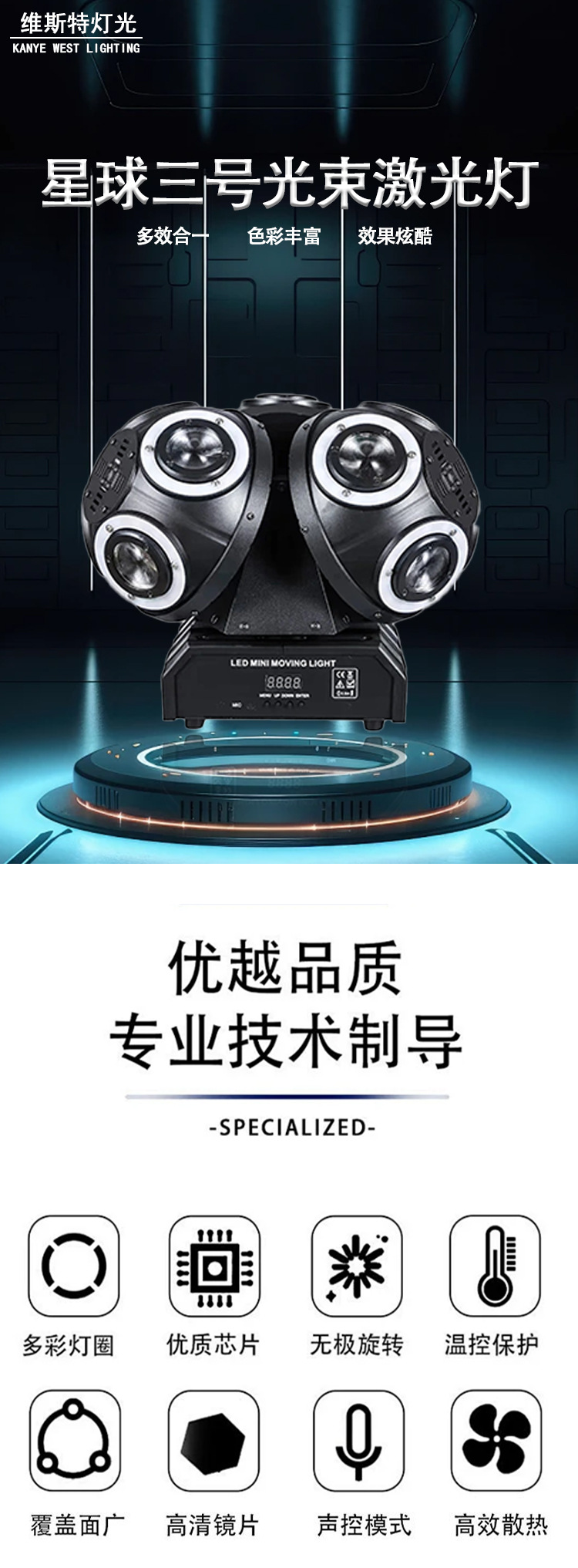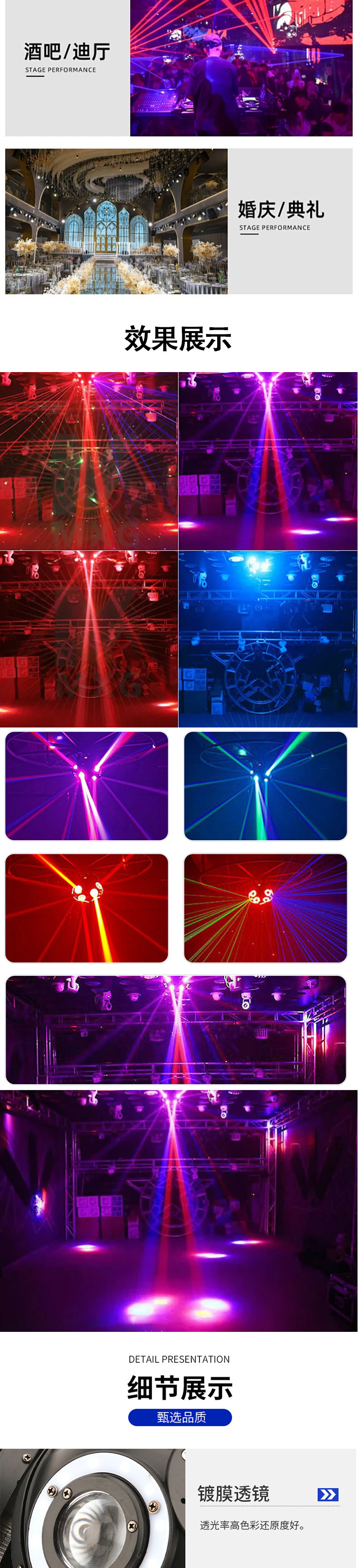 12개의 3헤드 회전 레이저 조명 LED 풀 컬러 빔 무대 조명 바 KTV 다채로운 분위기 조명 행성 No. 3스토어 가기