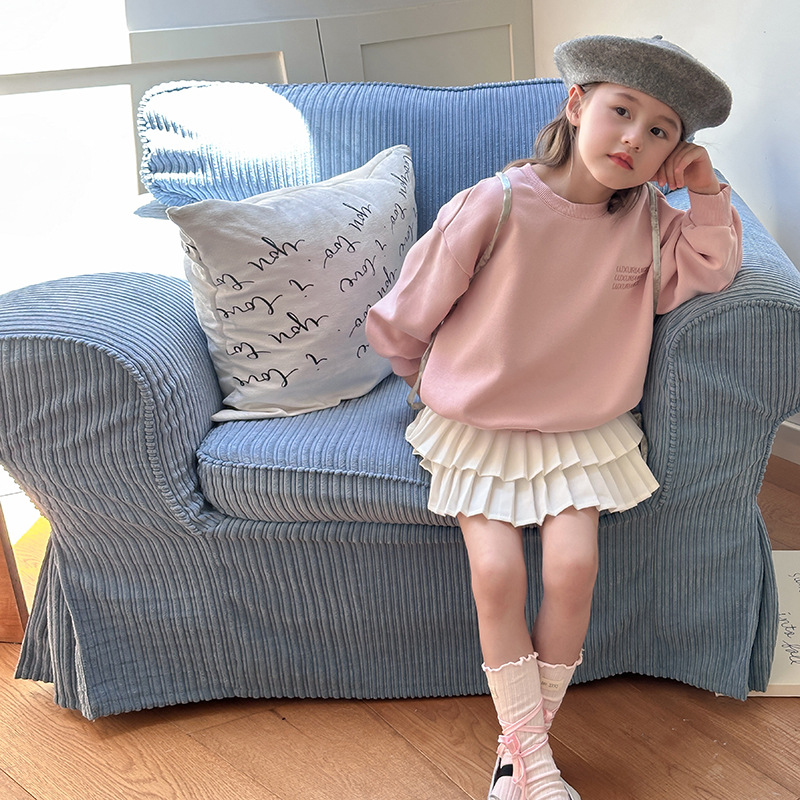 Emo Beibei 어린이 핑크 스웨터 봄과 가을 새로운 소녀 디자인 감각 작은 천사 풀오버 탑스토어 가기