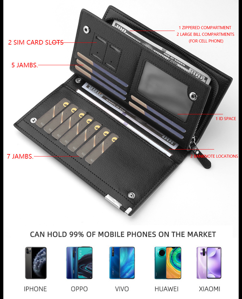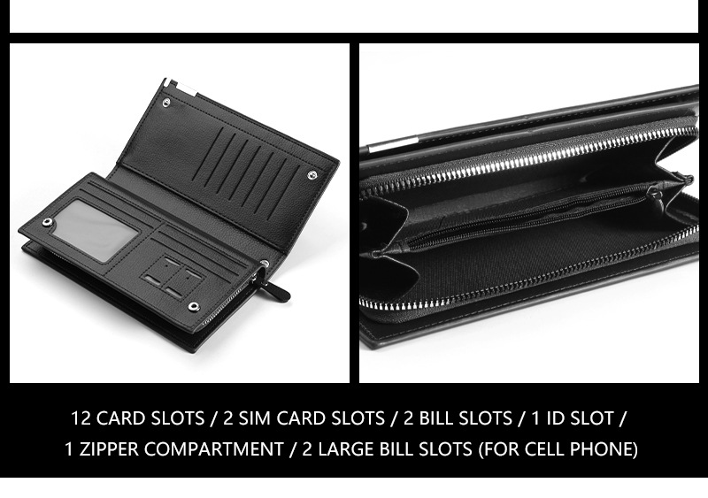남성 지갑 도난 방지 브러시 안티 데기 긴 지퍼 멀티 카드 슬롯 라이트 럭셔리 비즈니스 지갑 카드 가방스토어 가기