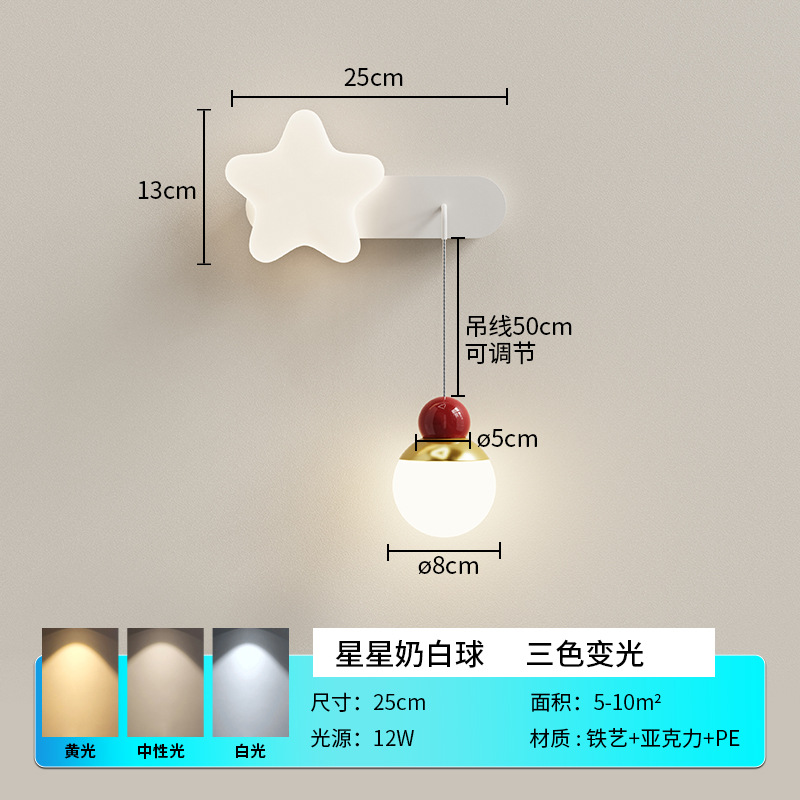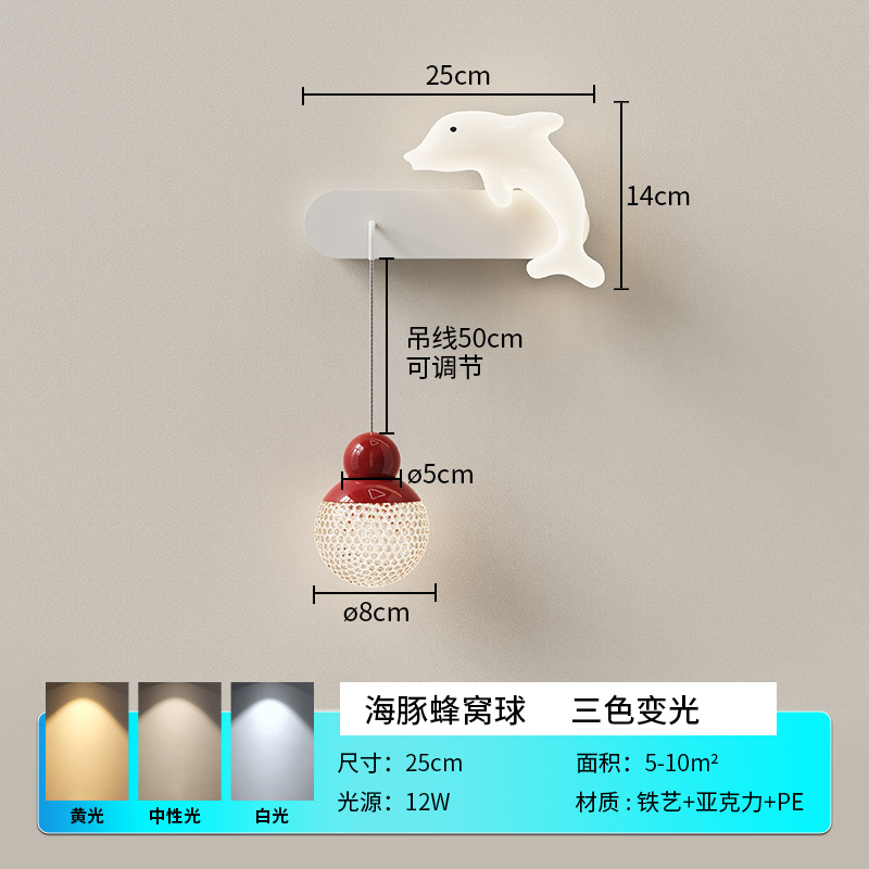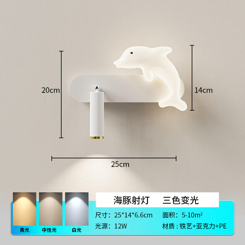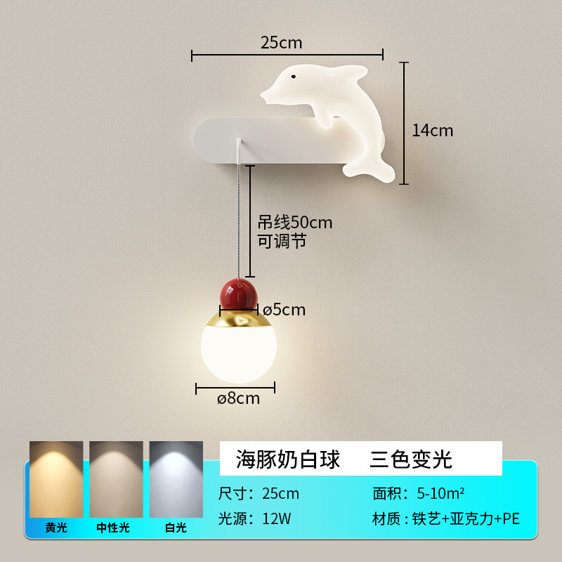 새로운 프랑스 크림 스타일 어린이 방 벽 램프 미니멀리스트 창조적 인 고래 침실 침실 램프 거실 계단 벽 램프