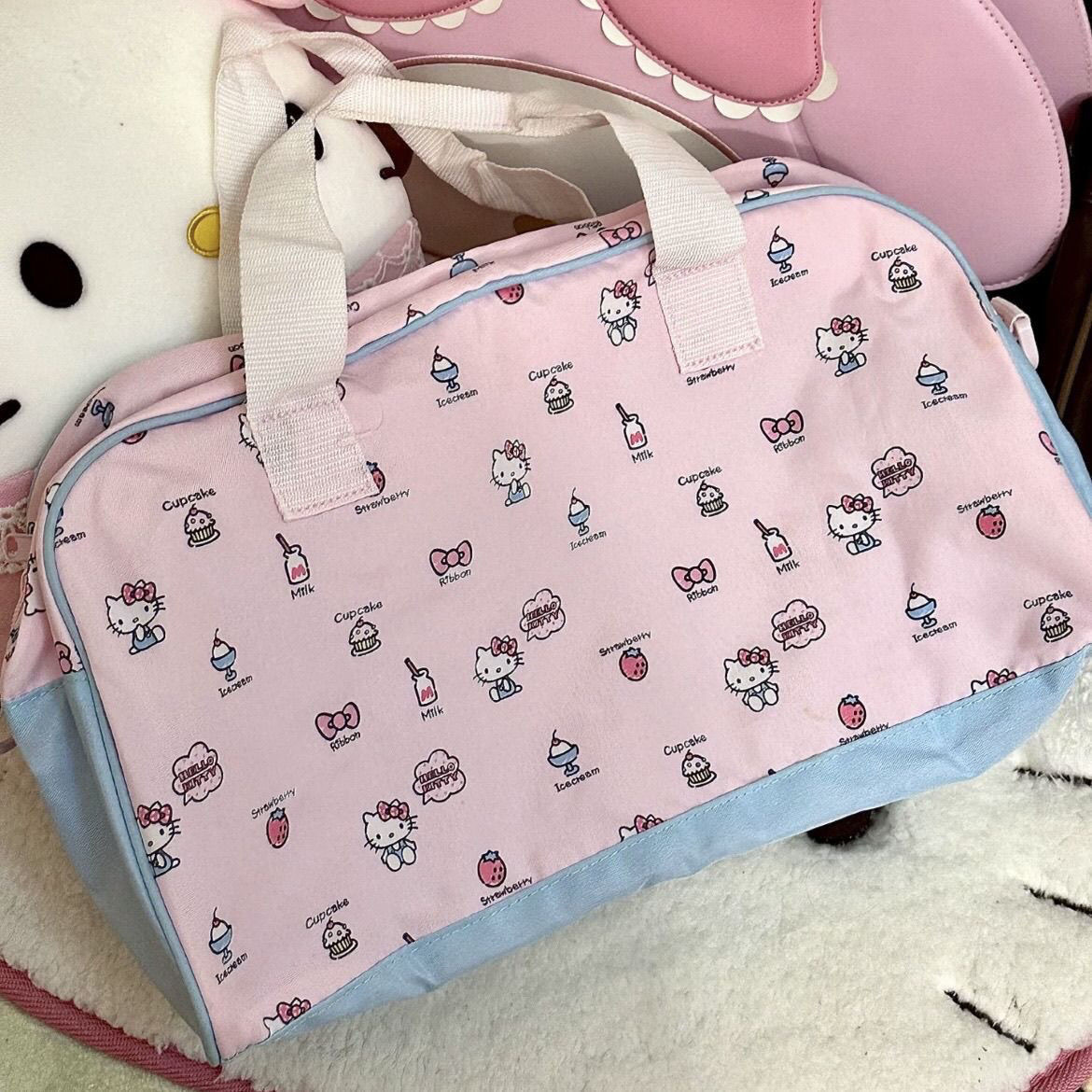 귀여운 헬로 키티 여행 가방 소녀의 심장 피트니스 대용량 핸드백 휴대용 여행 가방 핸드 백스토어 가기